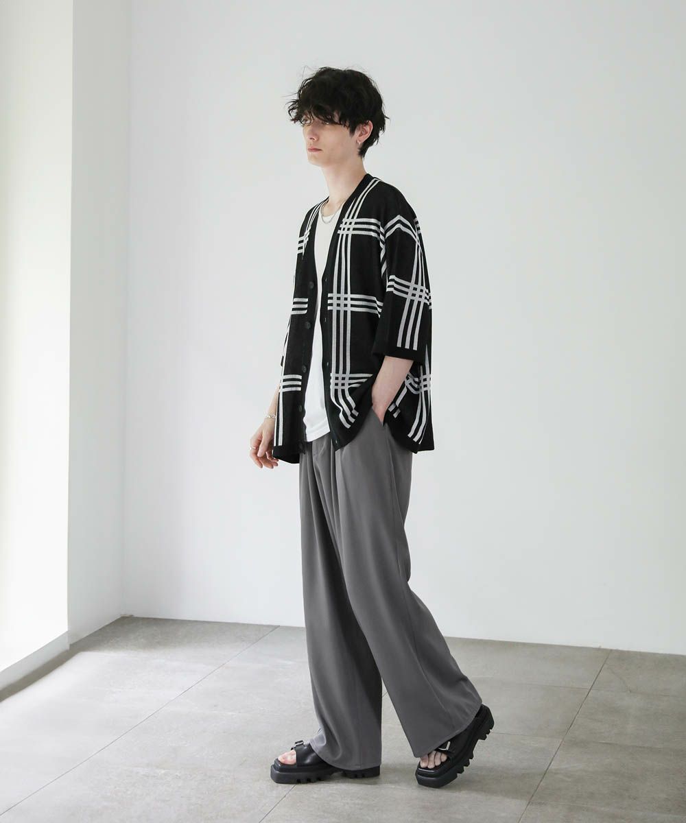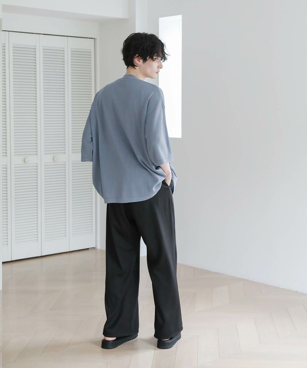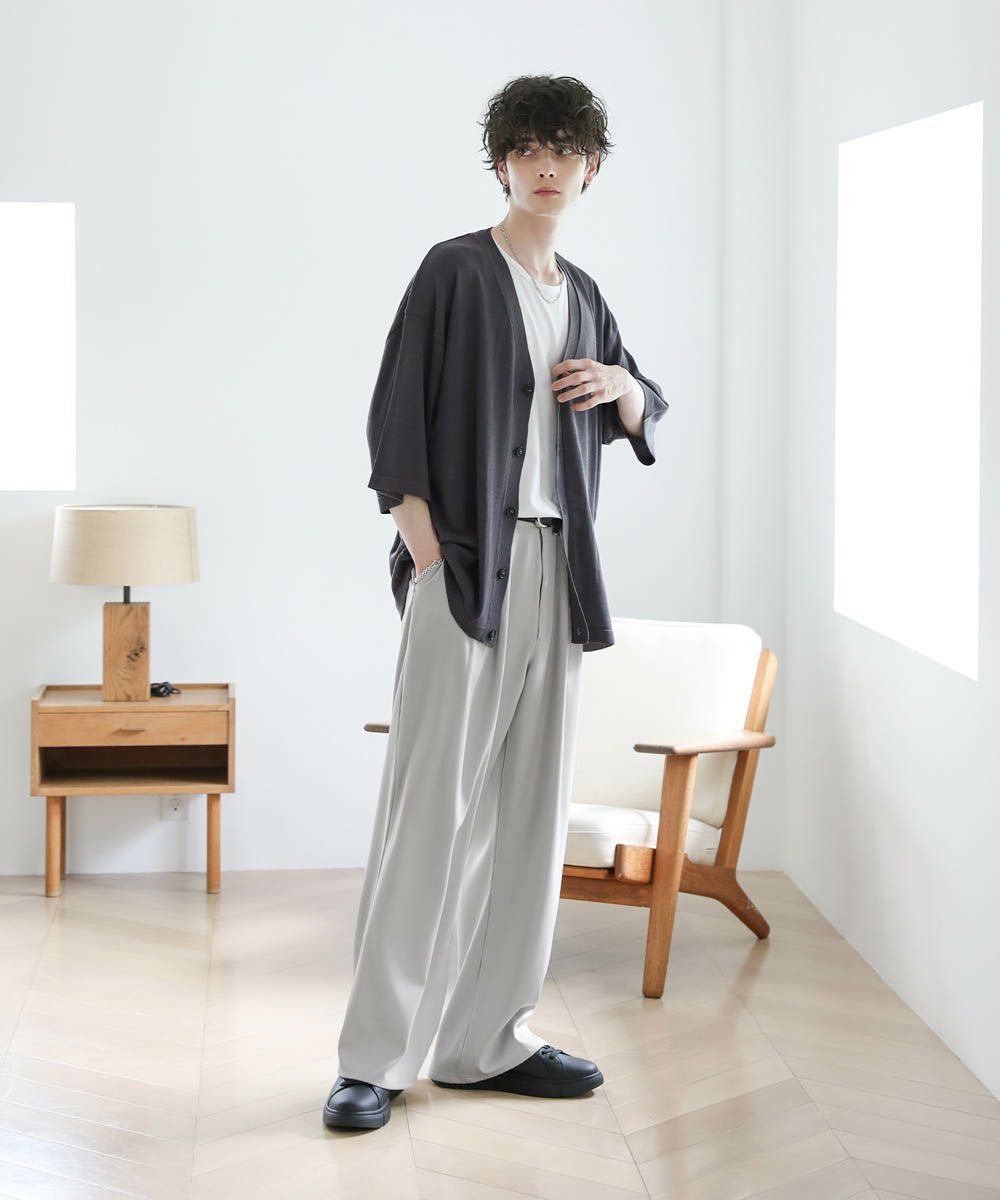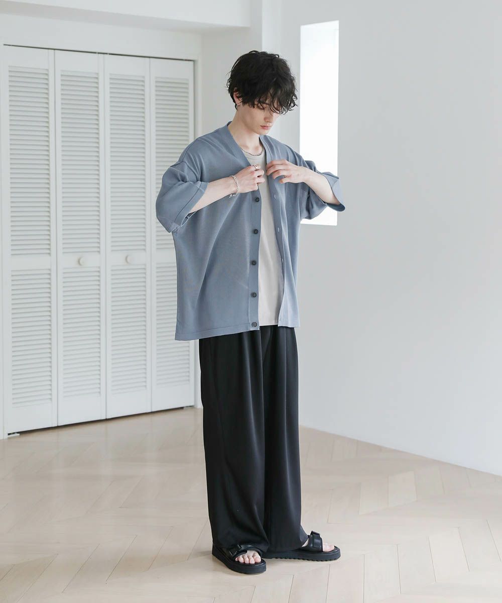 カットソーやタンクトップと合わせて前開けでさっと羽織った着こなしや、フロントを閉めてプルオーバー風の着こなしも楽しめます。ワイドめのスラックスやデニムパンツと合わせたリラックス感のある着こなしがおすすめです。
