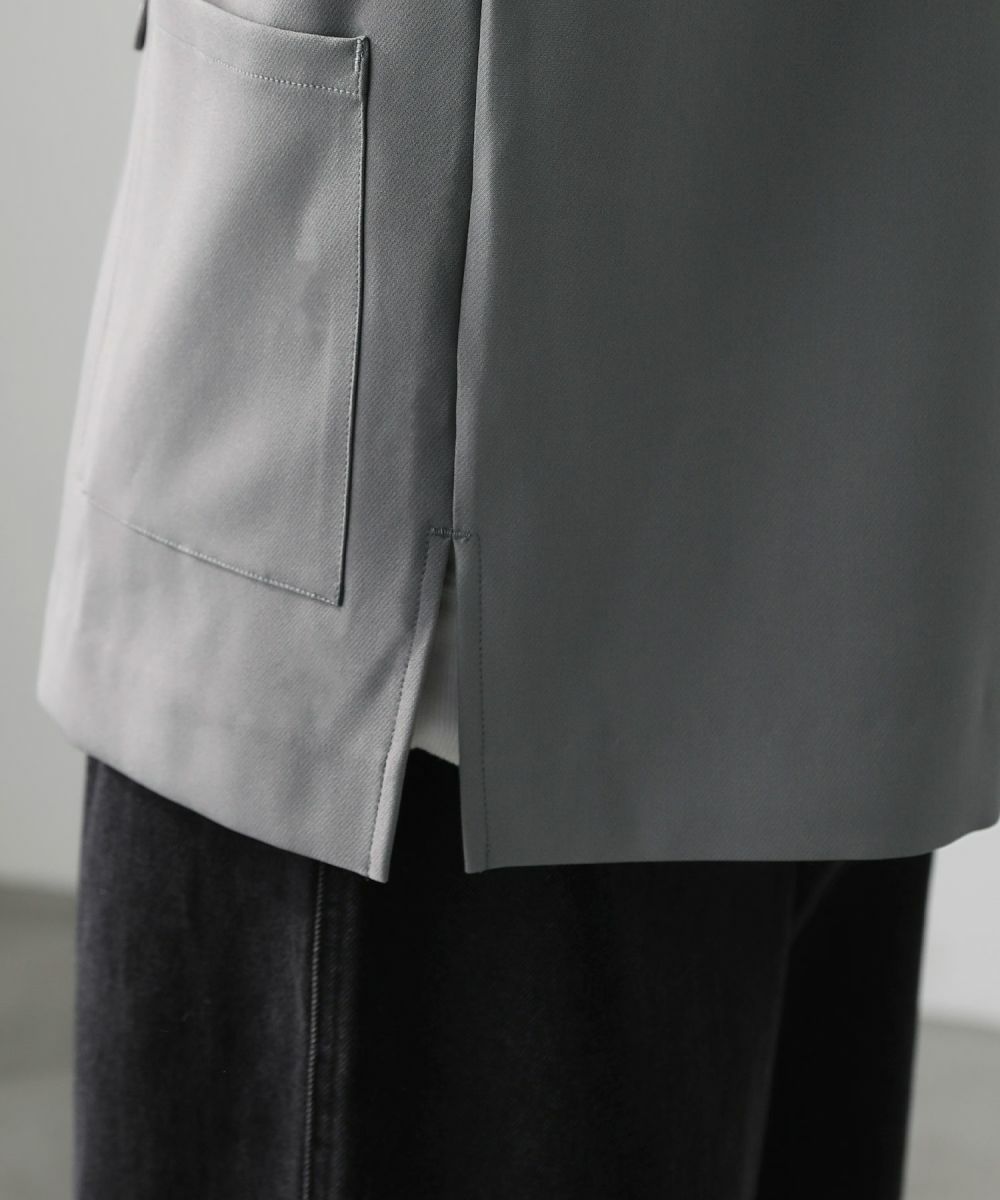 程よい厚みがありつつもしなやかなドレープのある生地。ストレッチ素材を混紡しているのでストレスのない着用感です。裏地はなく軽くサラッとした着心地なので春や秋に着回しのしやすい素材です。