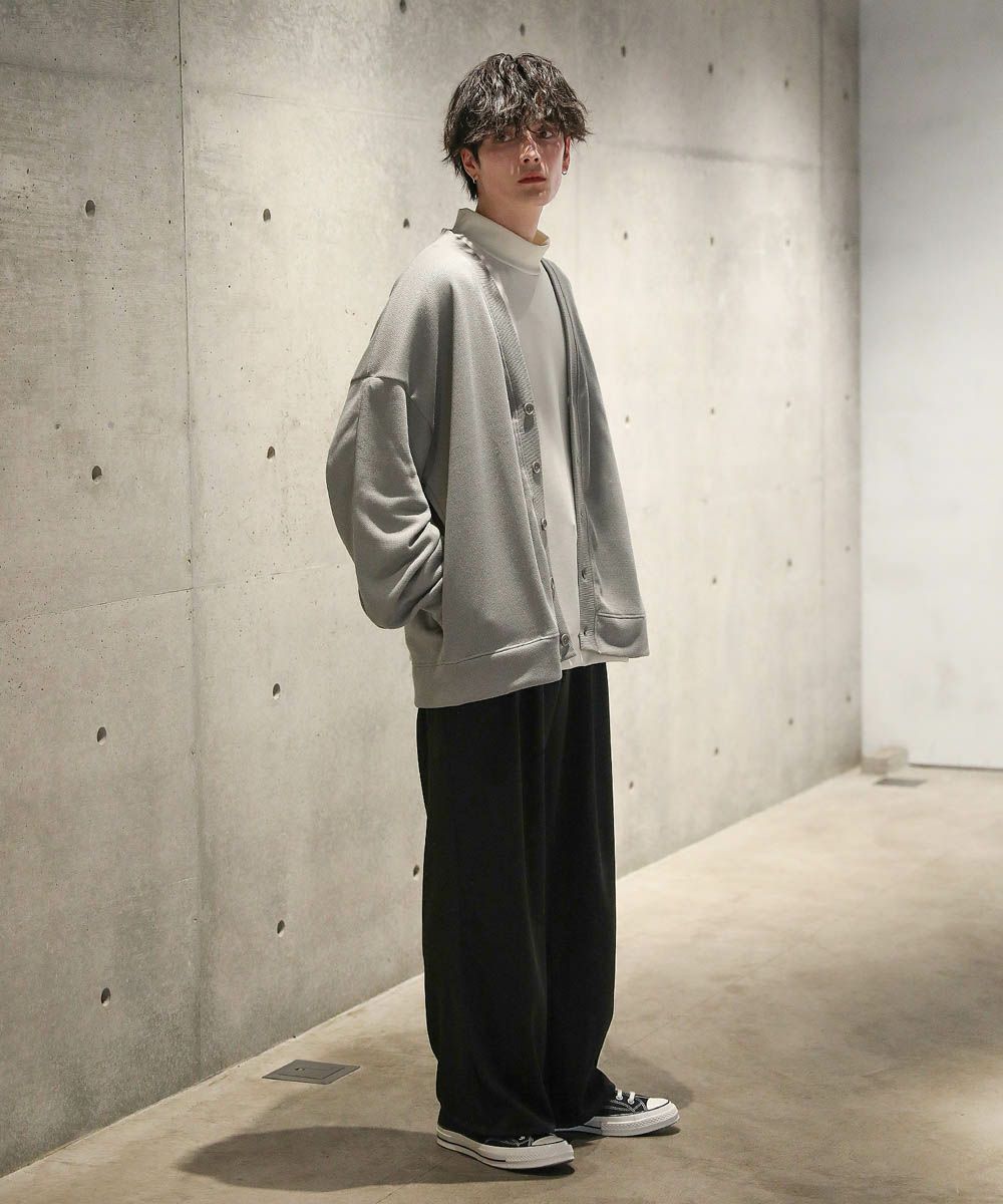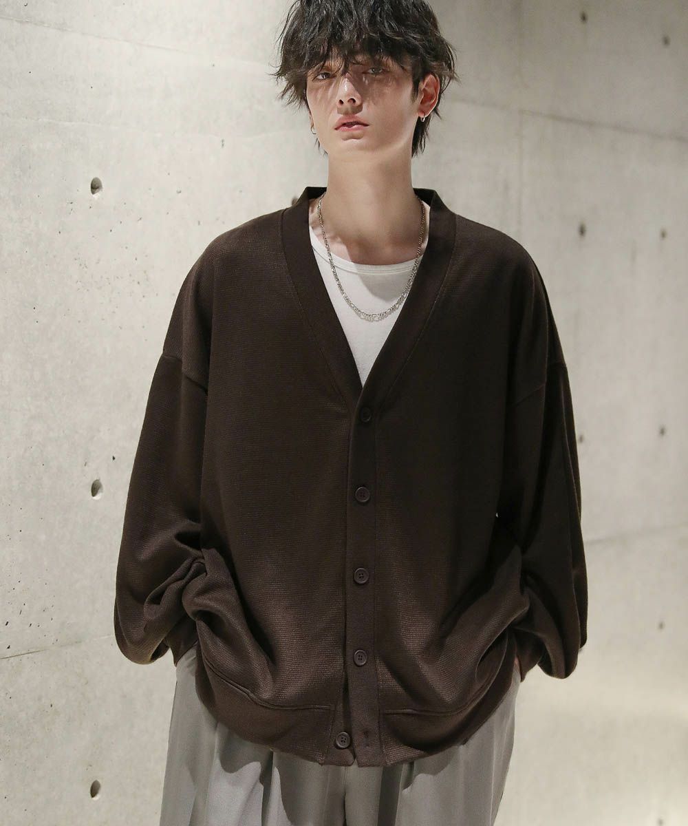 落ち感とドレープ感が醸し出すこなれた雰囲気が魅力のカーディガン。ハイゲージで編んだミラノリブを使用ししており、生地表面の微光沢が上品な印象をプラスします。ゆったりとした身幅とドロップショルダーに、たまり袖がアクセントになった1着。また、顔周りをスッキリと見せるVネックを採用。インナーとのレイヤードも楽しめ、着回し力の高いアイテムです。
