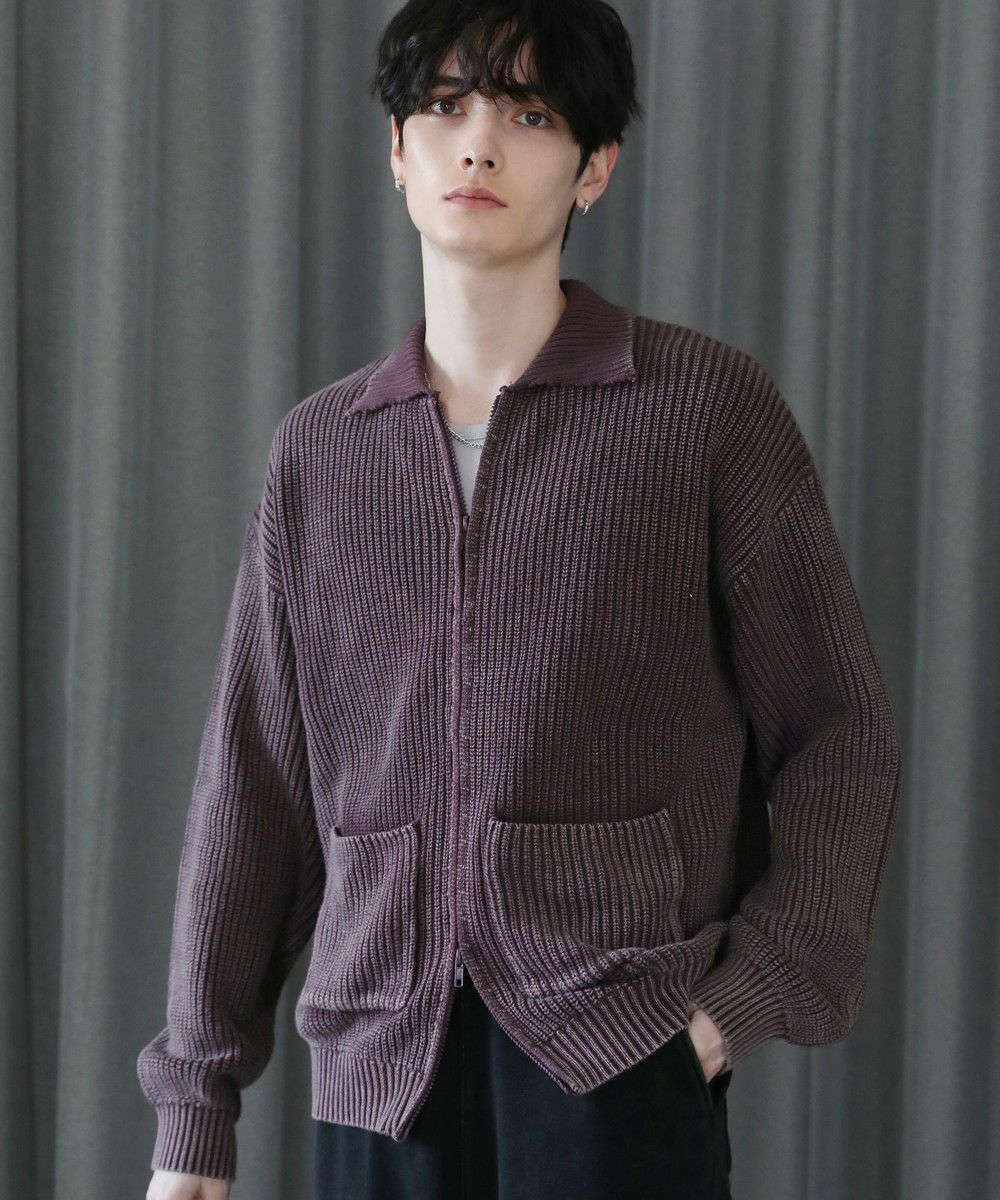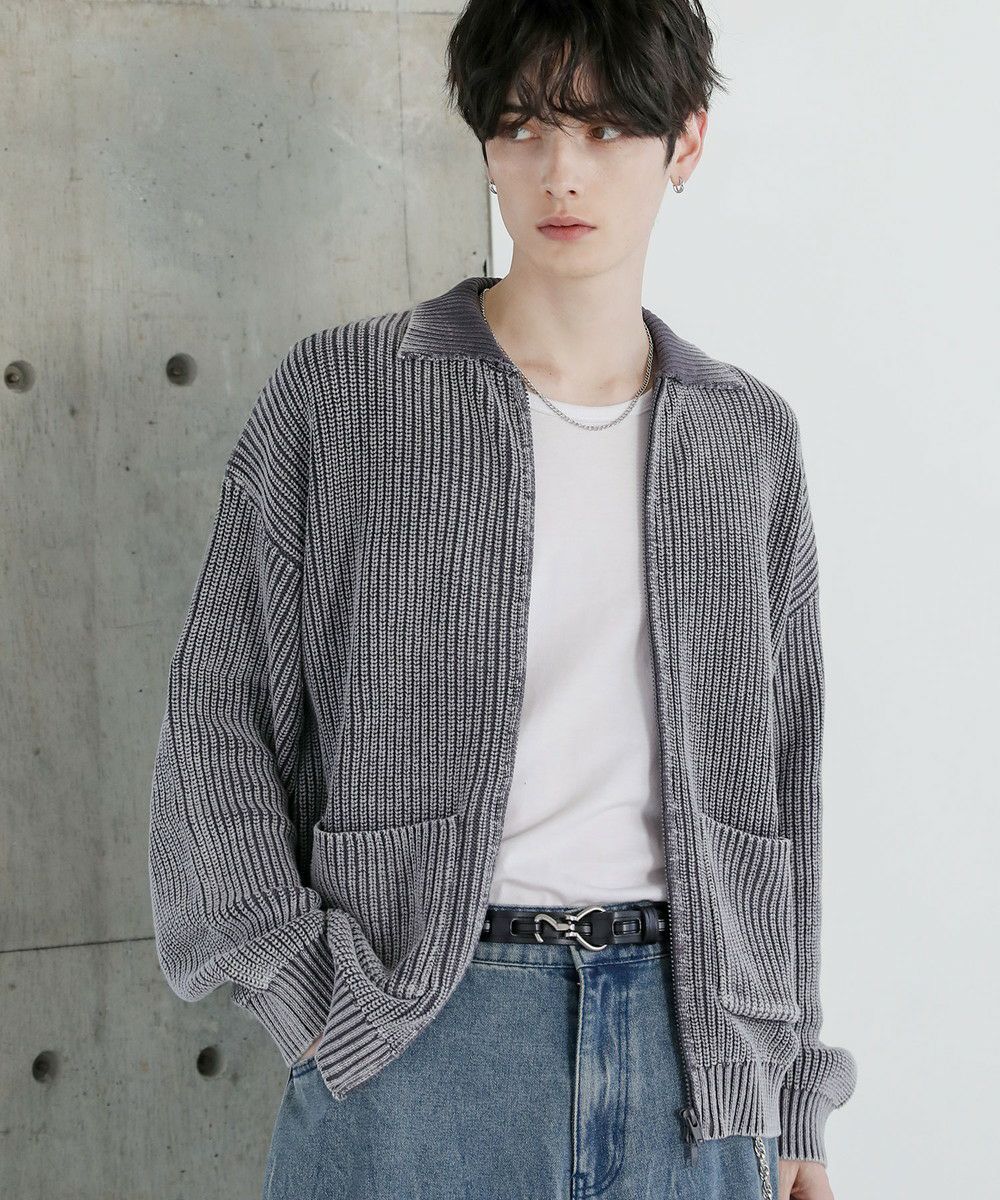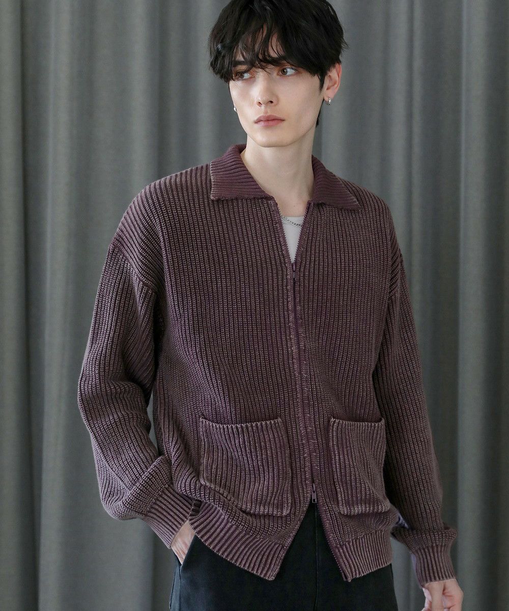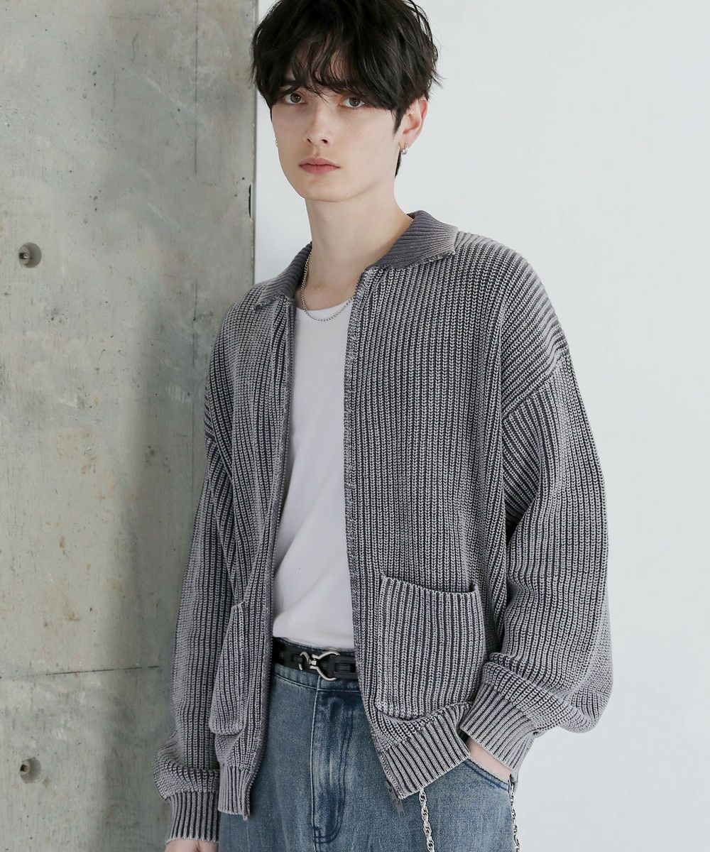 ヴィンテージ感のある風合いが魅力のカーディガン。ピグメント加工により独特の色褪せ感やムラ感を作り、古着のような雰囲気を演出しました。前を閉めればトップスとして、開けて着ればライトアウターとして使える万能アイテム。ダブルジップなので、下を開けてレイヤードスタイルを作るなど自由自在に着こなせます。袖にボリュームを持たせたたまりシルエットや、フロントのポケットなどがコーディネートのアクセントに。裾と袖のリブも太めなのでコーディネートにメリハリをプラスしてくれます。トレンドライクなルーズシルエットで、シンプルなコーディネートでもこなれた雰囲気に仕上げてくれる一着です。