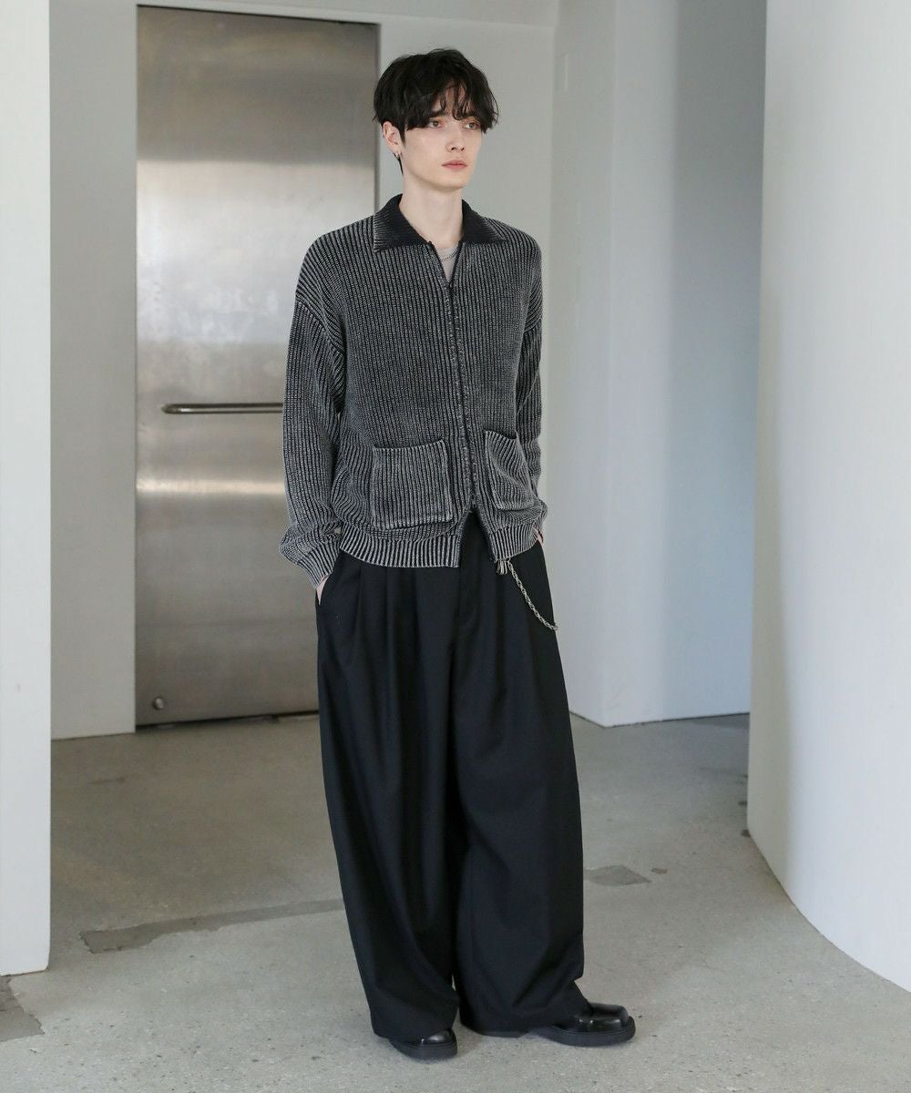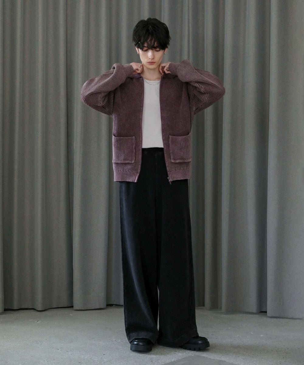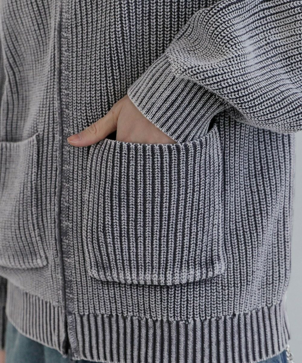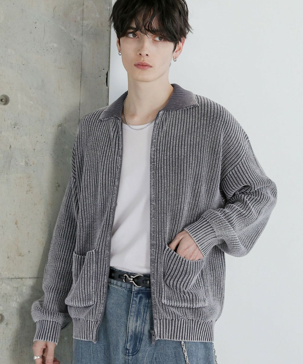 ヴィンテージ感のある風合いが魅力のカーディガン。ピグメント加工により独特の色褪せ感やムラ感を作り、古着のような雰囲気を演出しました。前を閉めればトップスとして、開けて着ればライトアウターとして使える万能アイテム。ダブルジップなので、下を開けてレイヤードスタイルを作るなど自由自在に着こなせます。袖にボリュームを持たせたたまりシルエットや、フロントのポケットなどがコーディネートのアクセントに。裾と袖のリブも太めなのでコーディネートにメリハリをプラスしてくれます。トレンドライクなルーズシルエットで、シンプルなコーディネートでもこなれた雰囲気に仕上げてくれる一着です。