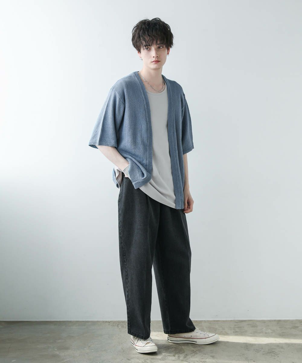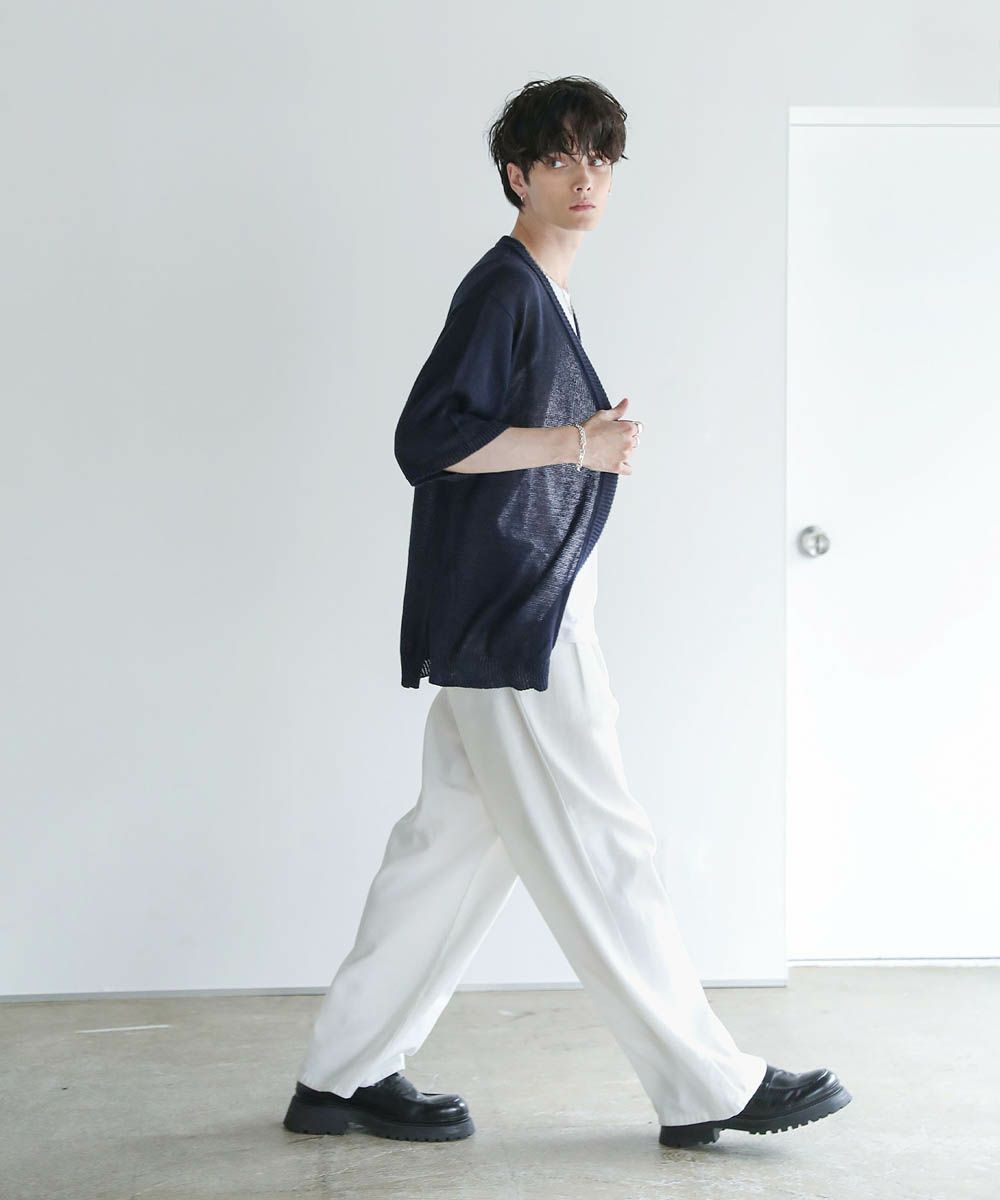 綿麻半袖ニットカーディガン