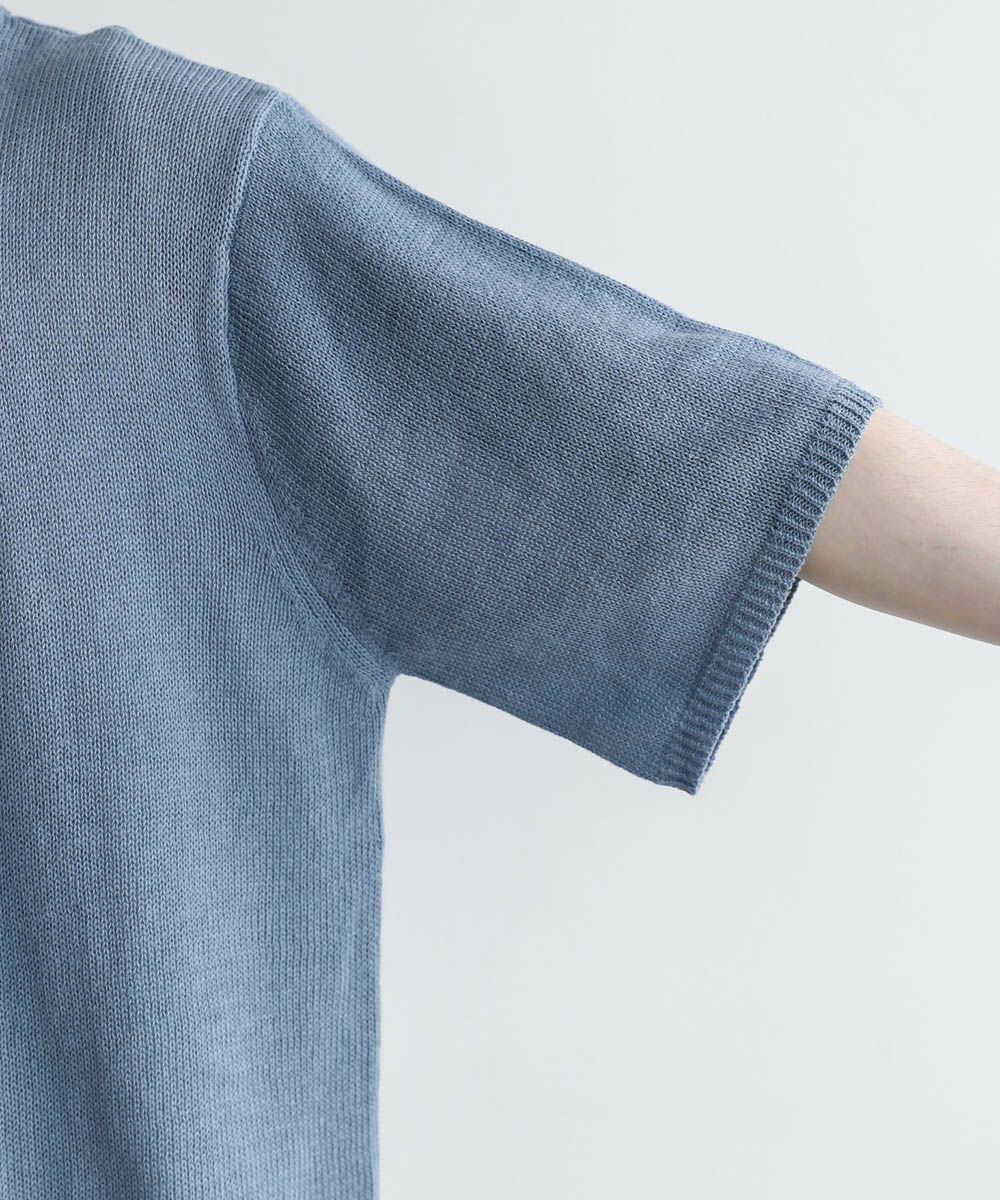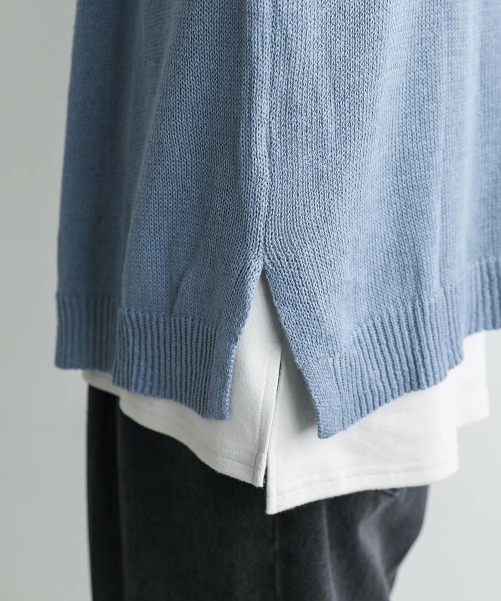 清涼感とナチュラルな雰囲気が魅力の綿麻ニット。麻と綿を混紡した春夏用のニット生地を使用しています。甘めに編まれたやや透け感のある生地で、通気性にも優れた涼しい着心地です。
