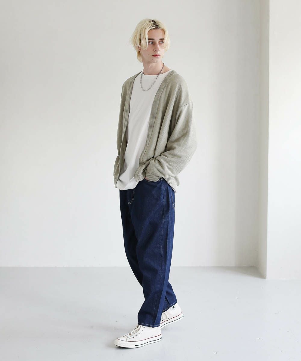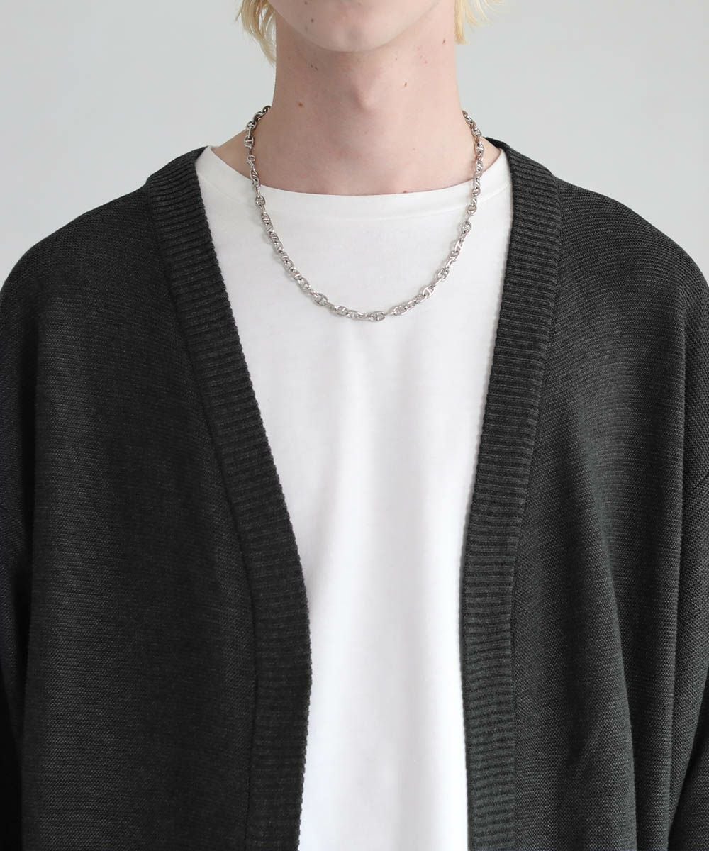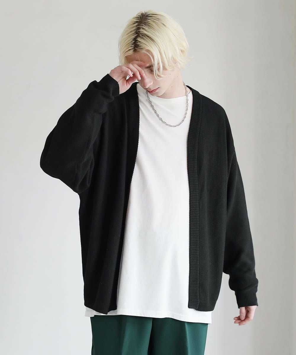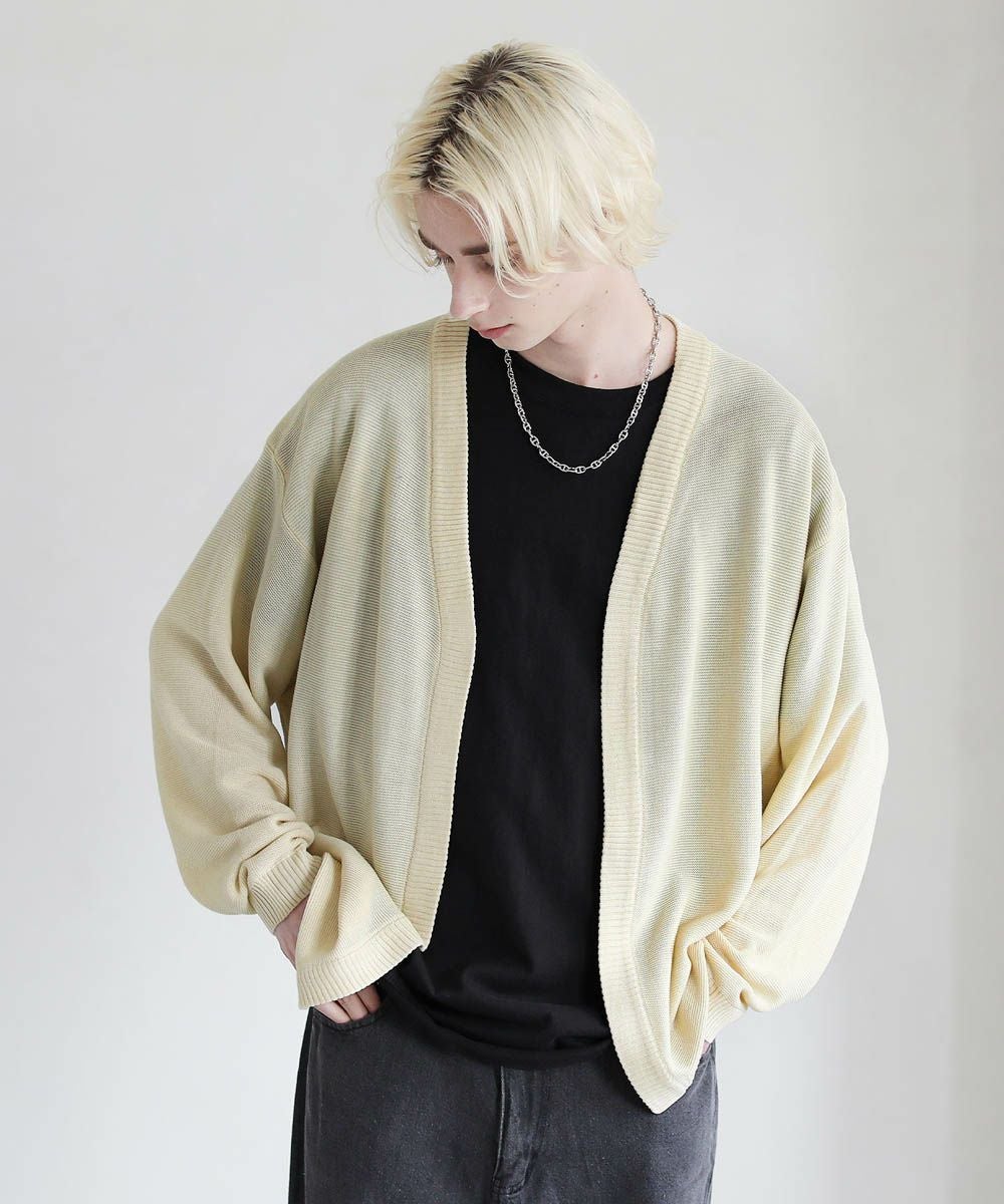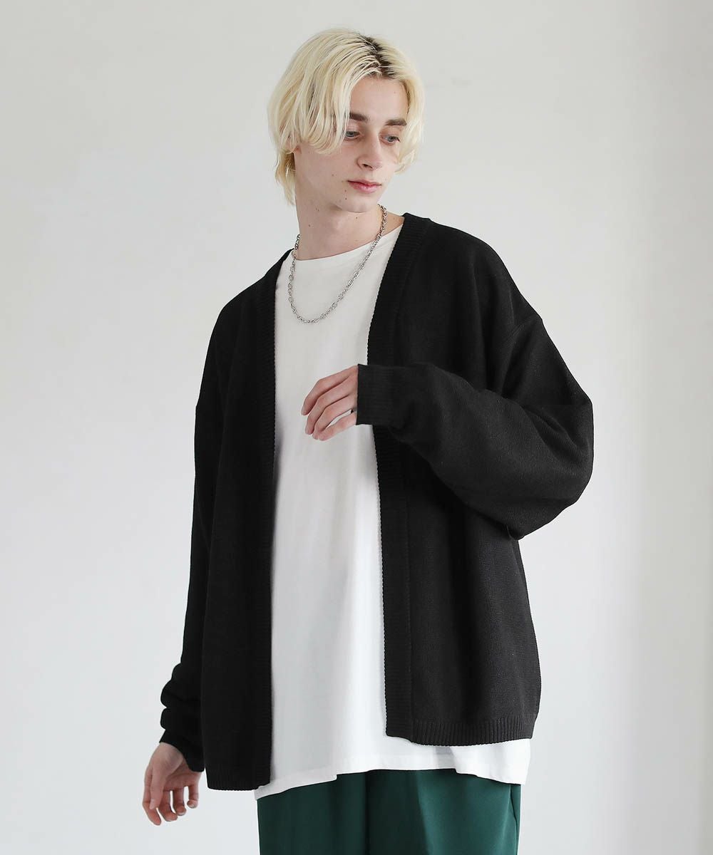 春から秋まで着まわせる、涼やかな透け感を持つガーター編みのハイゲージカーディガンです。カットソーやシャツの上からでも気軽にサッと羽織れるボタンレスデザインを採用。肩の落ちたドロップショルダーのデザインがユルい抜け感のあるアイテムです。リラックス感のあるゆったりとしたシルエットで、デイリーカジュアルからキレイめまで幅広いシーン活躍します。