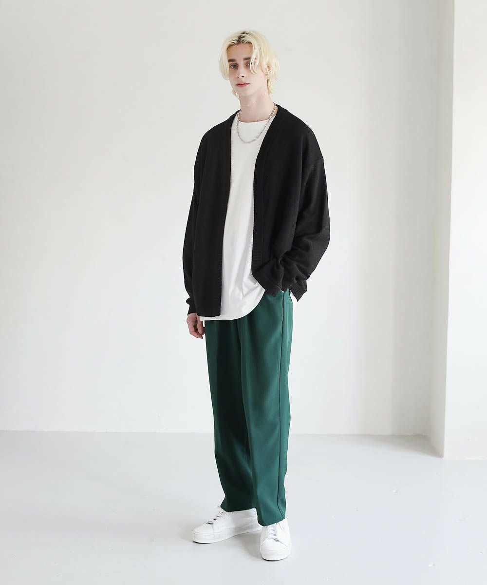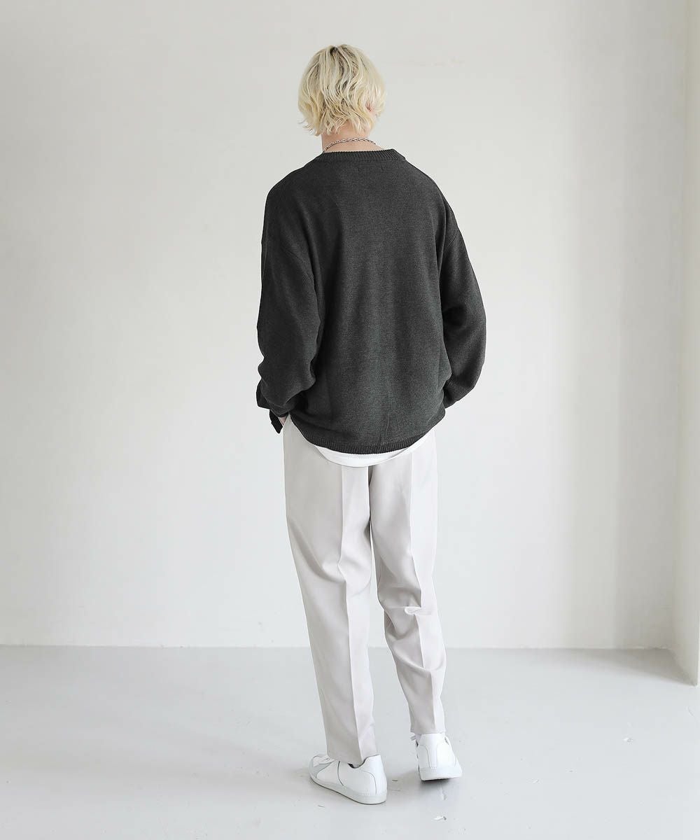 スラックスと合わせてキレイめにも、デニムパンツと合わせてカジュアルにも着まわせるシンプルで万能なデザイン。インナーにはカットソーやシャツがおすすめです。