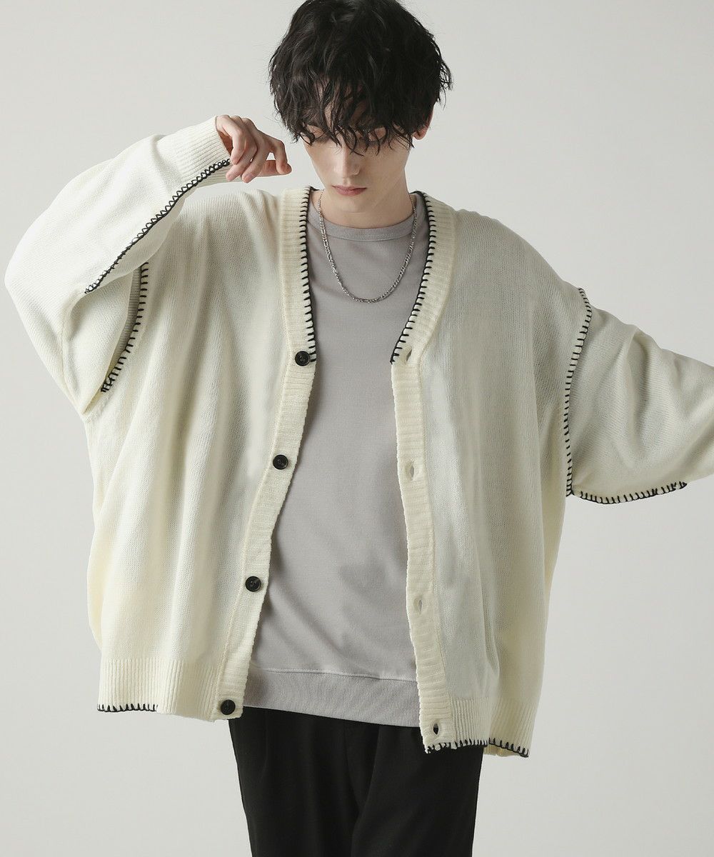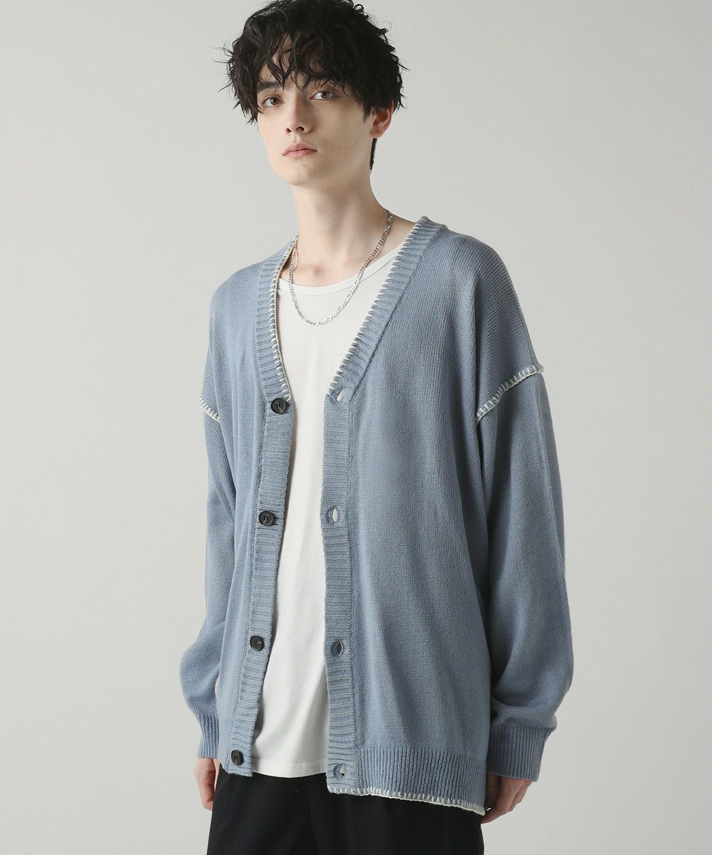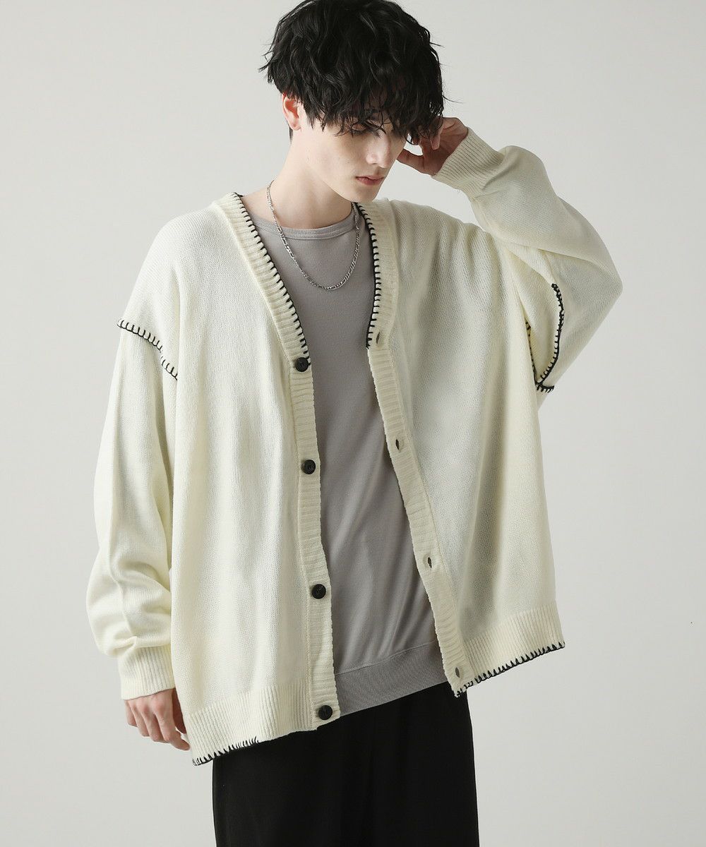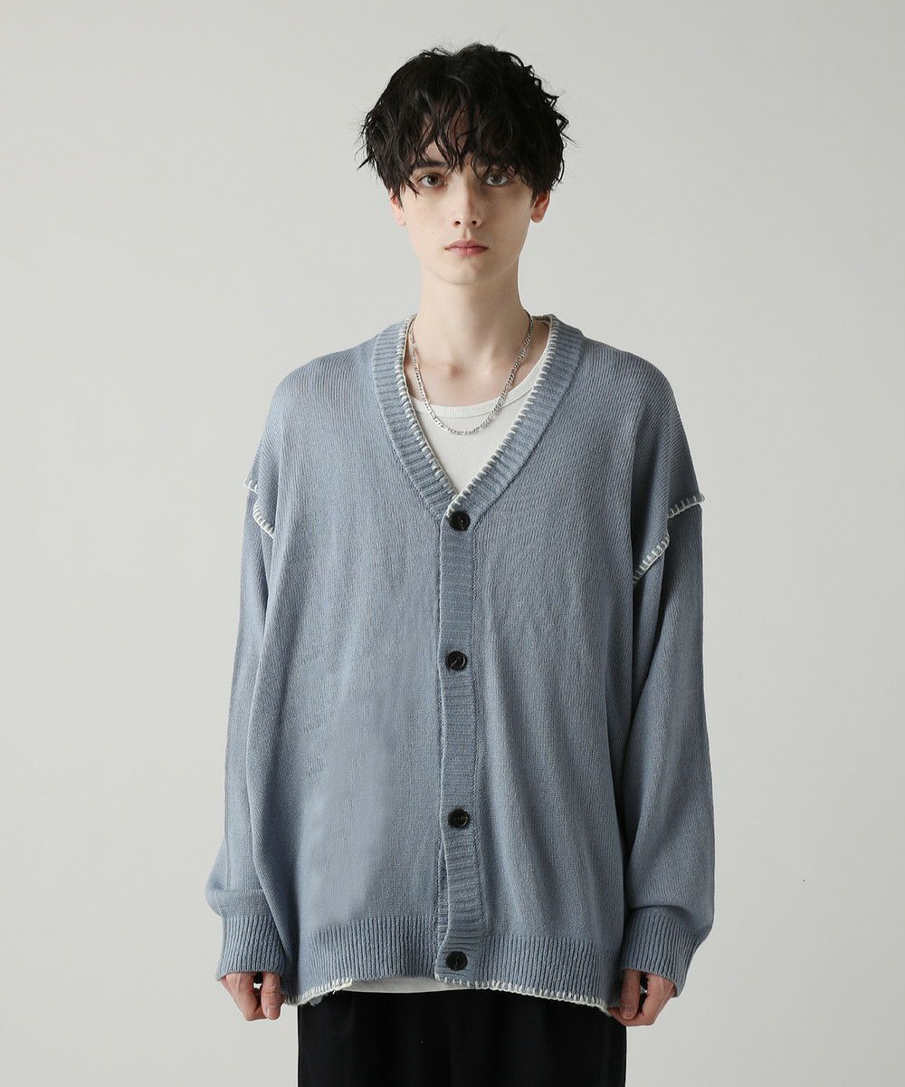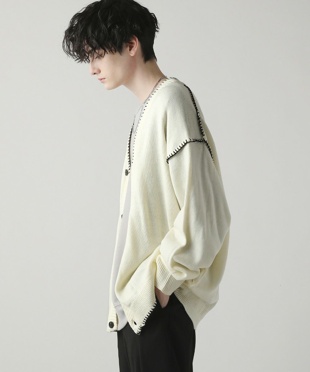 ハンドステッチがアクセントのカーディガンです。リラックス感のあるサイジングで抜け感を演出してくれるアイテム。シンプルながらネック部分、アームホールや袖、裾のハンドステッチがアクセントになります。さらっと羽織れるライトな着心地と、春夏らしい柔らかいカラーでシーズンライクな着こなしが楽しめます。