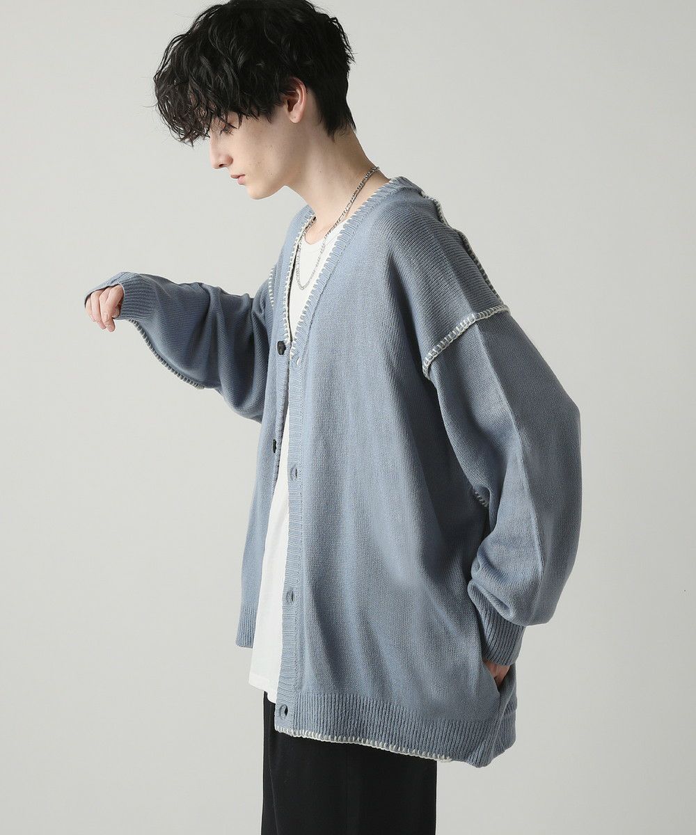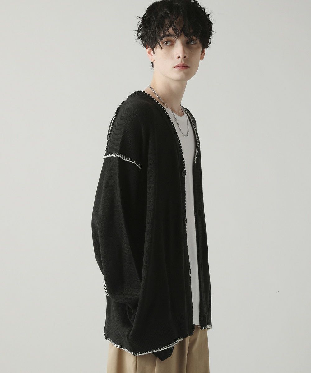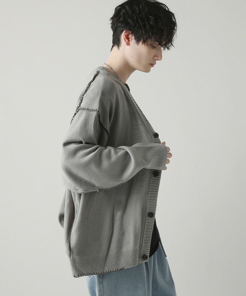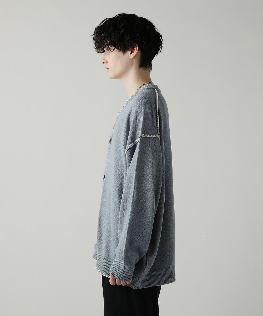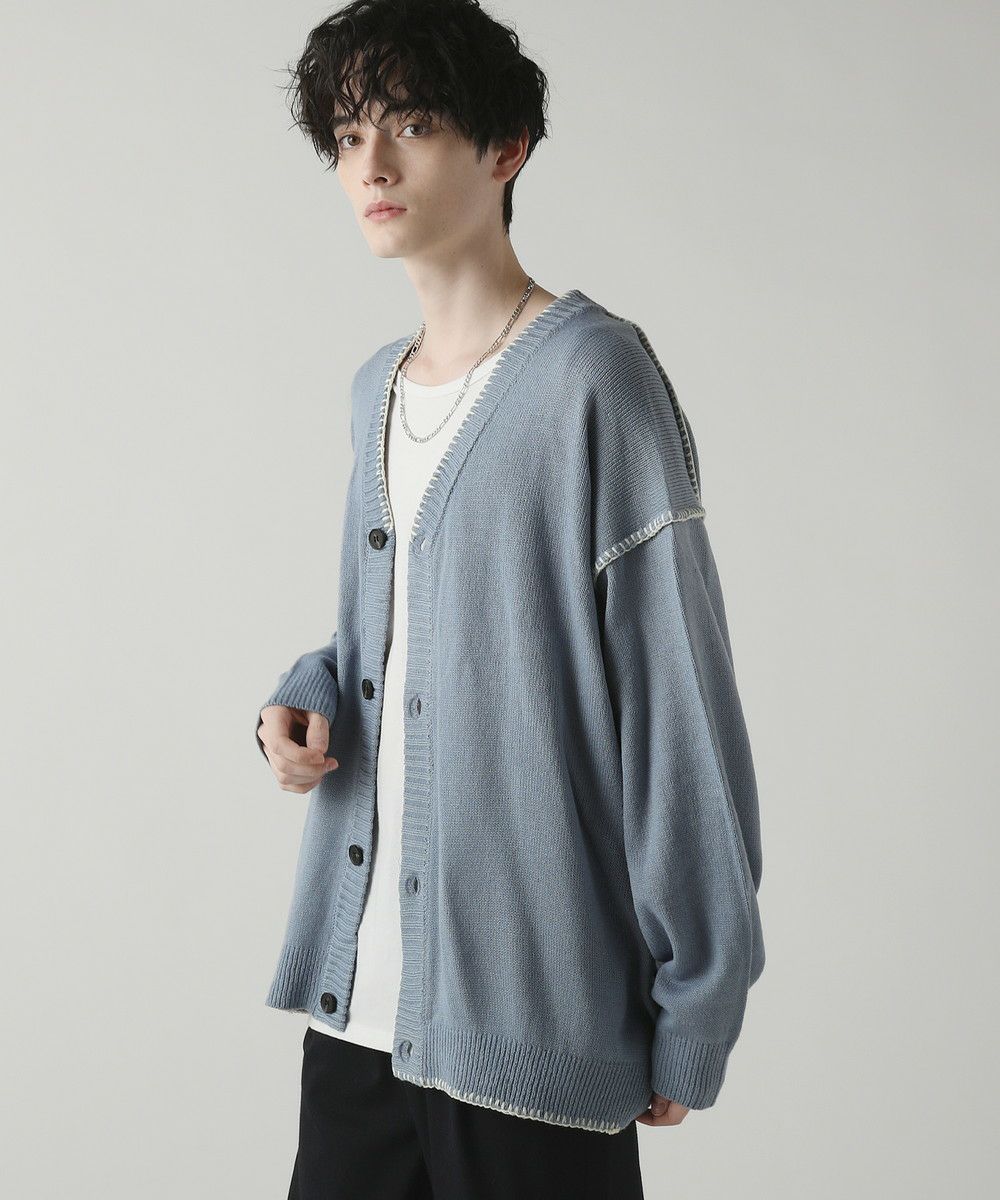 ハンドステッチがアクセントのカーディガンです。リラックス感のあるサイジングで抜け感を演出してくれるアイテム。シンプルながらネック部分、アームホールや袖、裾のハンドステッチがアクセントになります。さらっと羽織れるライトな着心地と、春夏らしい柔らかいカラーでシーズンライクな着こなしが楽しめます。