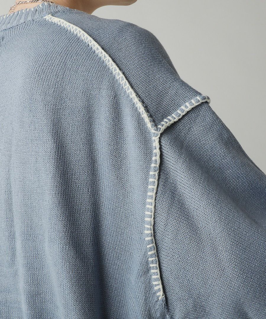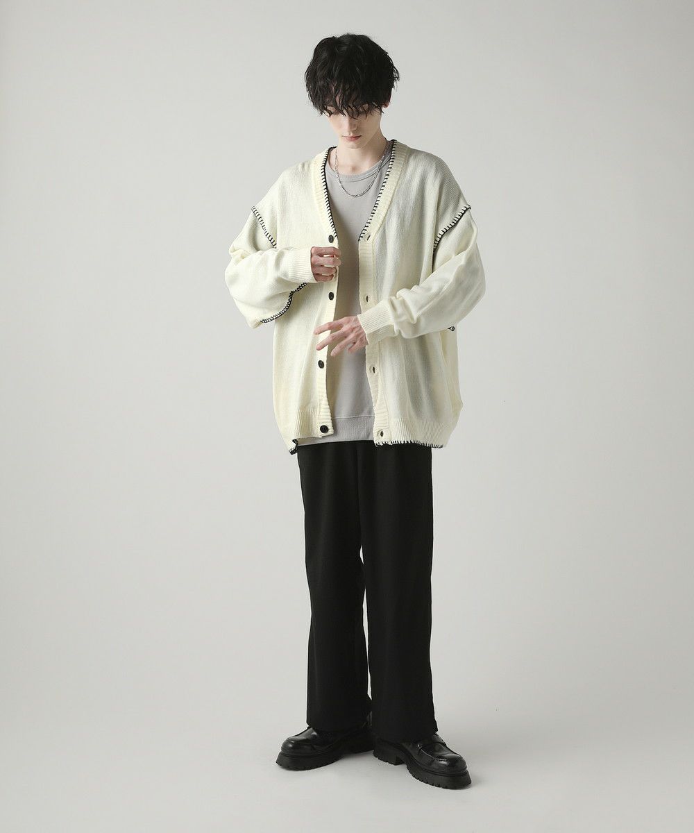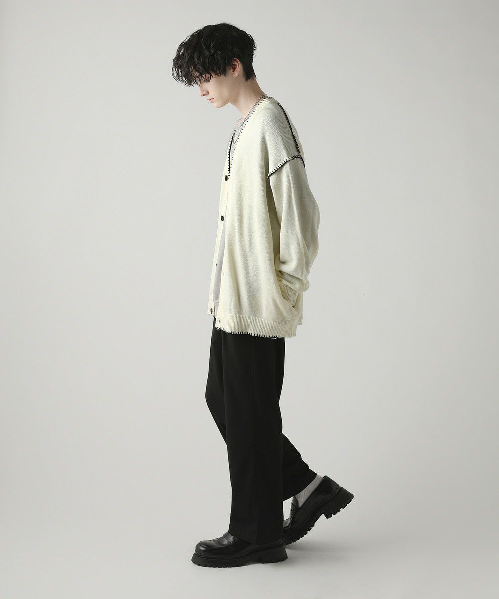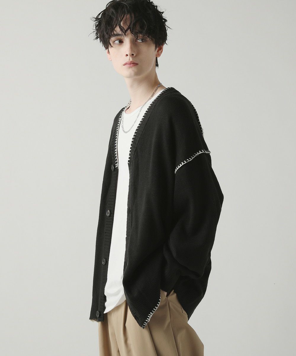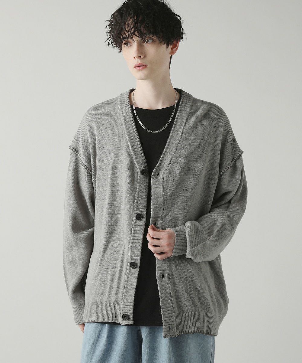 ハンドステッチがアクセントのカーディガンです。リラックス感のあるサイジングで抜け感を演出してくれるアイテム。シンプルながらネック部分、アームホールや袖、裾のハンドステッチがアクセントになります。さらっと羽織れるライトな着心地と、春夏らしい柔らかいカラーでシーズンライクな着こなしが楽しめます。