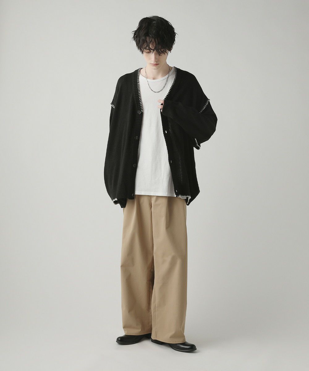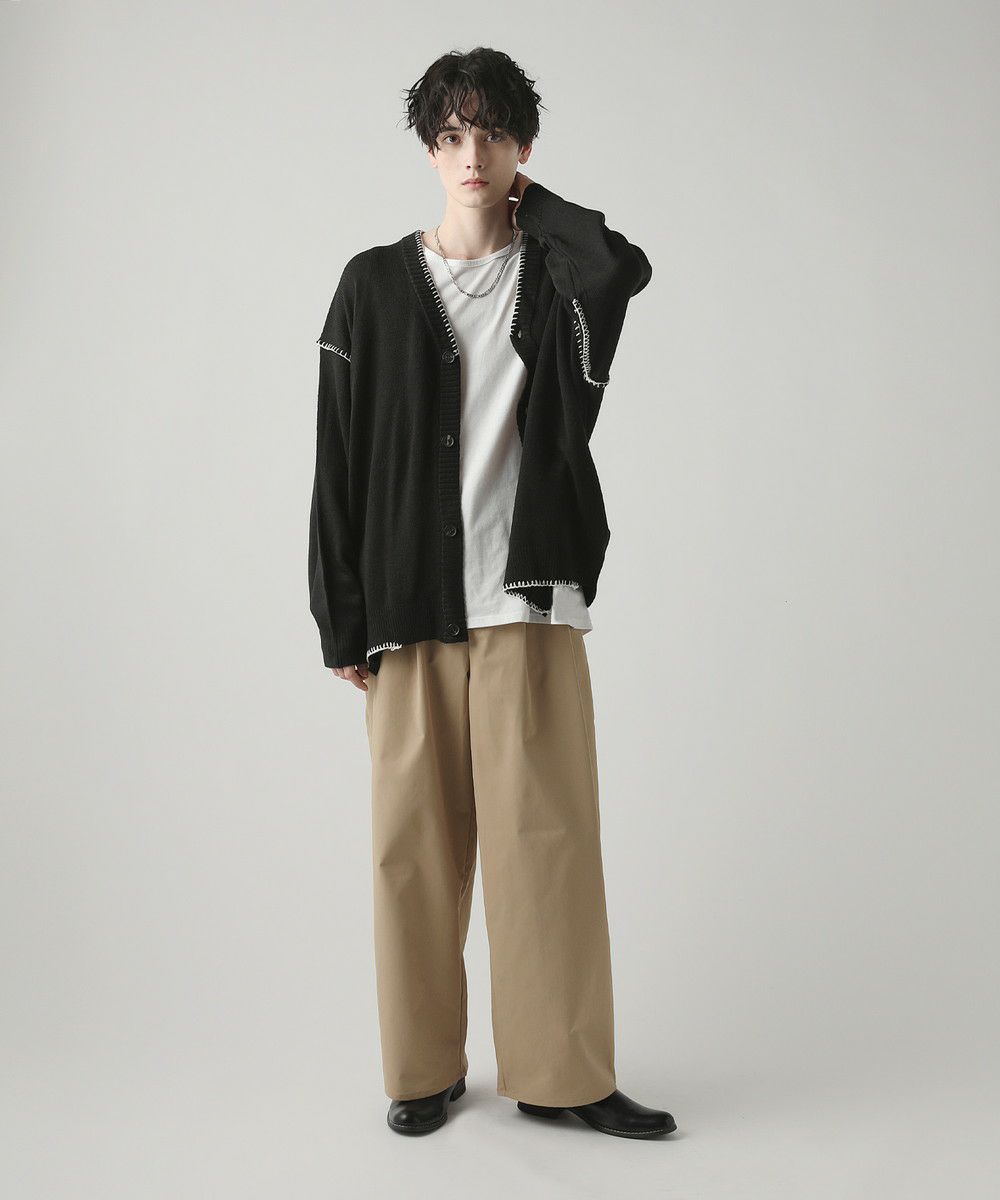 ゆとりのあるサイズ感なので、ルーズなカットソーやシャツとも相性抜群。落ち着いたデザインなので、ボトムスやシューズの組み合わせでカジュアルにも上品にも着こなしのアレンジが可能です。程よい厚みの生地なので、アウターの中に着てもかさばらず、春先のさっと羽織れるアウターとしても活躍します。