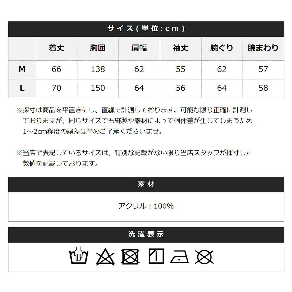 程よい厚みでチクチク感のないアクリルニットを使用しています。軽く柔らかい着心地が春先にちょうど良い素材感。ご自宅での手洗いが可能です。