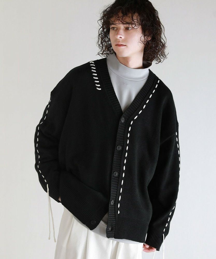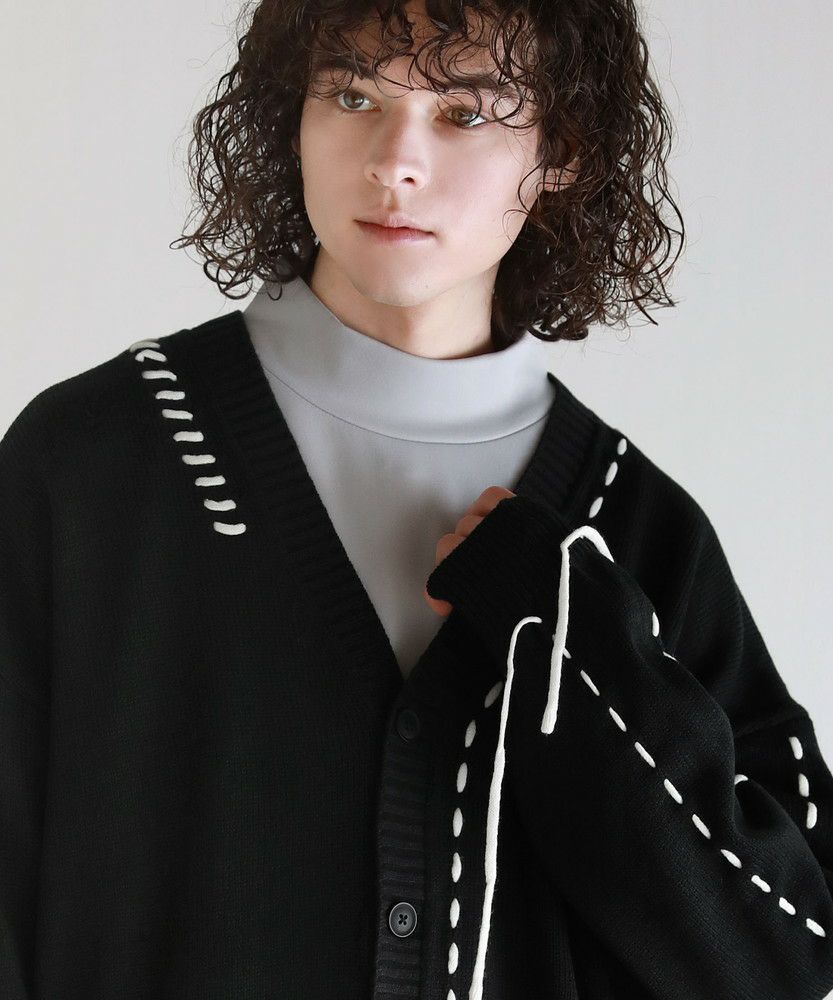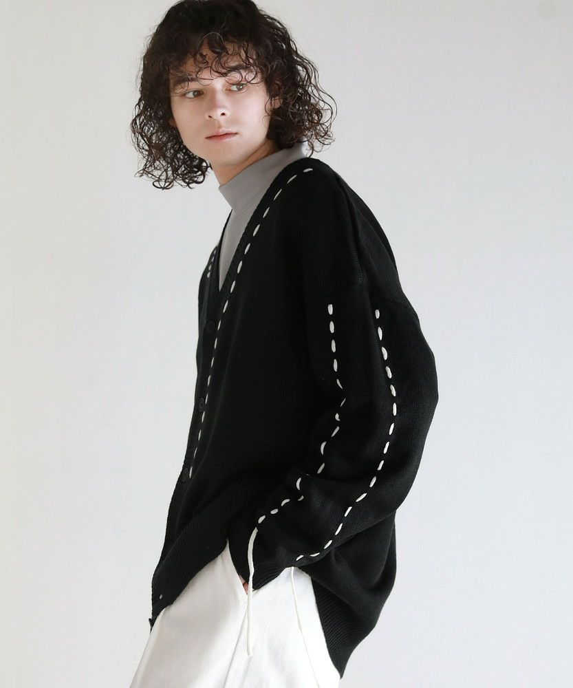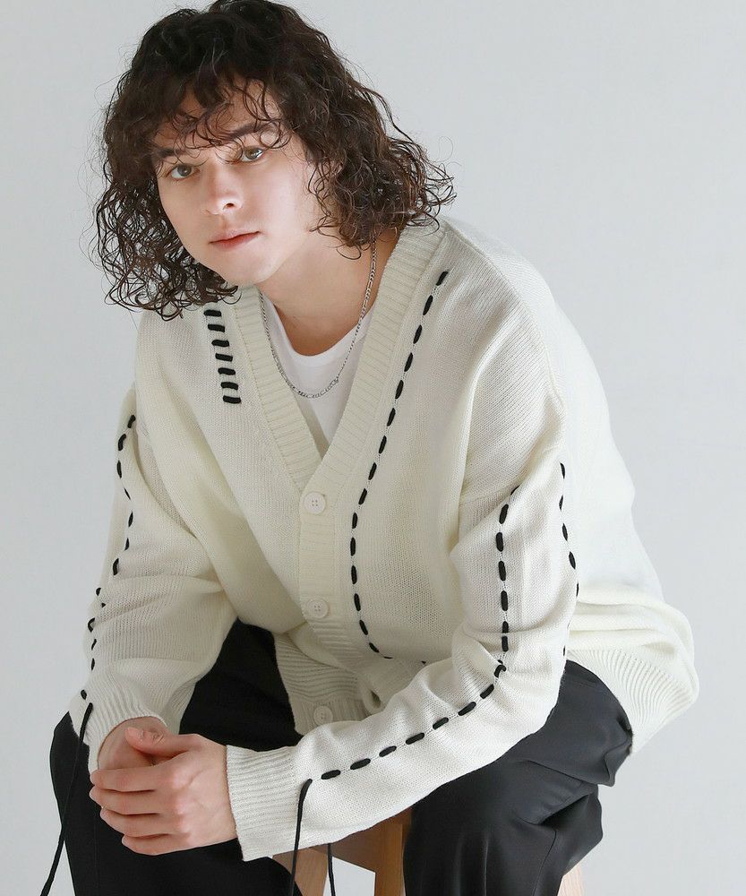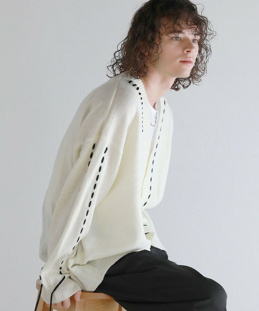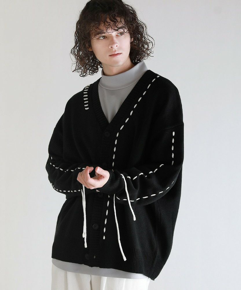 Buyer's select/ビックシルエット配色ハンドステッチ長袖ニットカーディガン