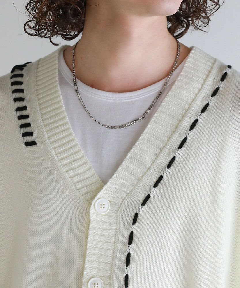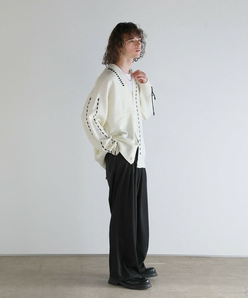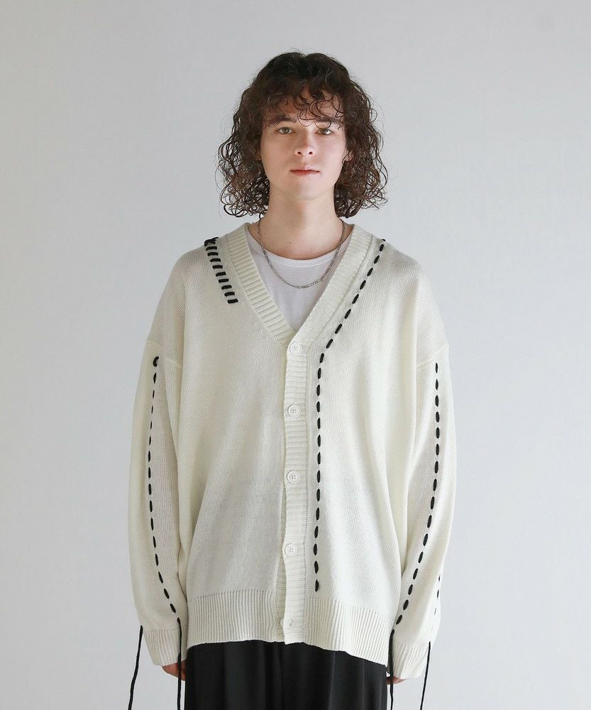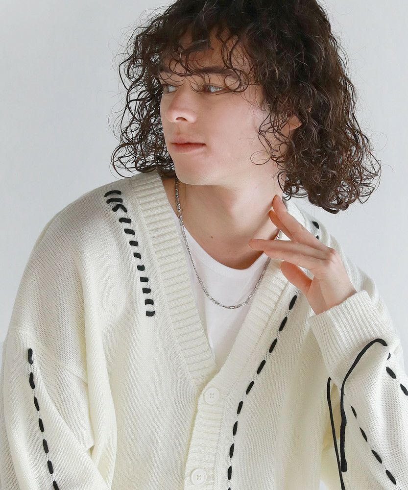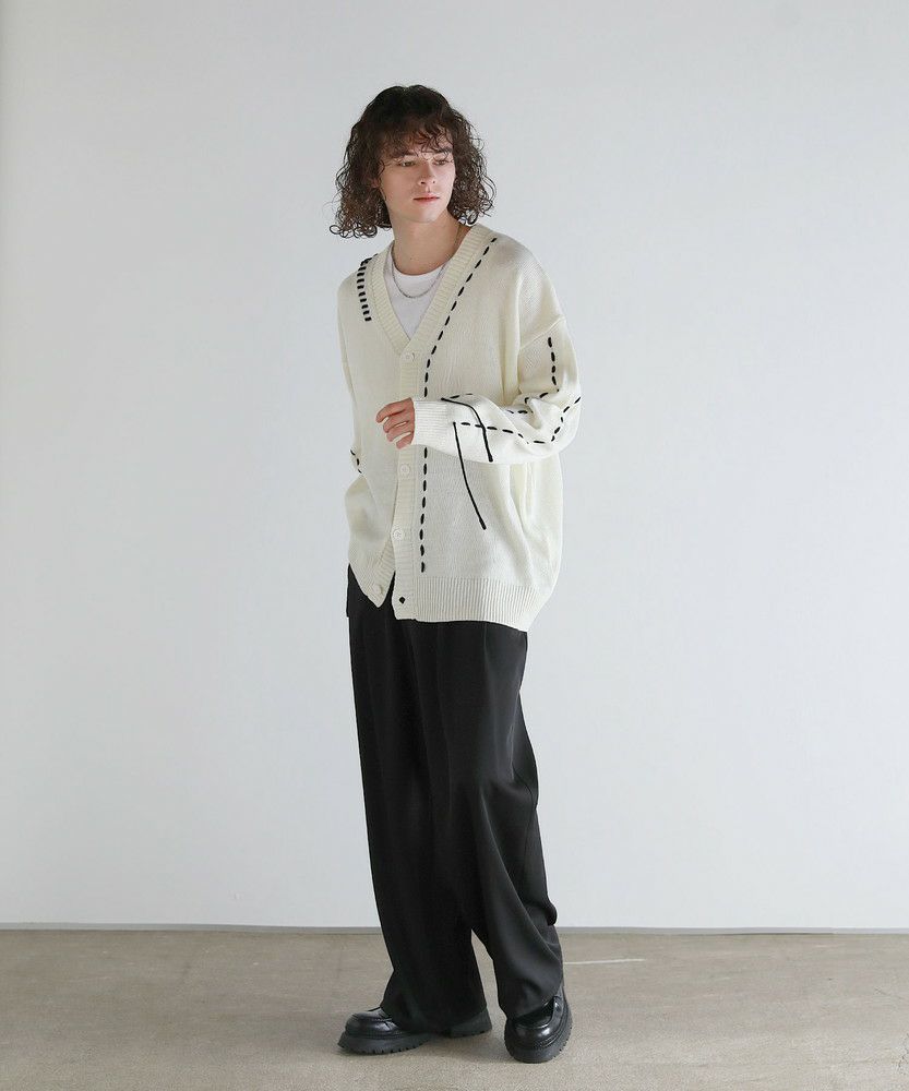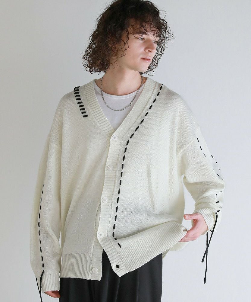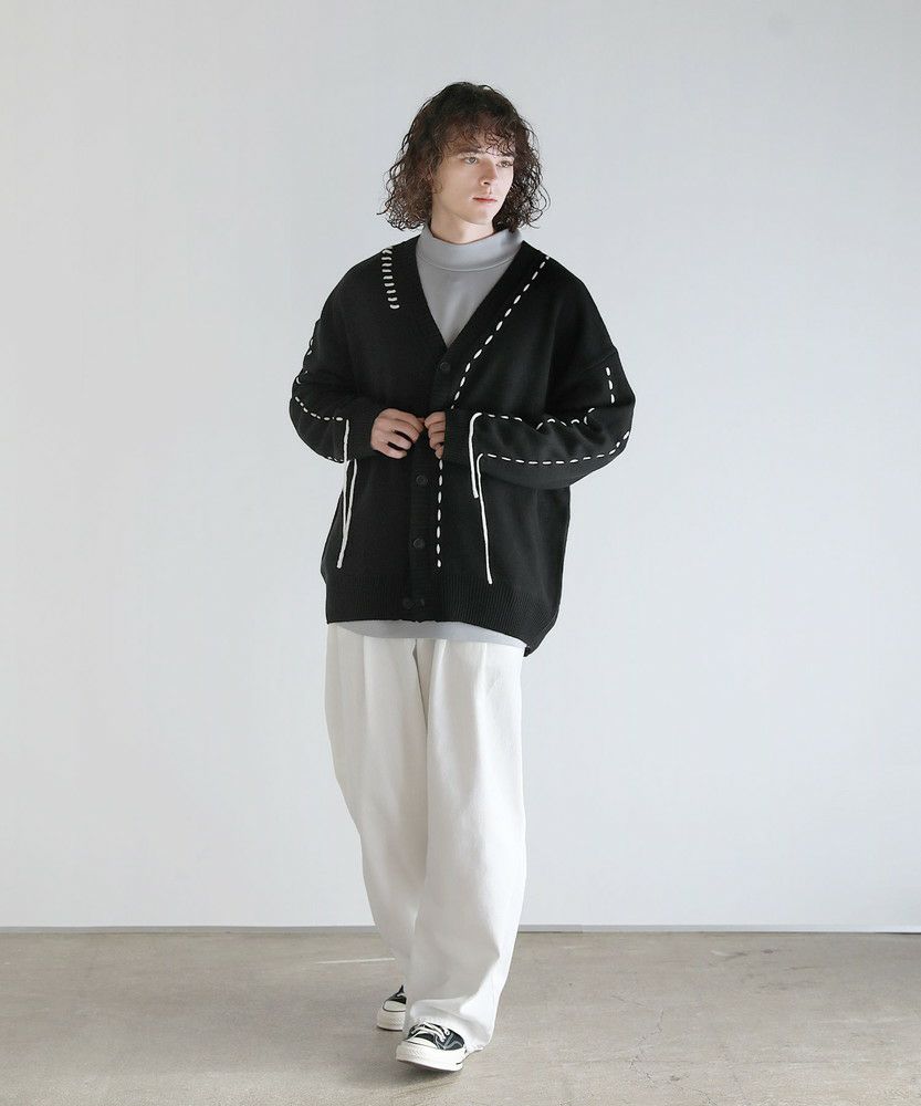 Buyer's select/ビックシルエット配色ハンドステッチ長袖ニットカーディガン