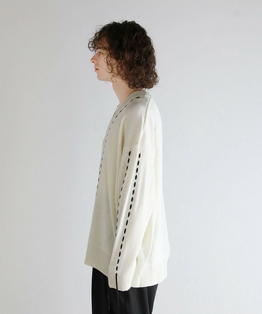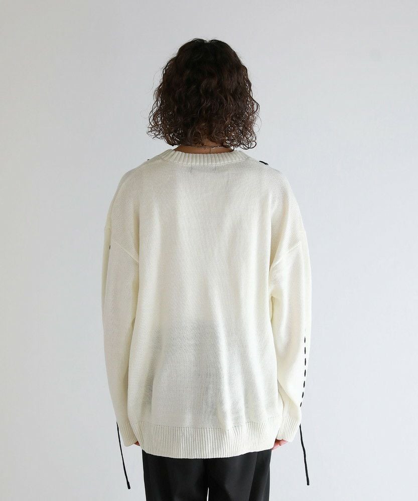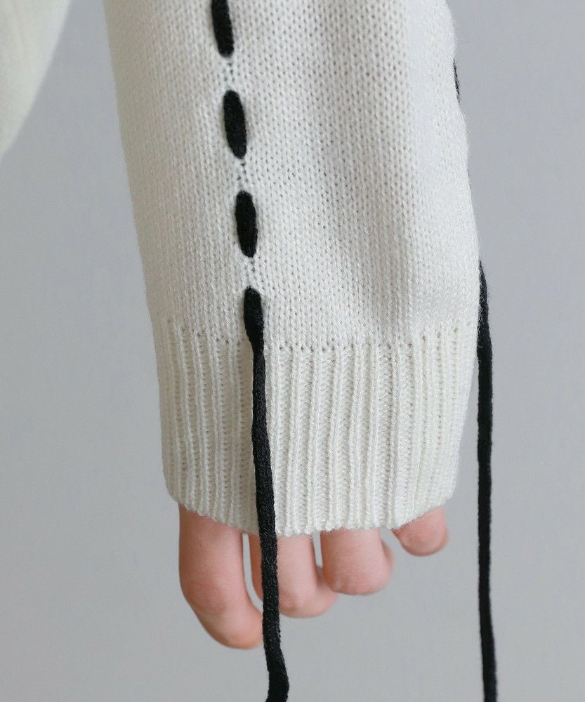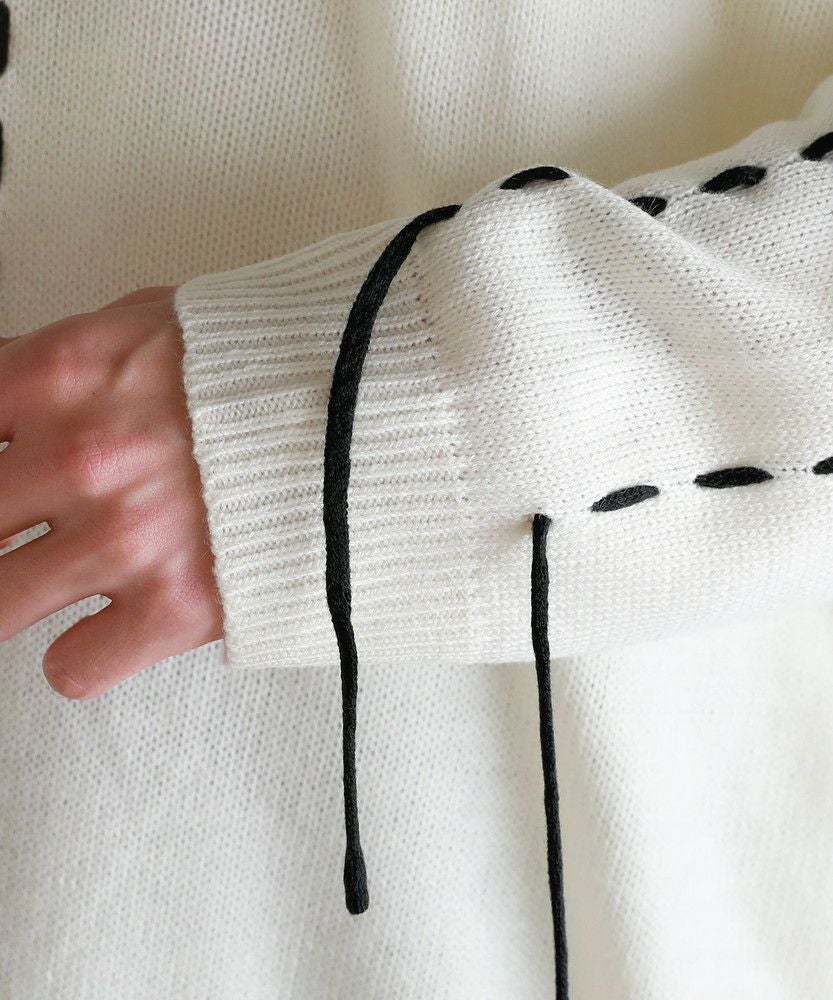 ビックシルエット配色ハンドステッチ長袖ニットカーディガン