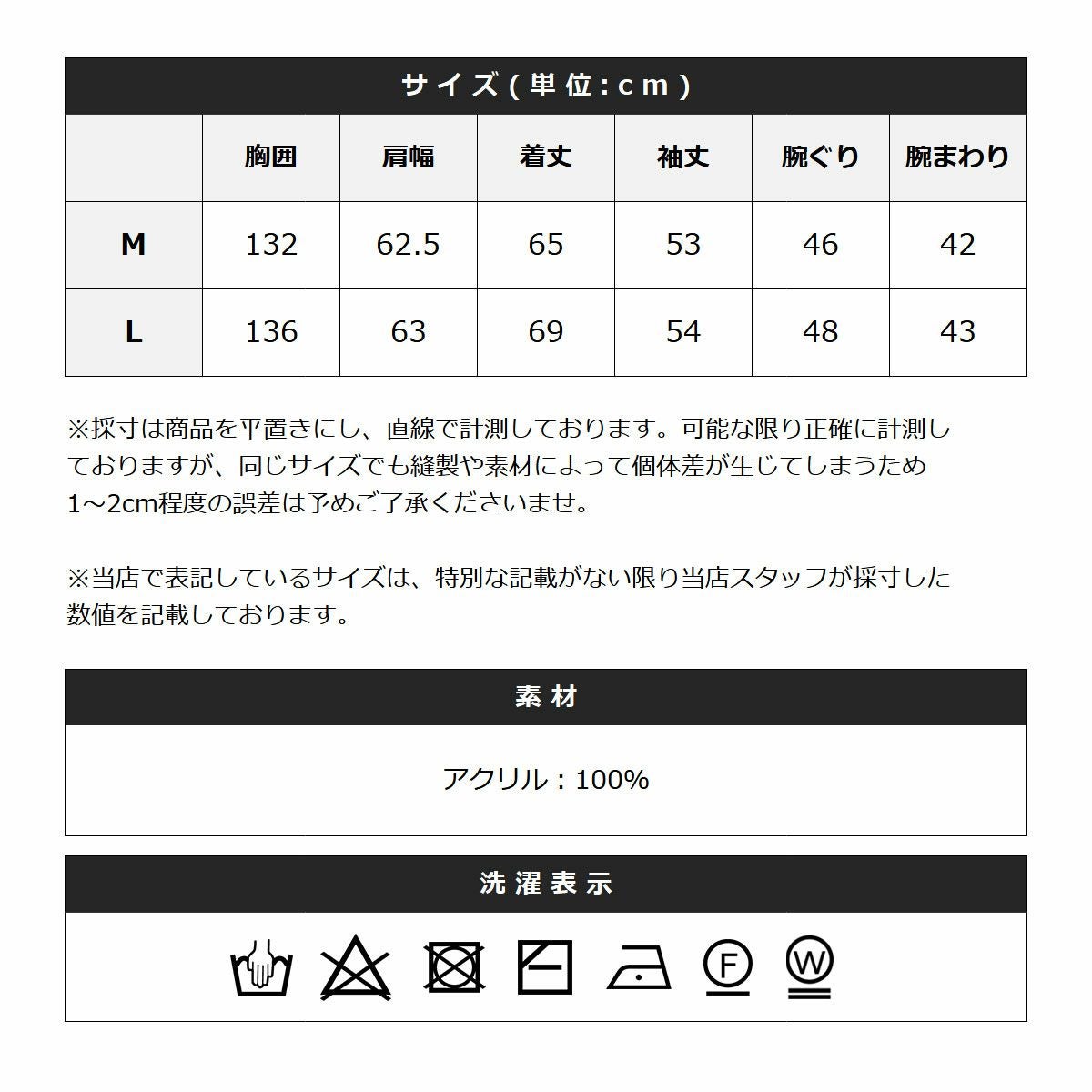 ※商品特性、縫製や素材により同サイズでも、若干の誤差が生じてしまうことを予めご了承ください。