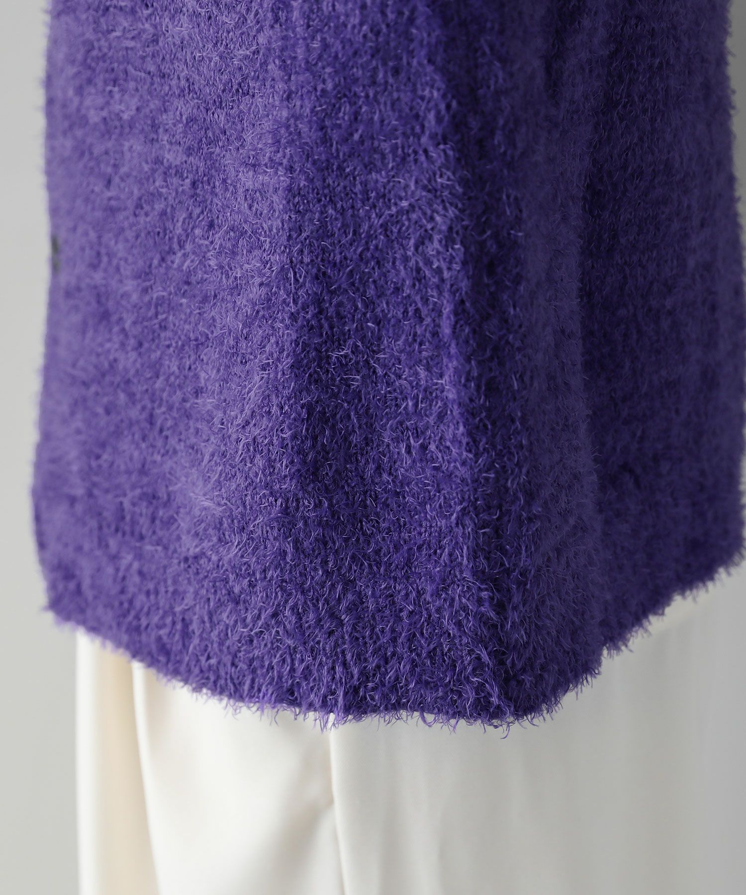 高見えする長めの毛足を持つ、フェザーヤーンを使用しています。