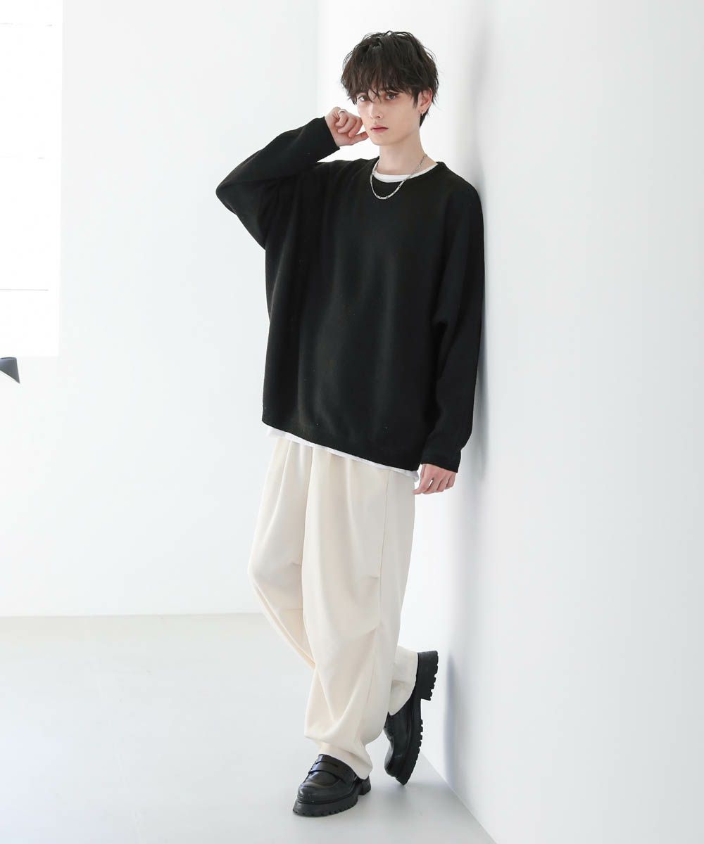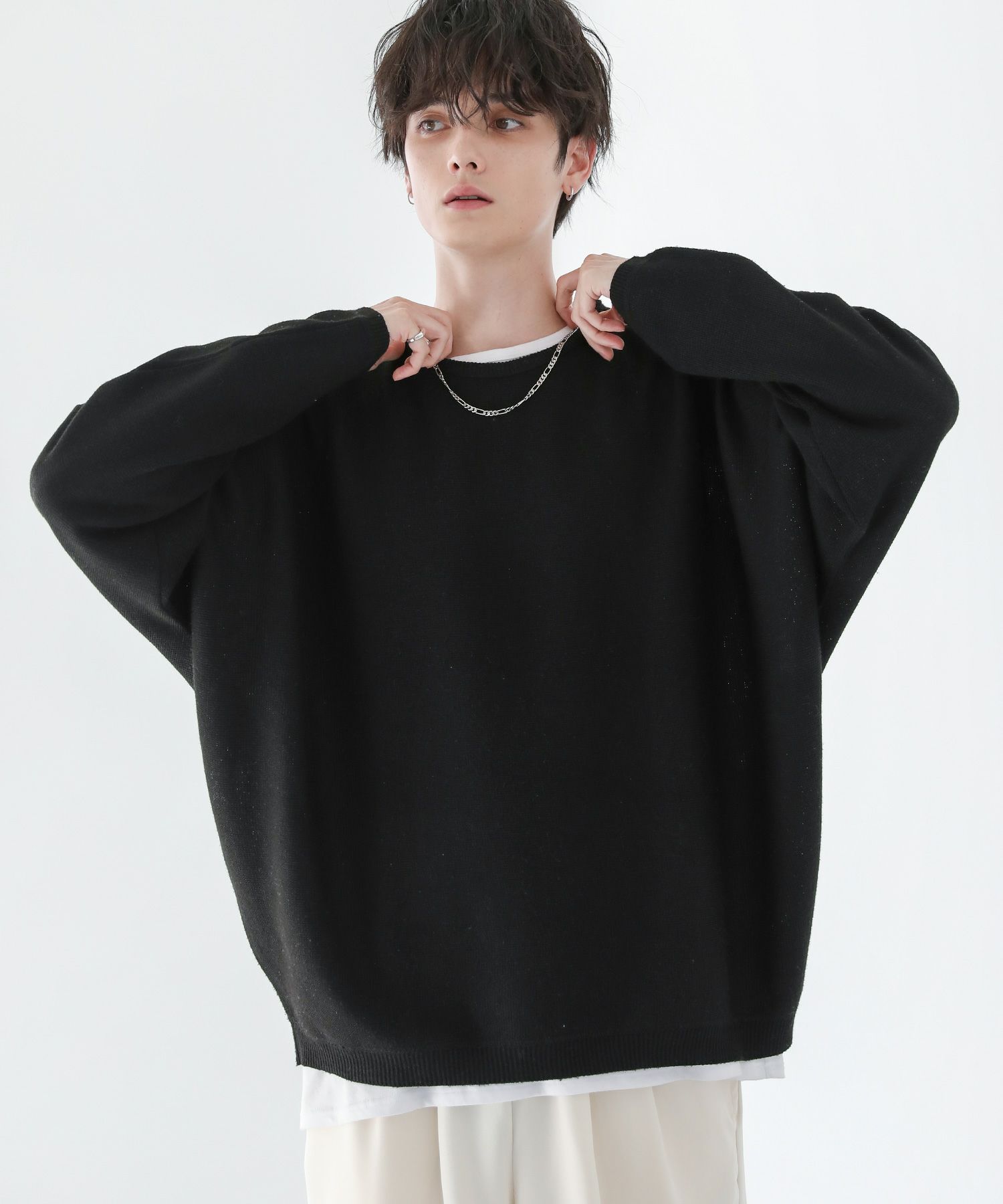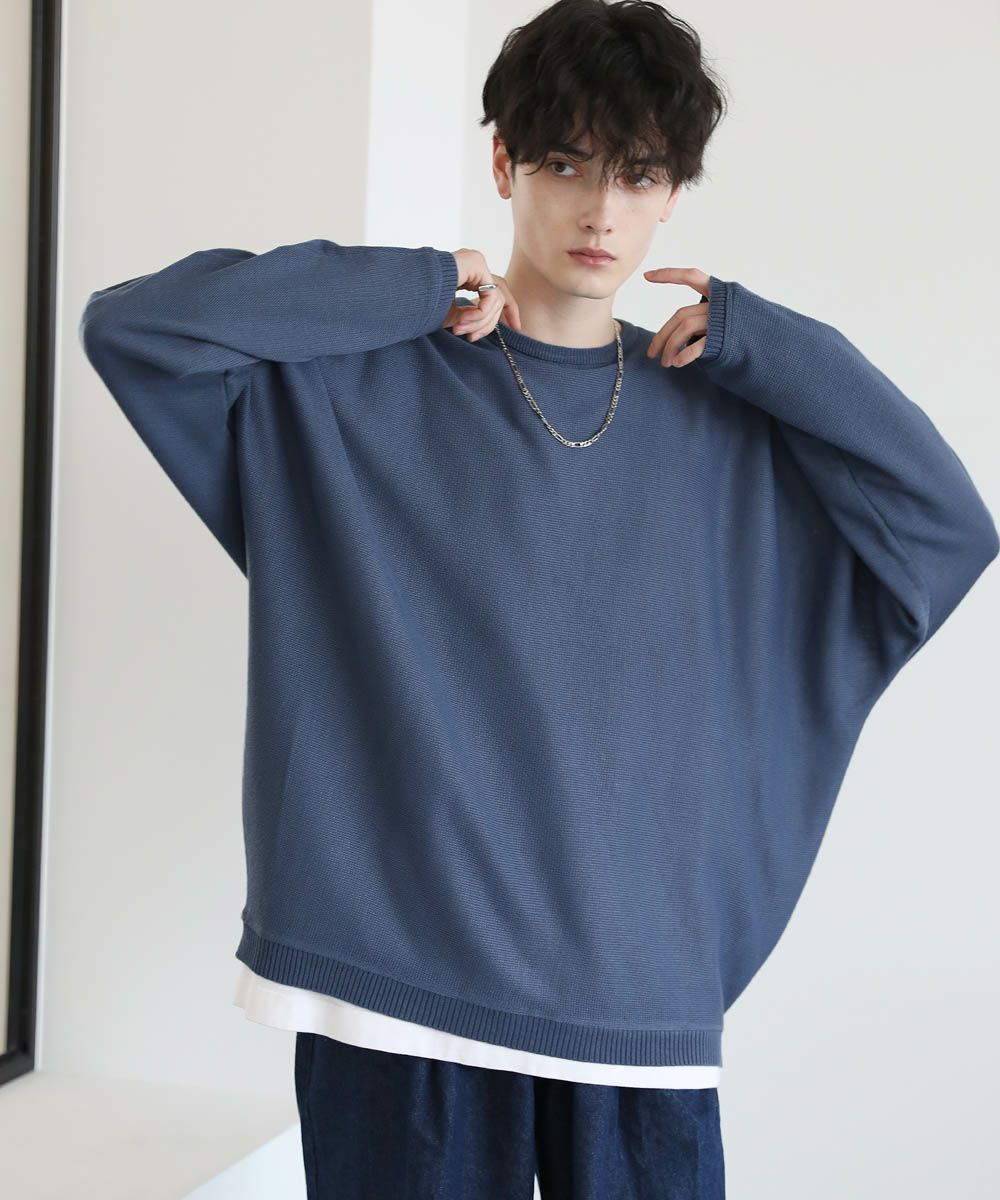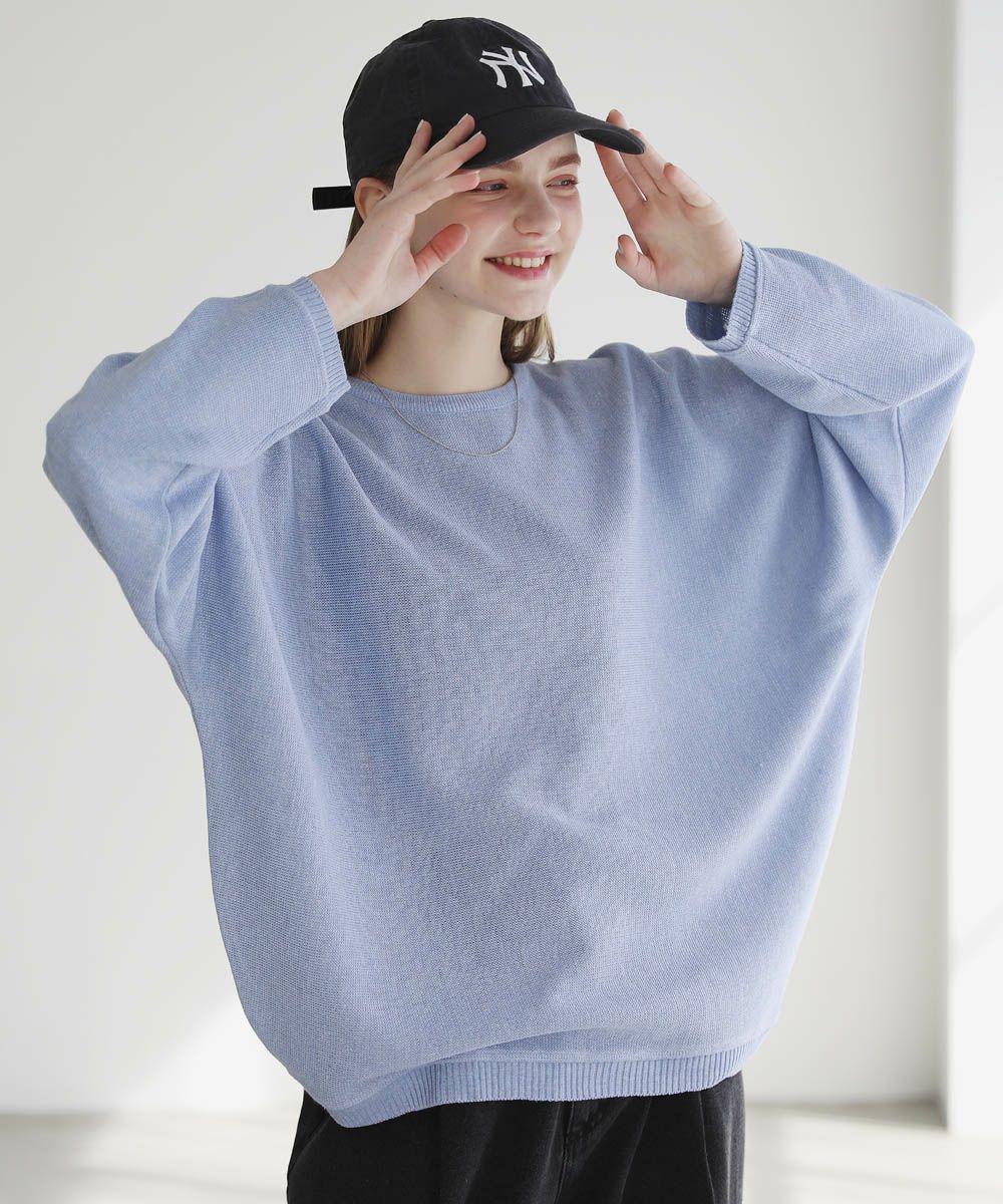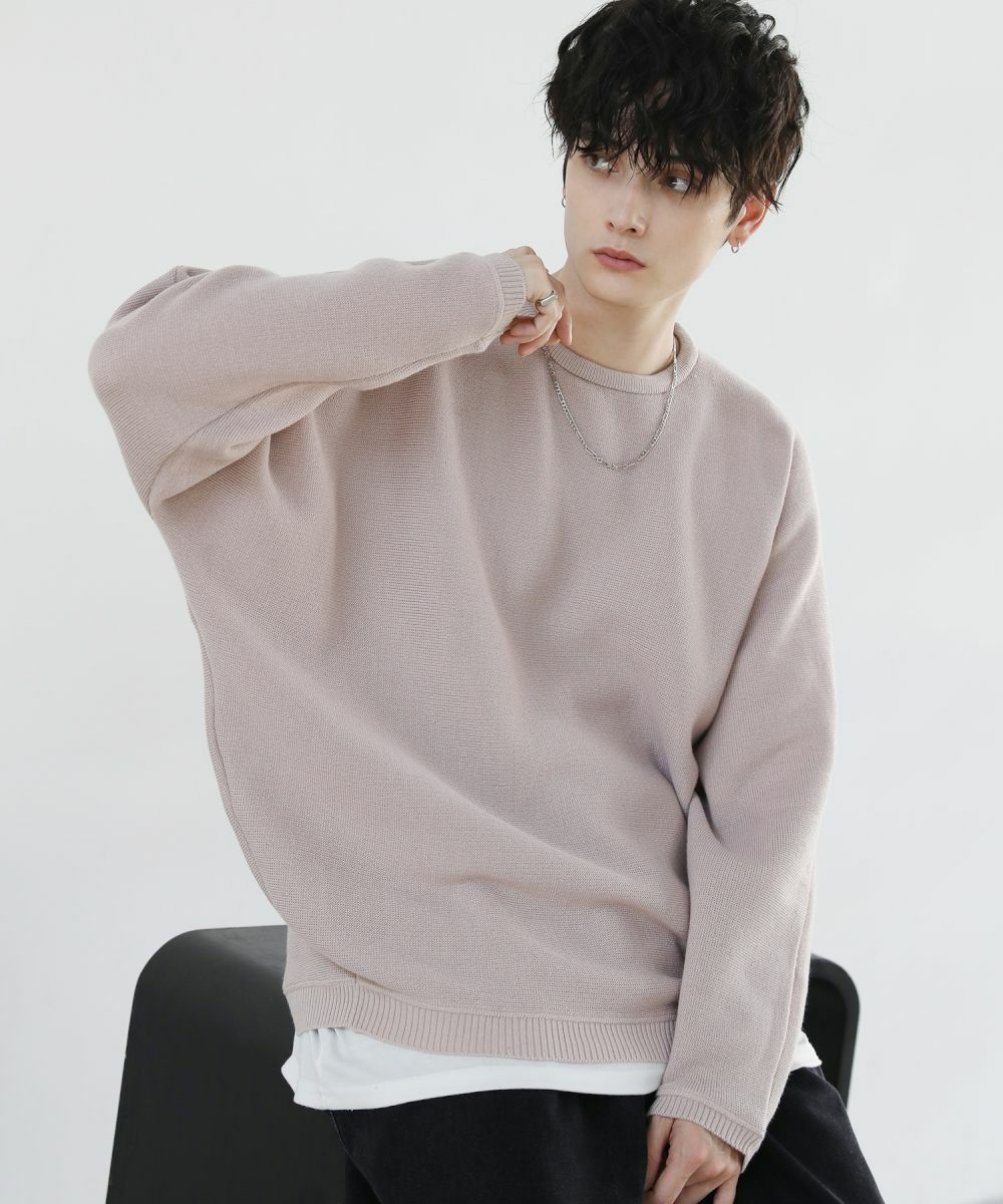 12ゲージ ミラノリブ ドルマン長袖クルーネックニット