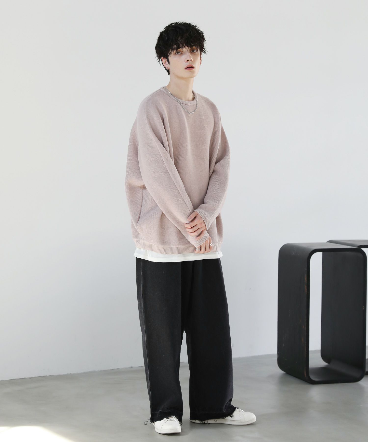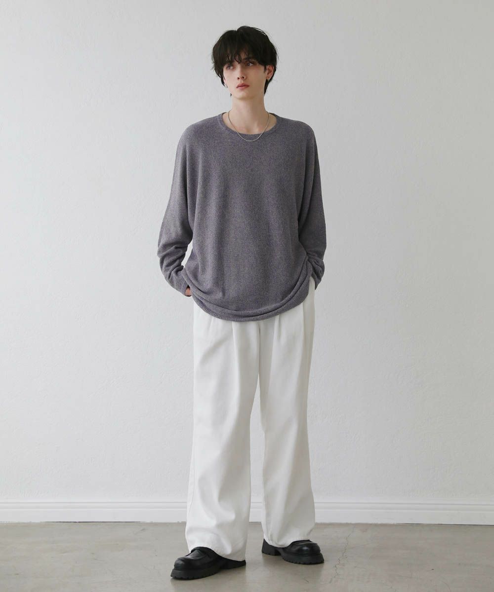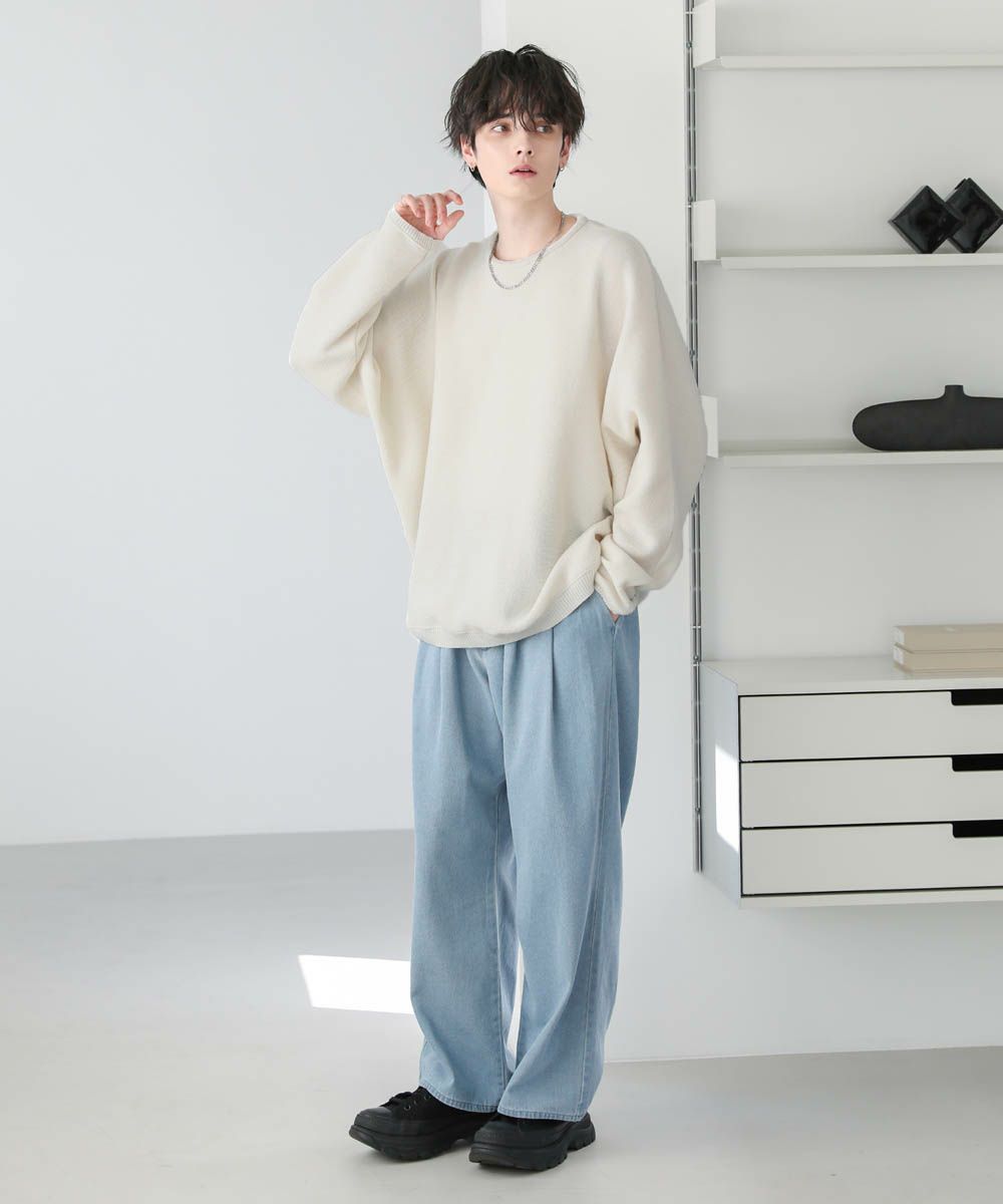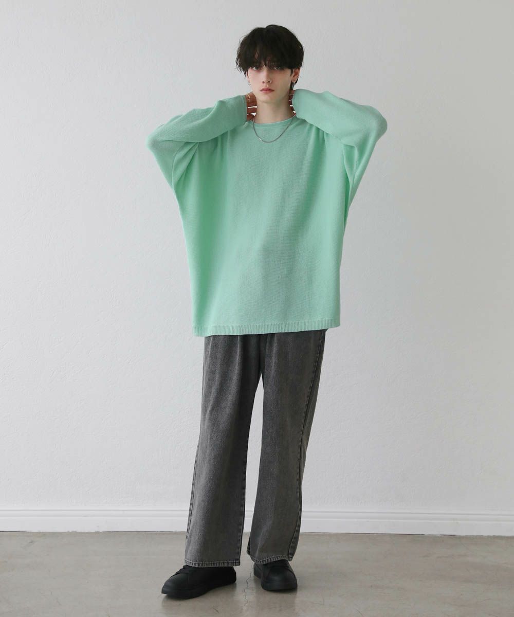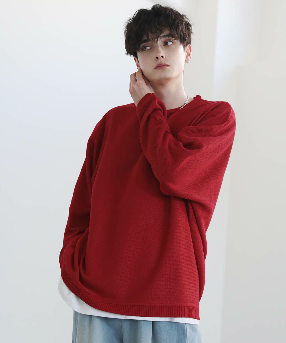 12ゲージ ミラノリブ ドルマン長袖クルーネックニット