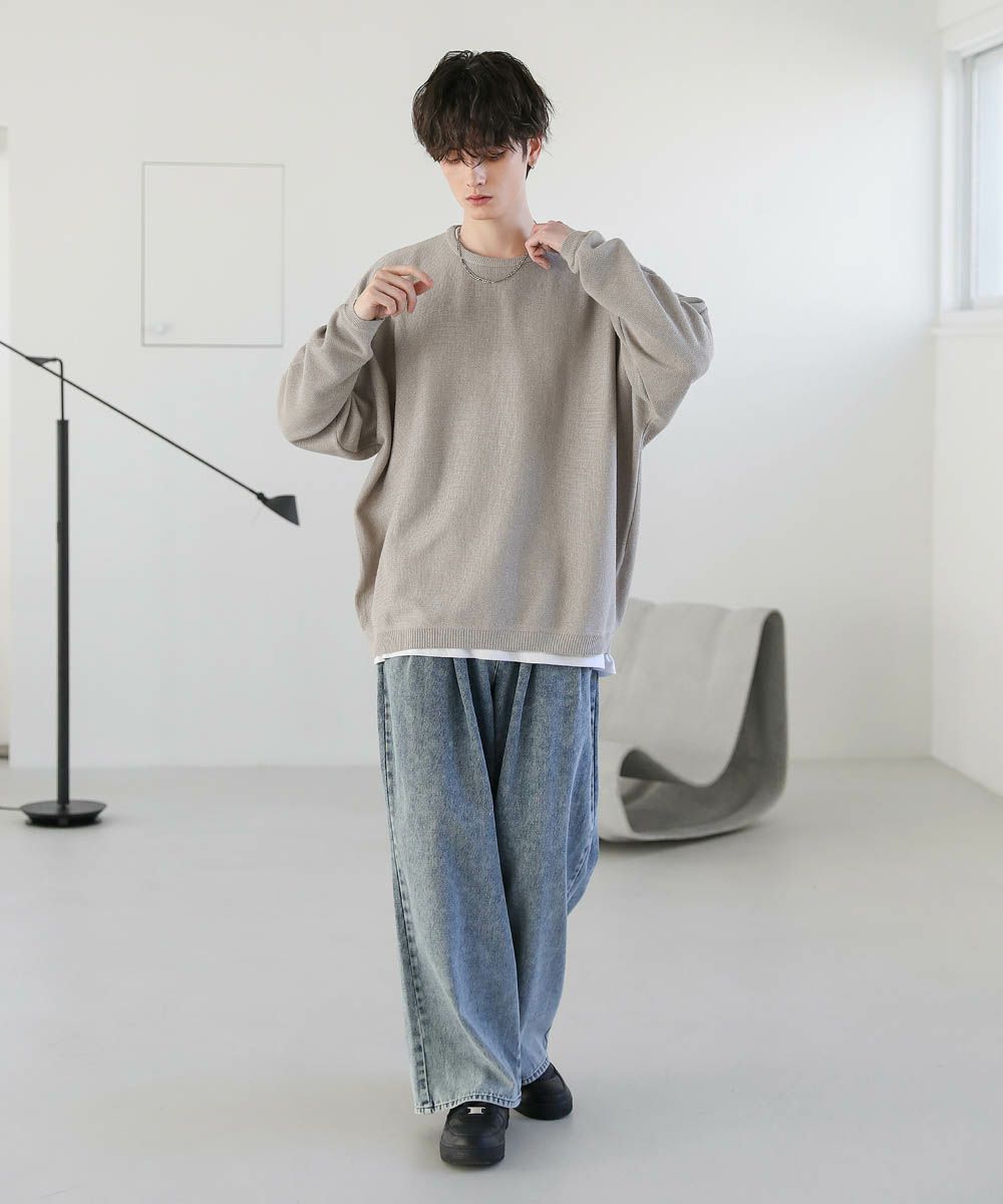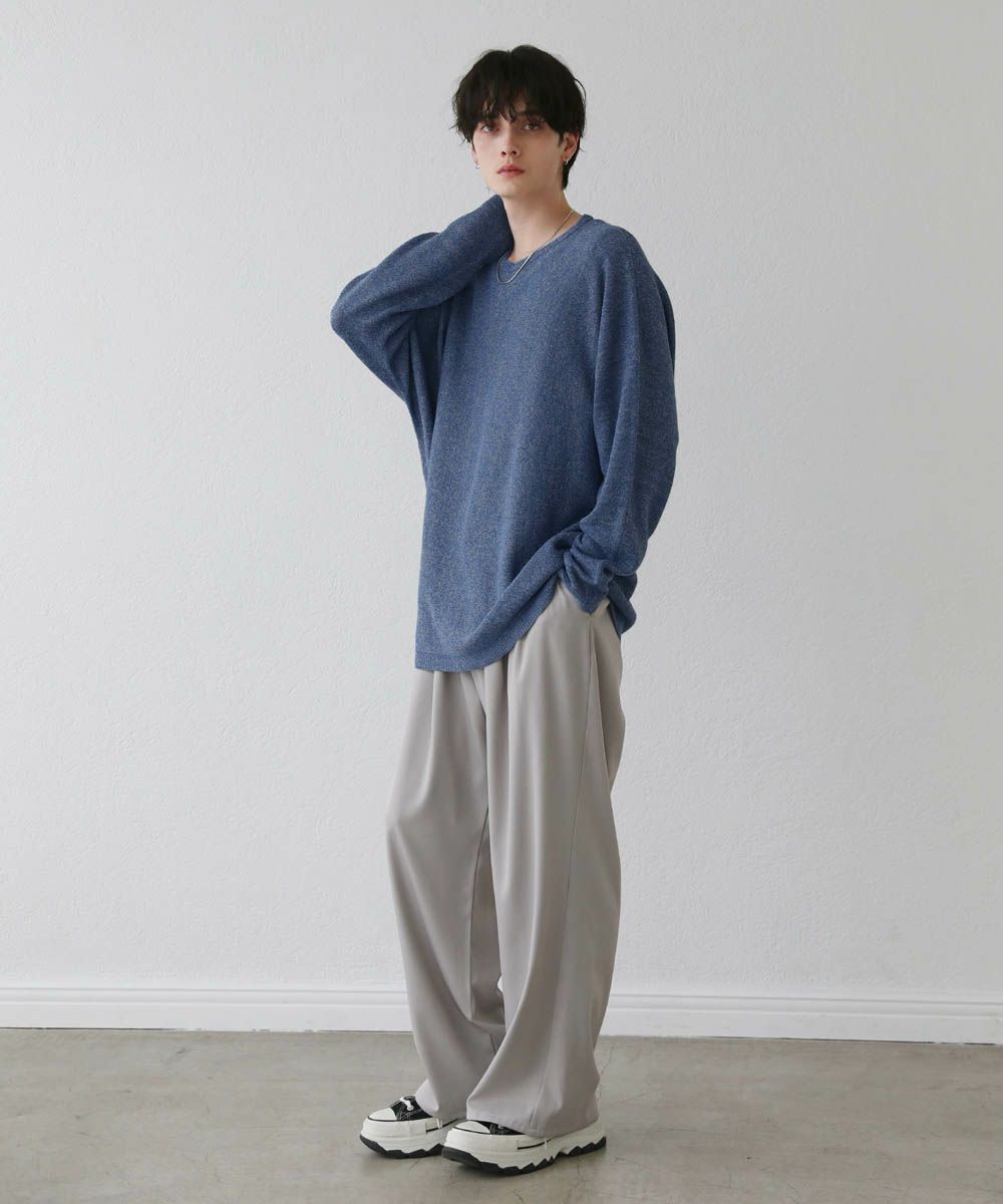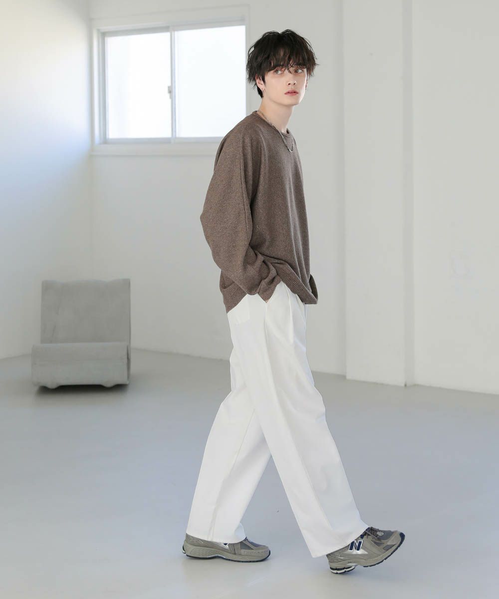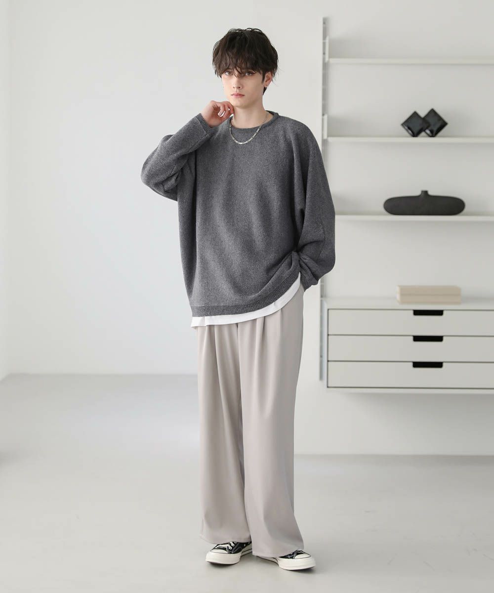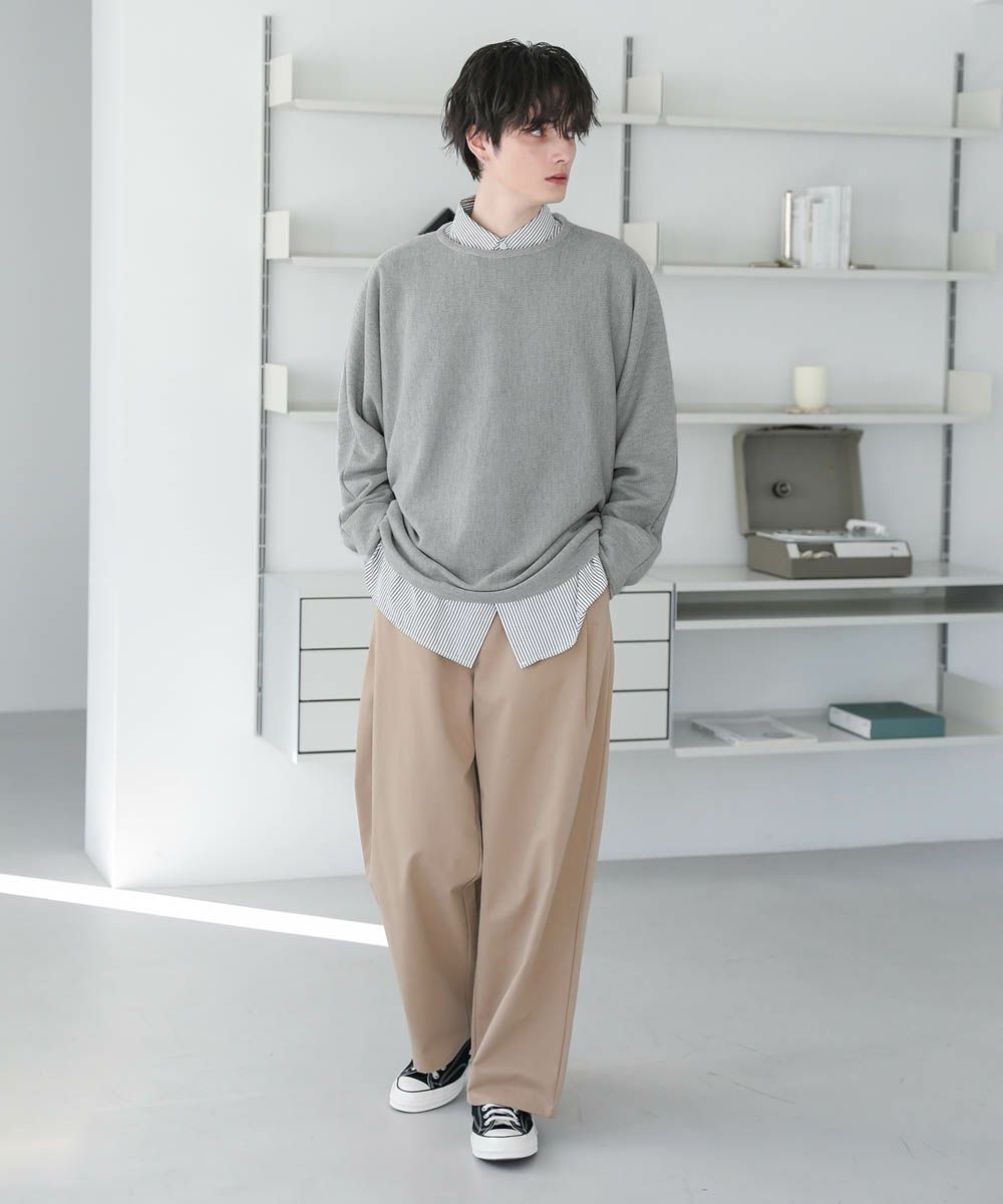 スキニーパンツなど細身のボトムからワイドパンツ、バギーパンツなど太めシルエットのパンツまで、どんなボトムともバランスの取りやすく様々な着こなしを楽しめます。一枚での着用はもちろんのこと、ニットのインナーにシャツやモックネックのカットソーを合わせるのもおすすめです。