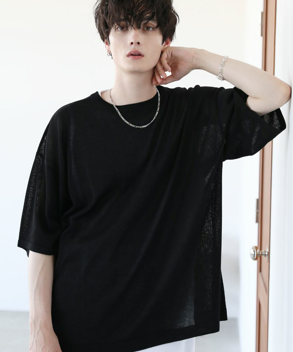 軽やかで涼しいニット編みのプルオーバー。ゆったりとしたシルエットでシアー感が印象的なサマーニット。落ち感のあるドルマンスリーブが柔らかな雰囲気かつこなれたスタイルに。ニット素材なため、Tシャツよりも上品で大人な印象を与えます。ルーズシルエットで1枚で着こなしが決まるアイテムです。
