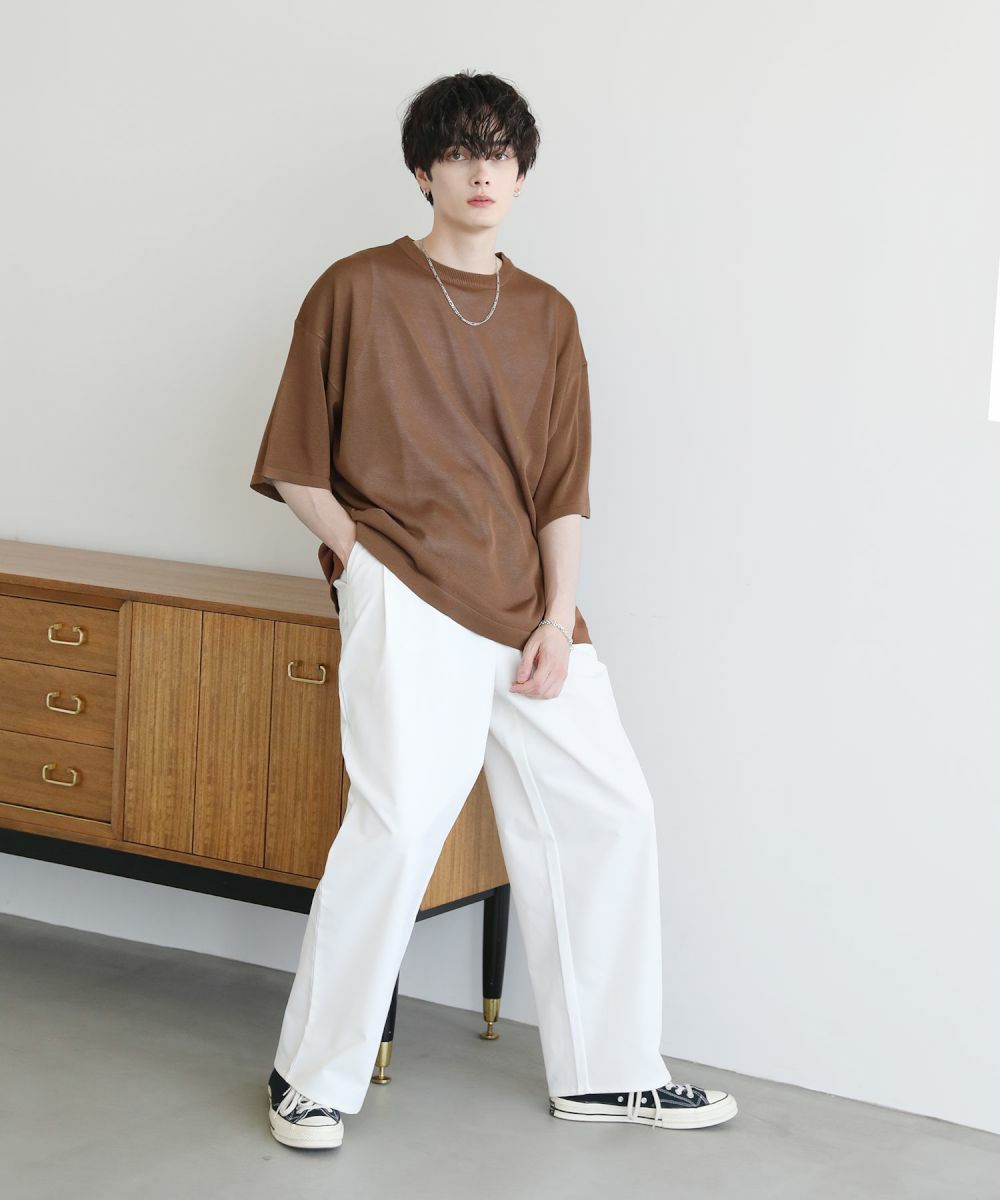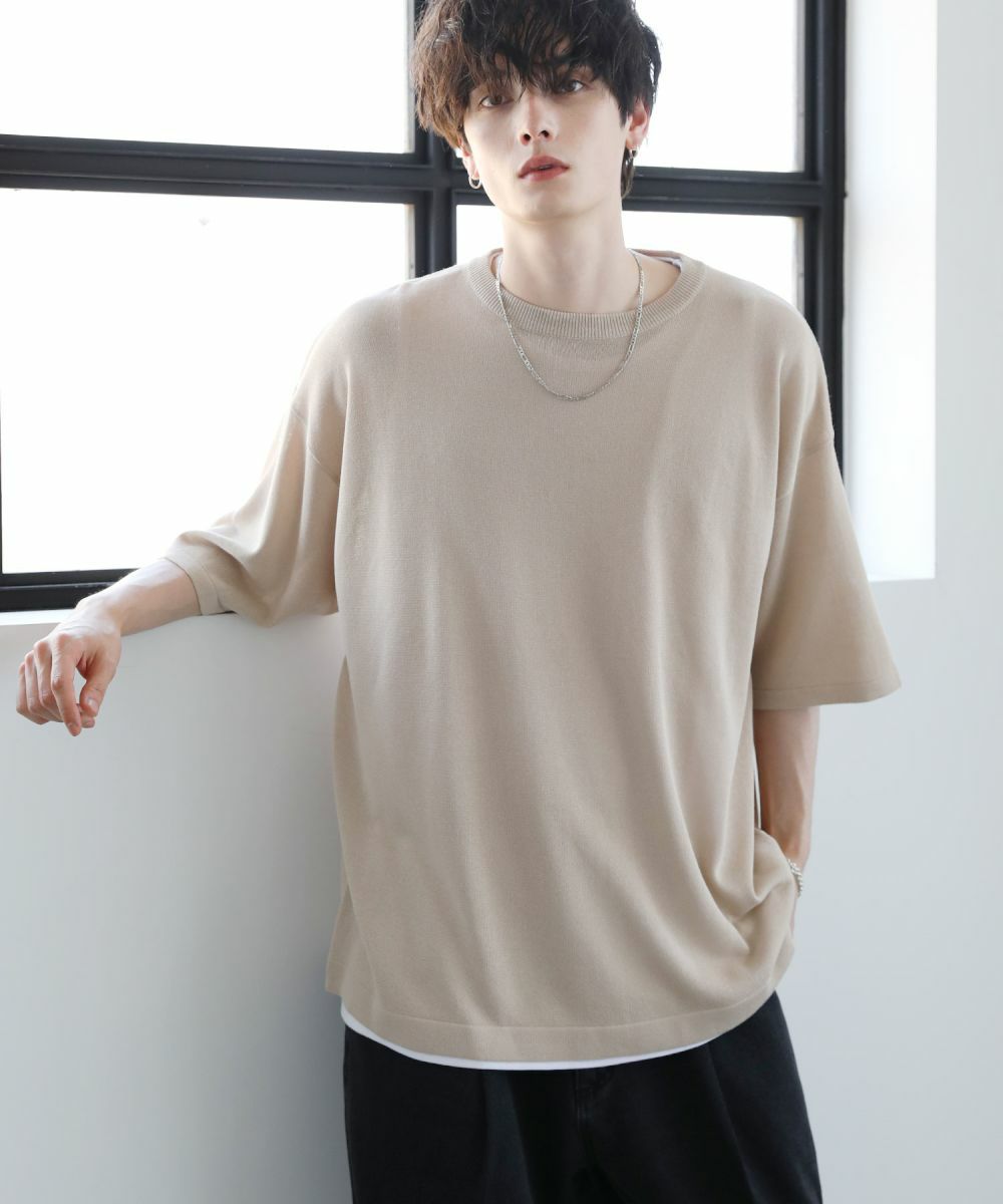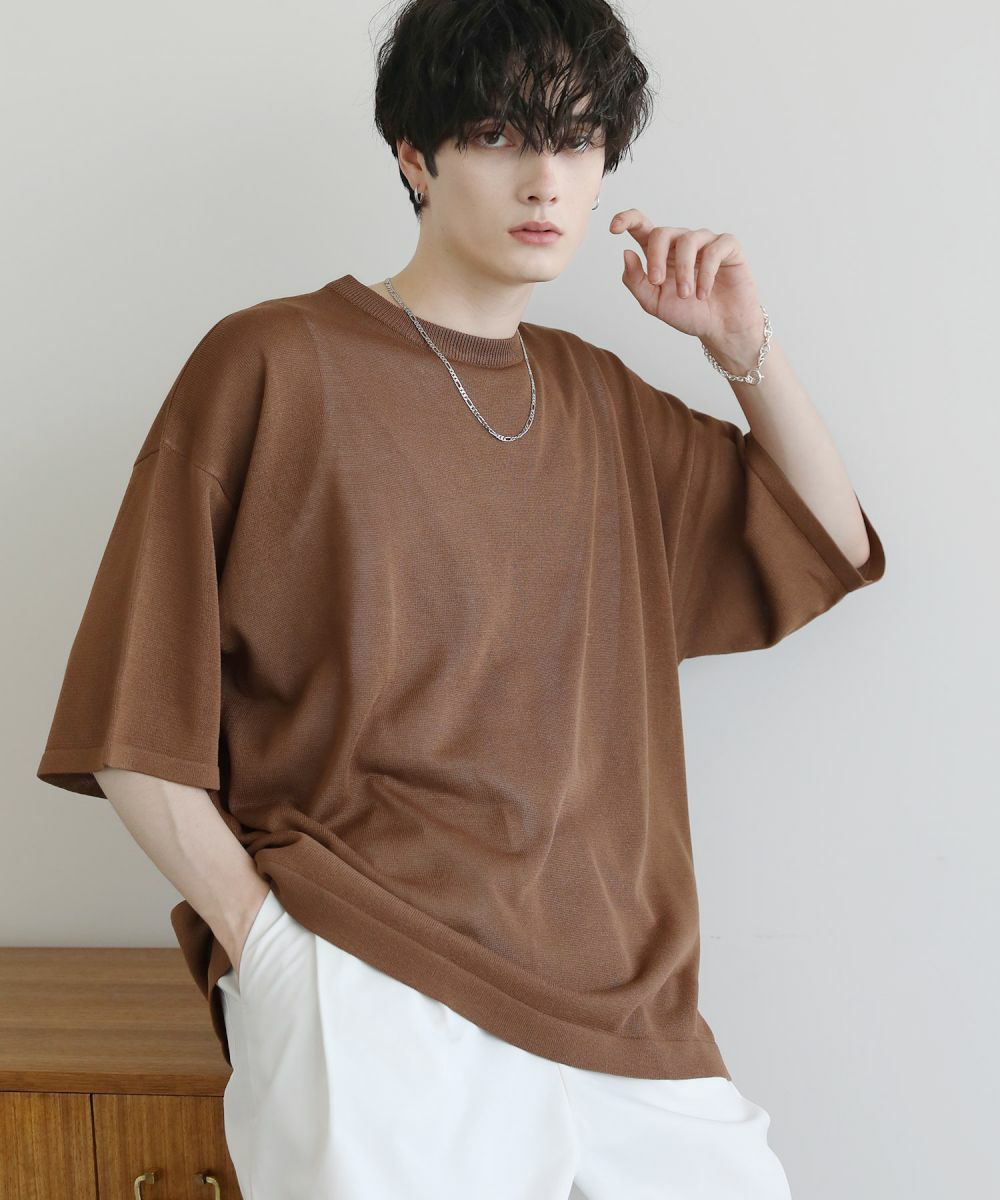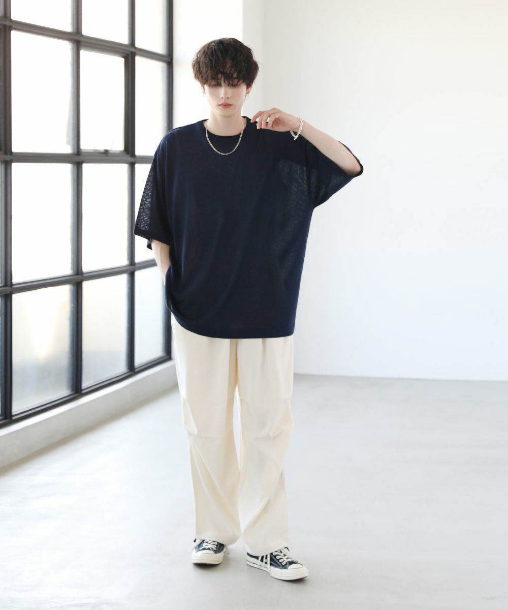 さらさらとした清涼感ある肌触りの接触冷感素材。涼しい着心地で、暑さからのストレスを感じにくくしてくれます。また、ざっくりとした編み地が外からの空気を取り入れてくれるので、汗ばむ季節も通気性が保たれ快適な着心地です。