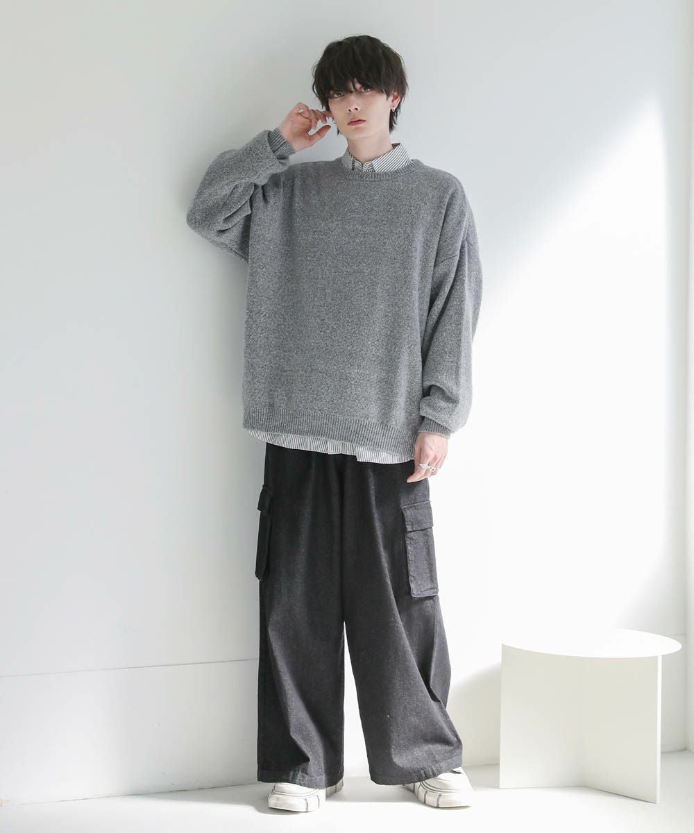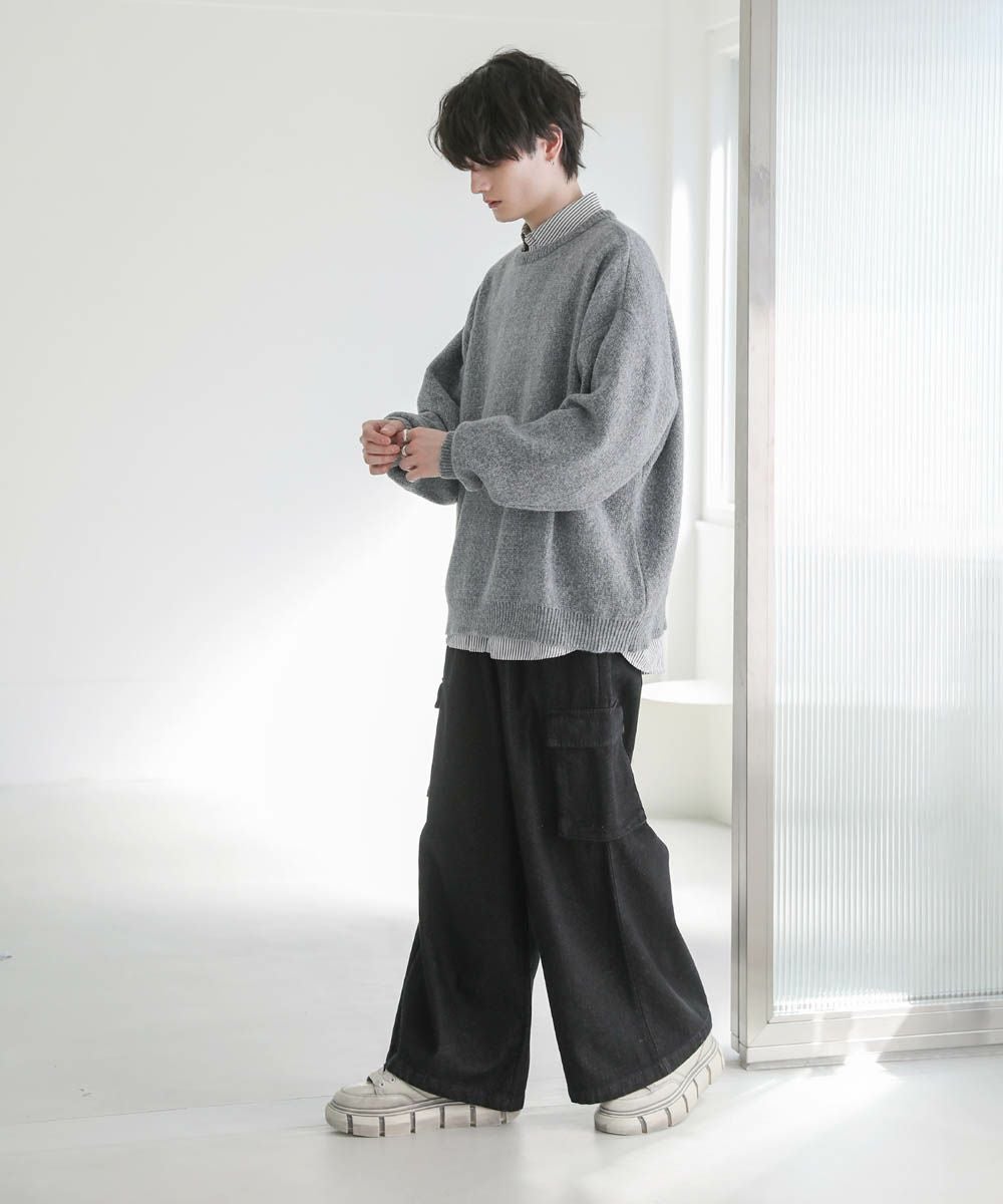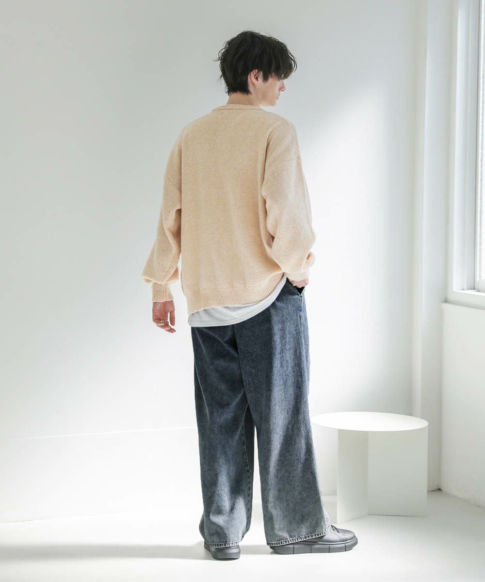ヘビーウェイト裾フリンジワイドデニムパンツ