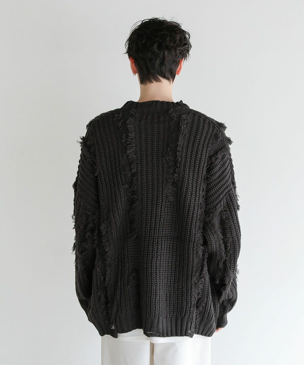 ビッグシルエットダメージフリンジケーブルニット