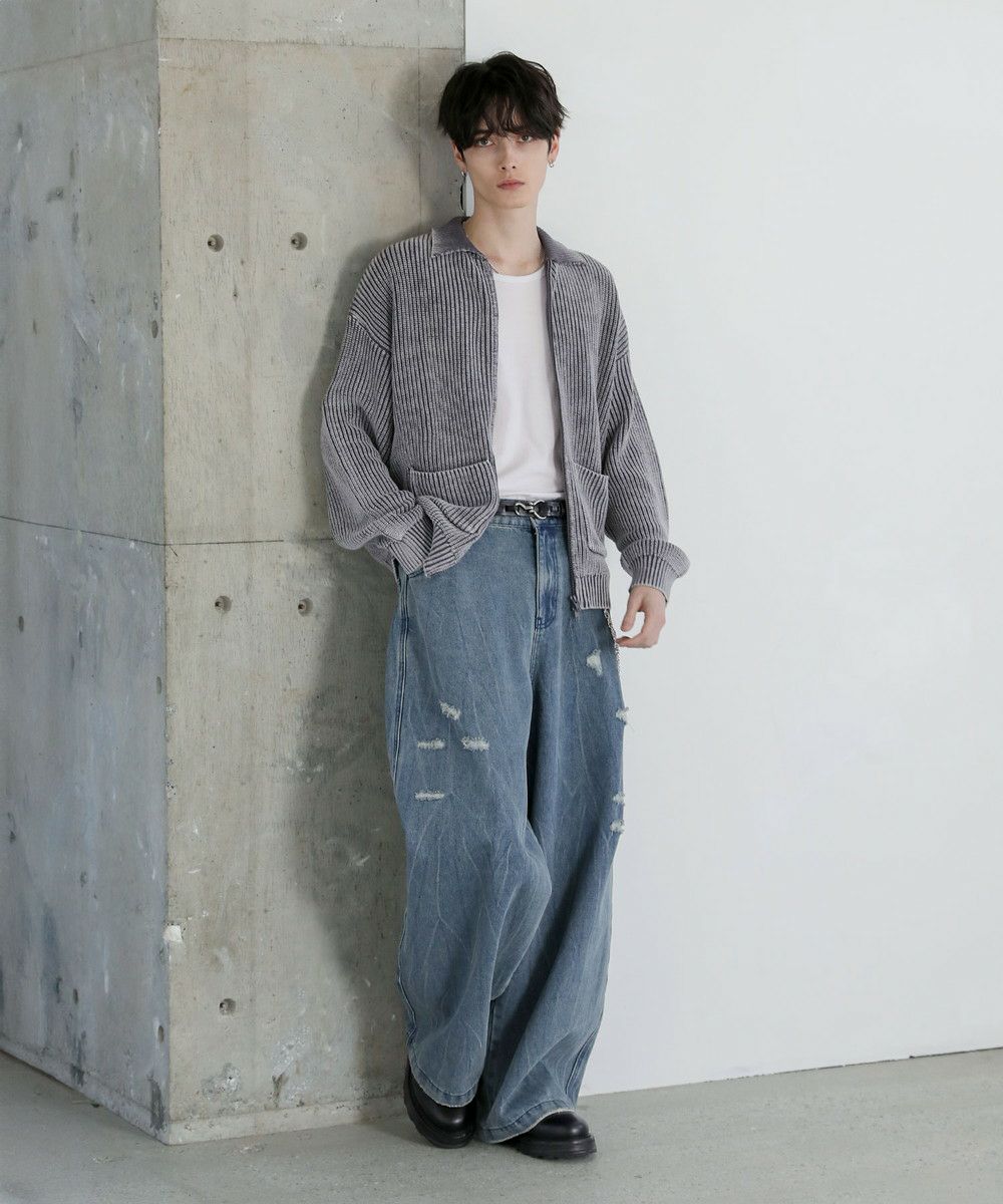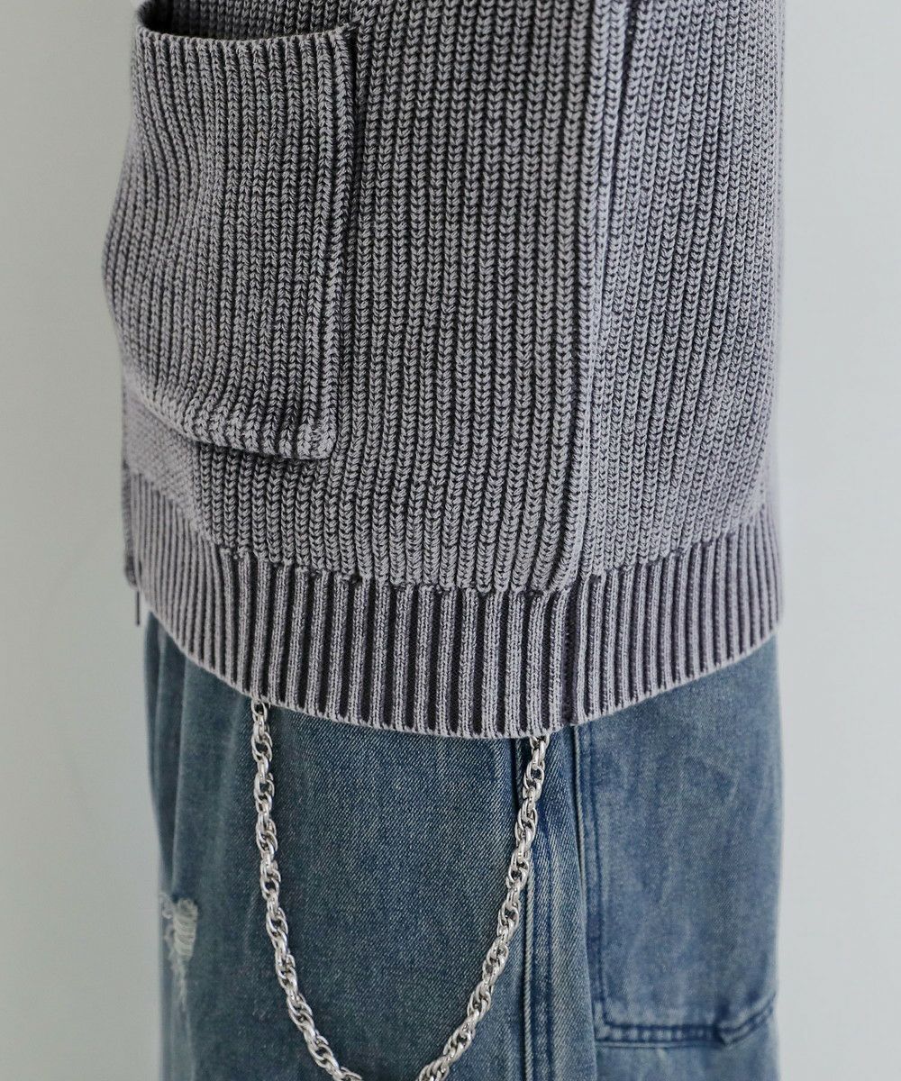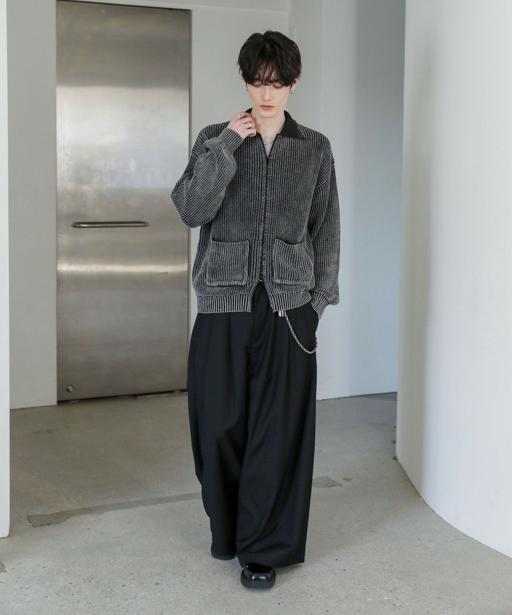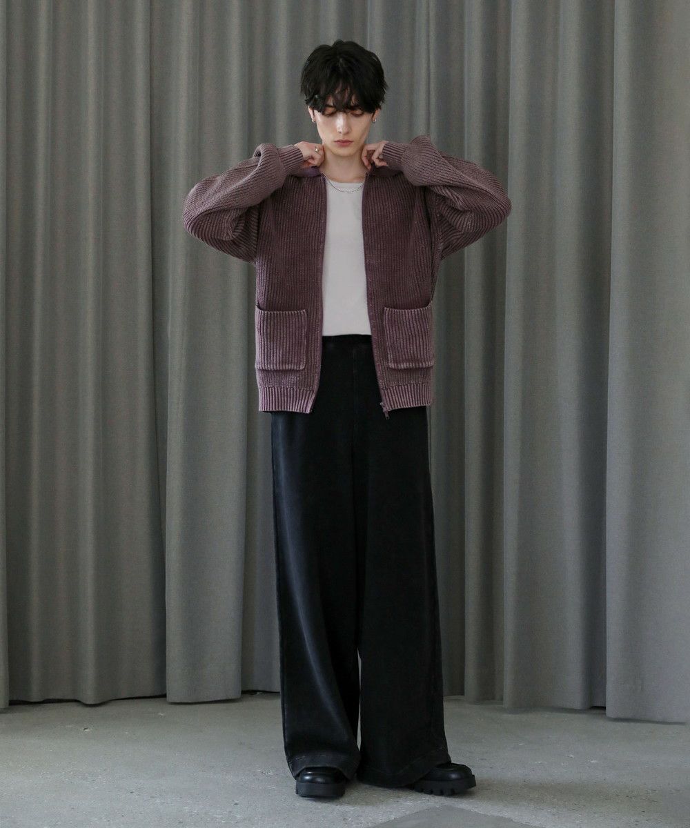 ヴィンテージ感のある風合いが魅力のカーディガン。ピグメント加工により独特の色褪せ感やムラ感を作り、古着のような雰囲気を演出しました。前を閉めればトップスとして、開けて着ればライトアウターとして使える万能アイテム。ダブルジップなので、下を開けてレイヤードスタイルを作るなど自由自在に着こなせます。袖にボリュームを持たせたたまりシルエットや、フロントのポケットなどがコーディネートのアクセントに。裾と袖のリブも太めなのでコーディネートにメリハリをプラスしてくれます。トレンドライクなルーズシルエットで、シンプルなコーディネートでもこなれた雰囲気に仕上げてくれる一着です。