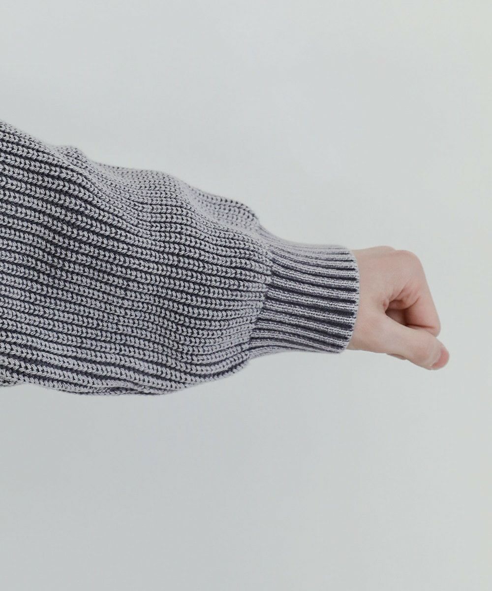 ローゲージの畦編みニットで、程よい膨らみと暖かみのある生地感。綿100%なのでチクチク感がなく柔らかな肌触りです。