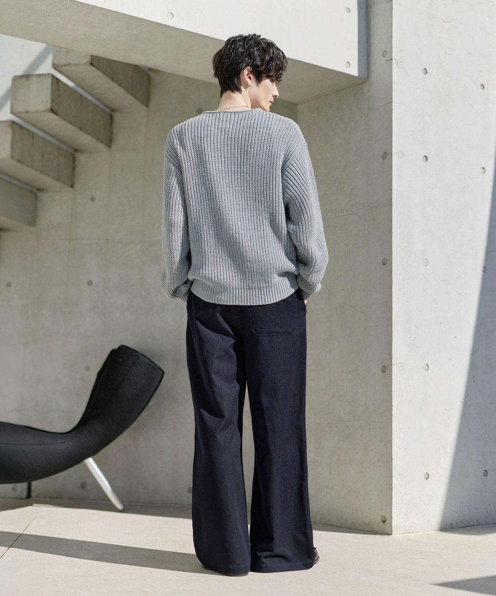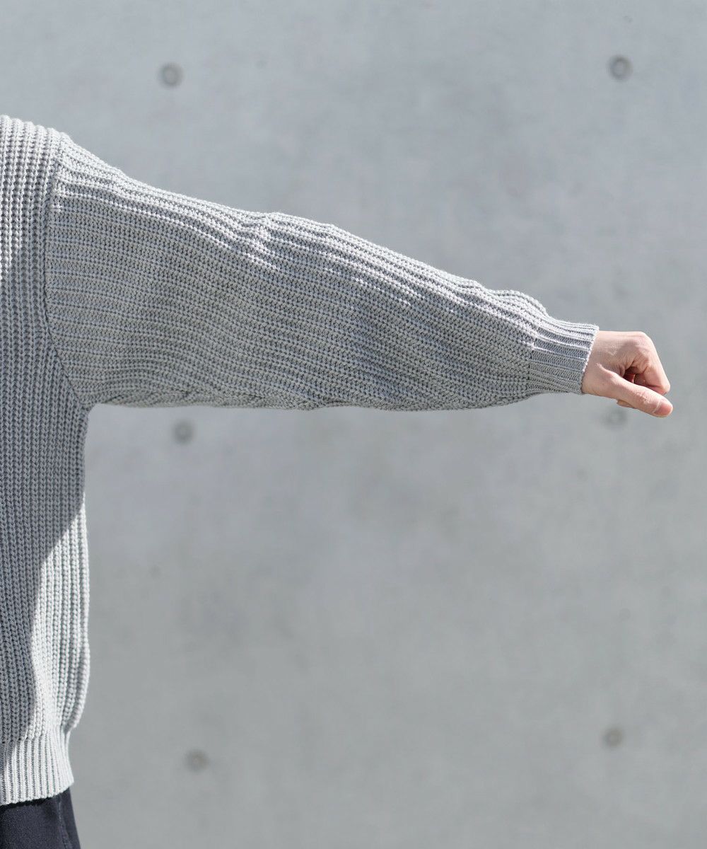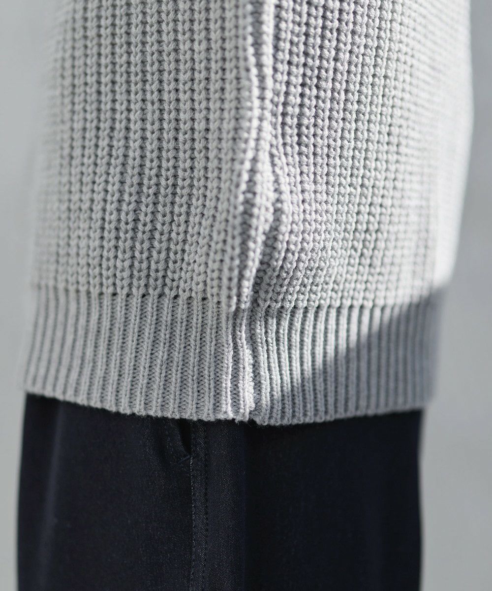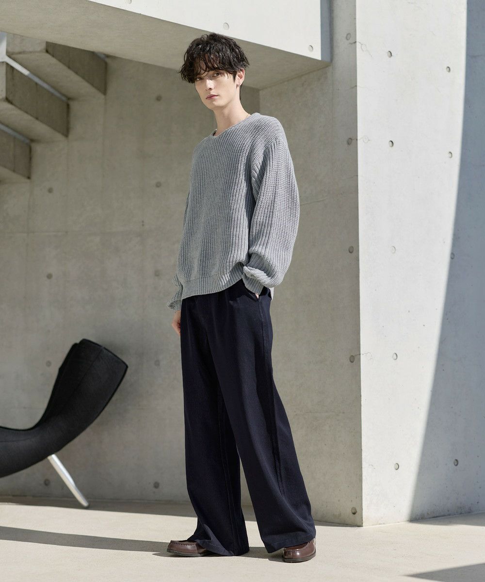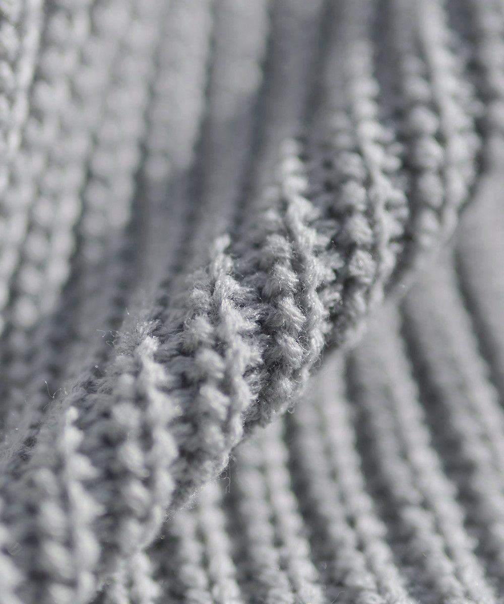 ご自宅でも気軽にお洗濯できるアクリルニットを使用。縦方向に均一に仕上げられた畦編みで、立体的な表情を作り出します。繊維の強度が高いので毛玉になりにくく、着心地も軽いです。