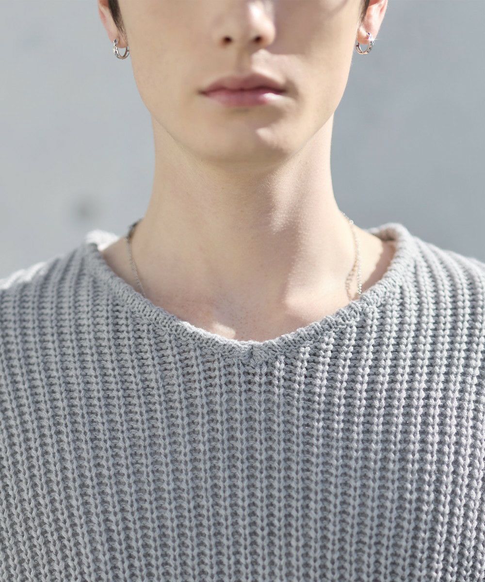 畦編み特有のざっくりとした凹凸が魅力的なニット。キレイめにもカジュアルにもテイストを選ばずに活躍する頼もしい一枚です。今季らしい短めの丈感に、ゆったりとした身幅とアームホール。
