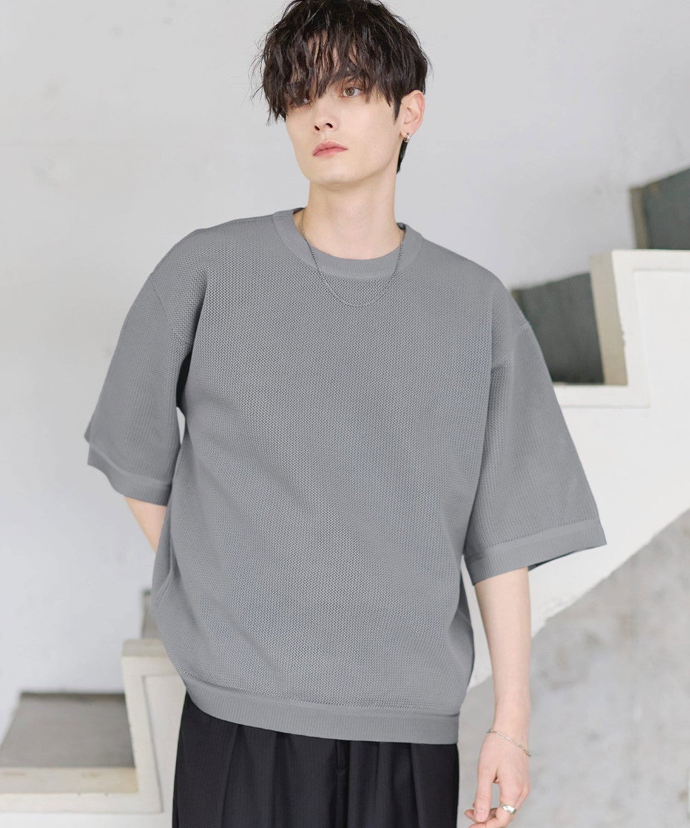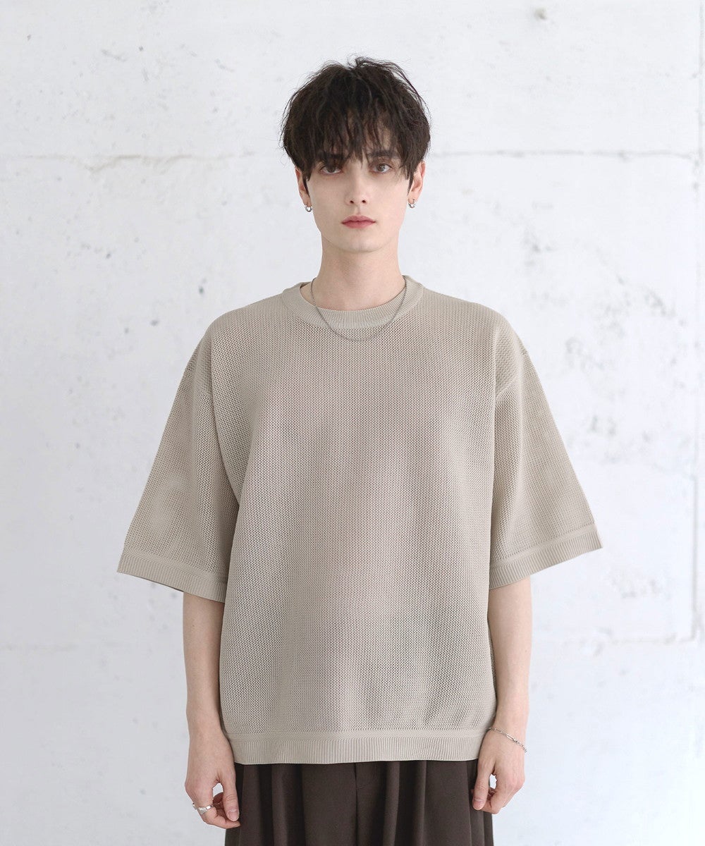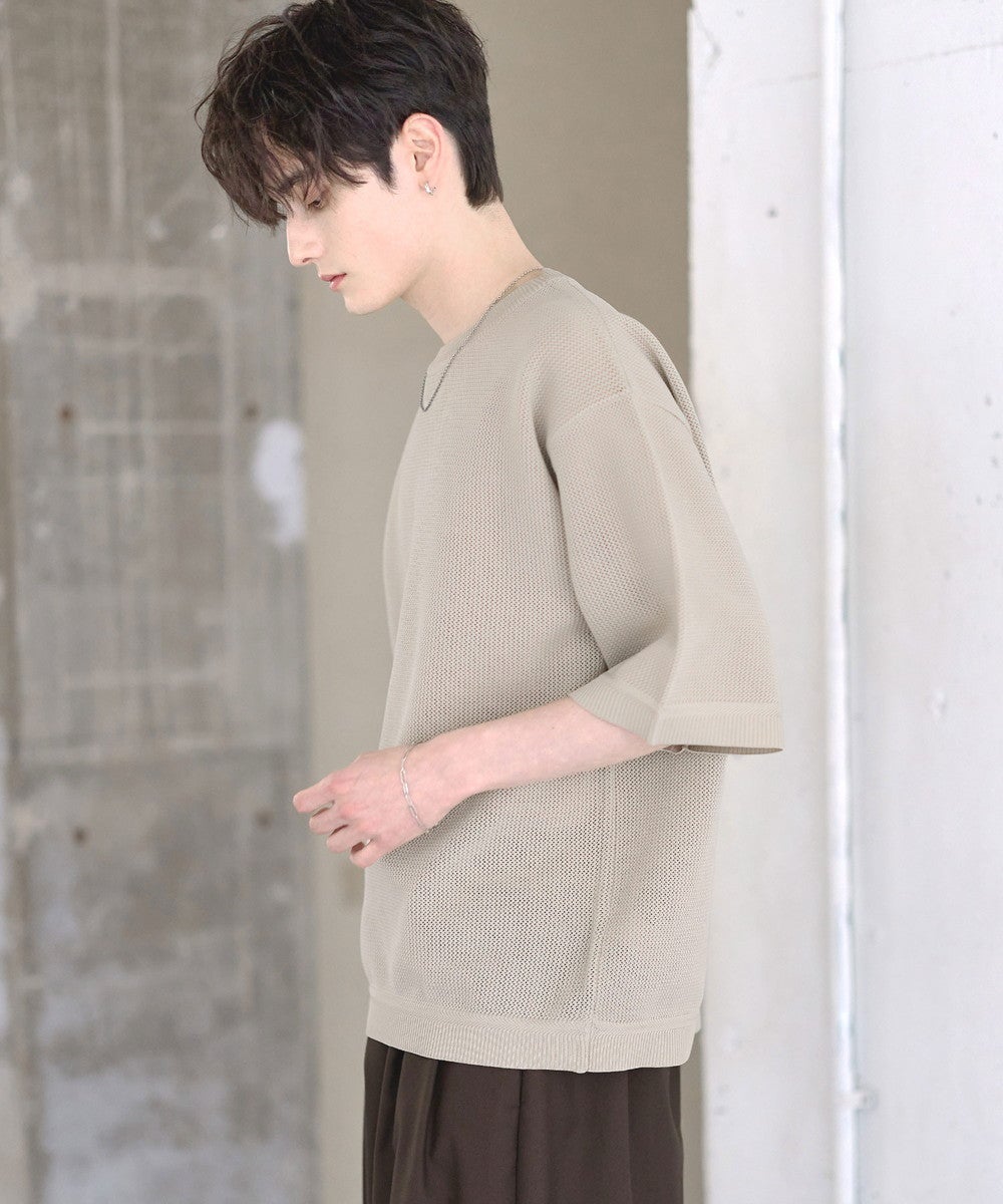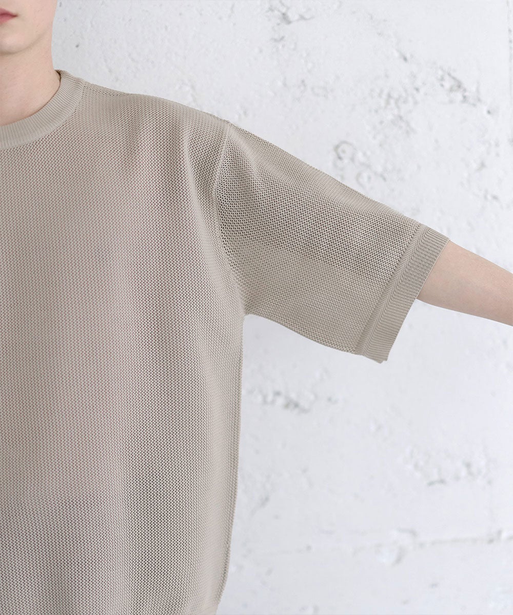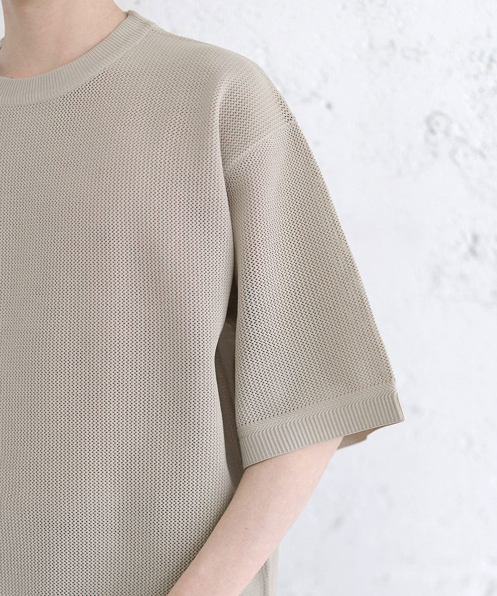 メッシュ編みで仕上げた、これからの季節にぴったりな半袖ニット。ざっくりとした編地で程よい透け感があり、夏らしい爽やかな印象を演出します。
