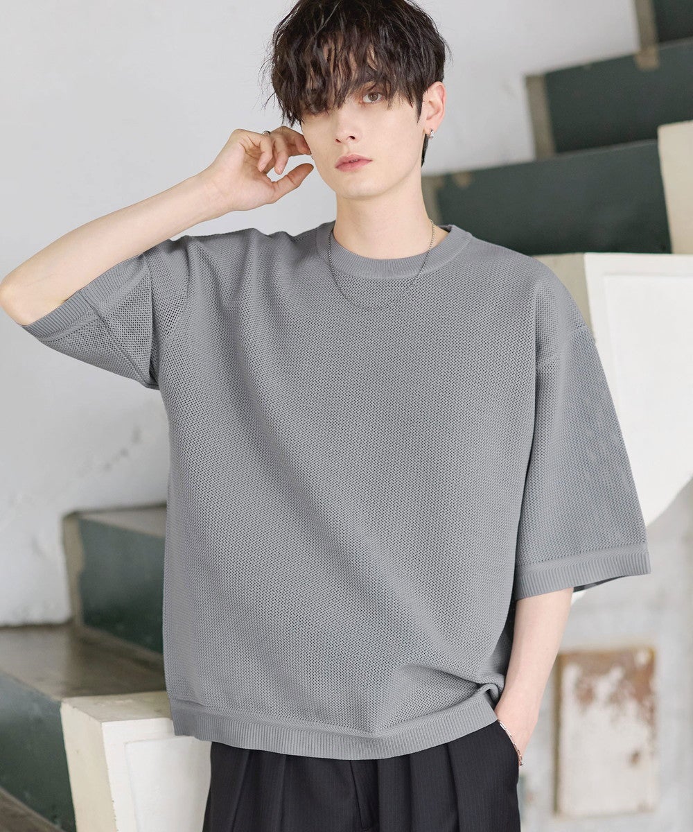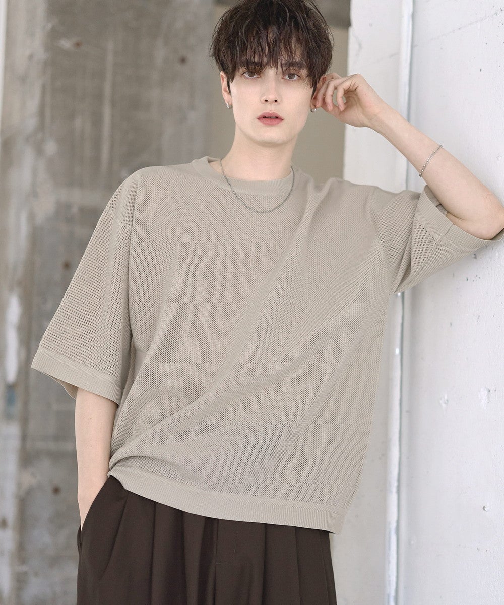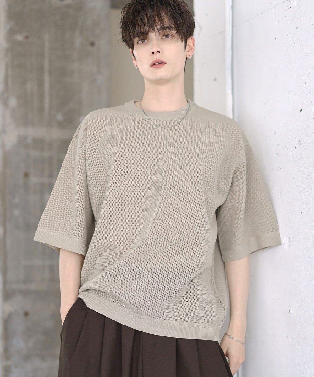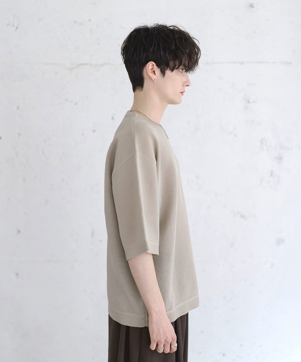 メッシュ編みで仕上げた、これからの季節にぴったりな半袖ニット。ざっくりとした編地で程よい透け感があり、夏らしい爽やかな印象を演出します。