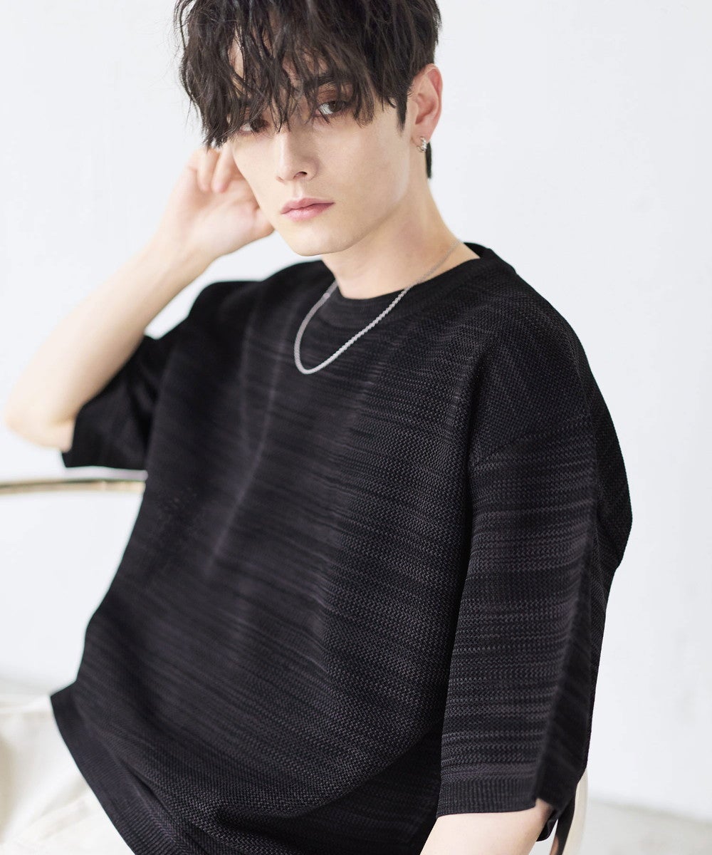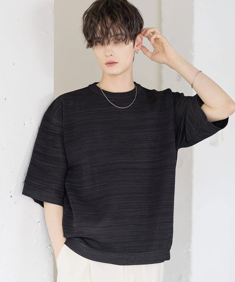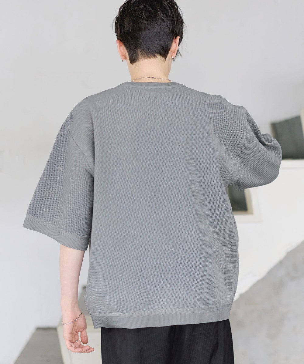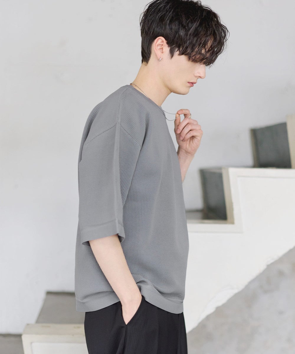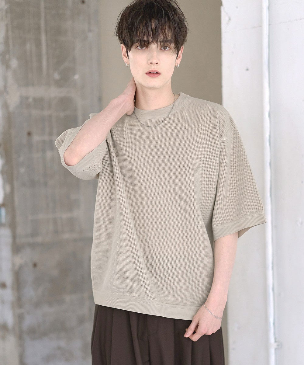 メッシュ編みで仕上げた、これからの季節にぴったりな半袖ニット。ざっくりとした編地で程よい透け感があり、夏らしい爽やかな印象を演出します。