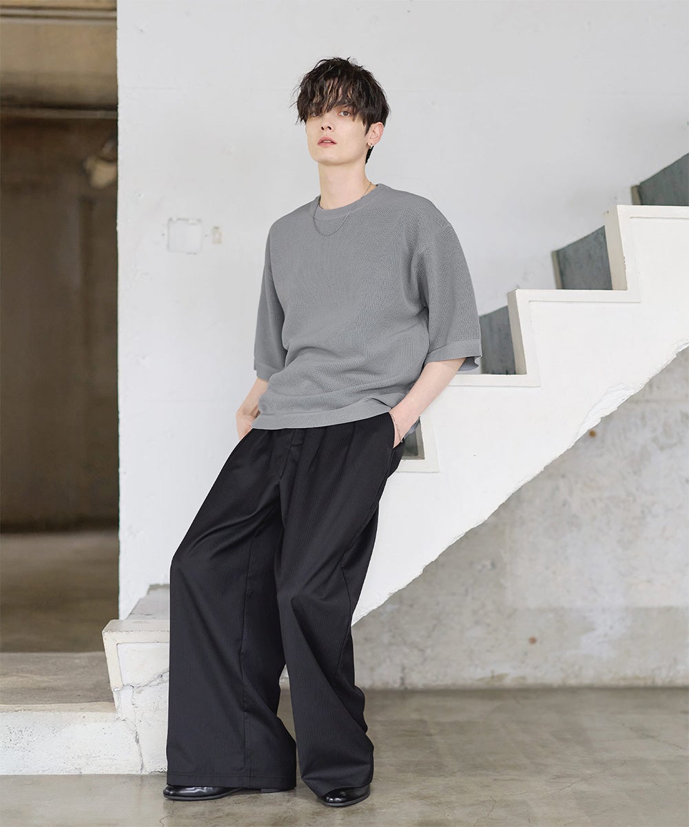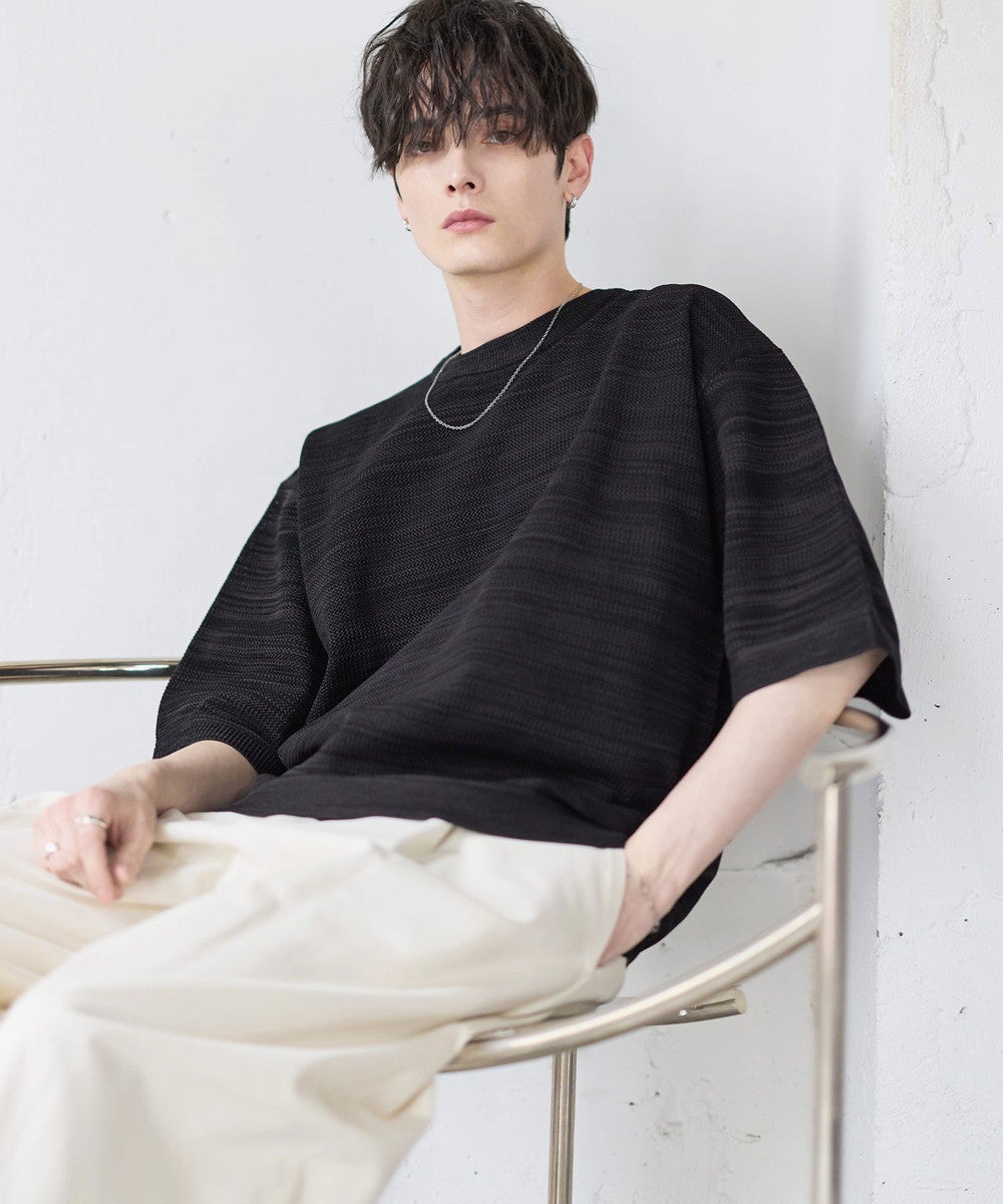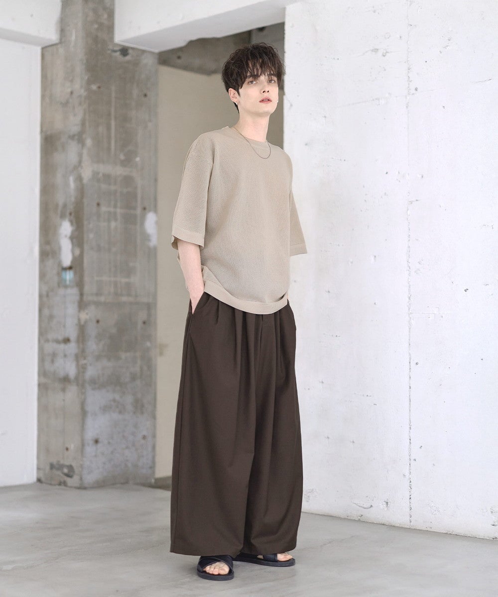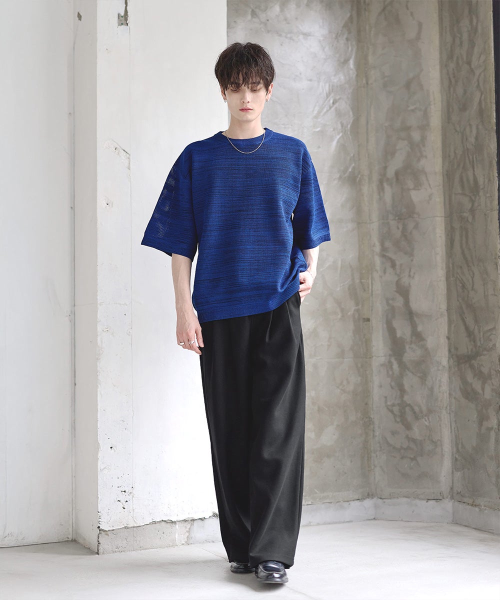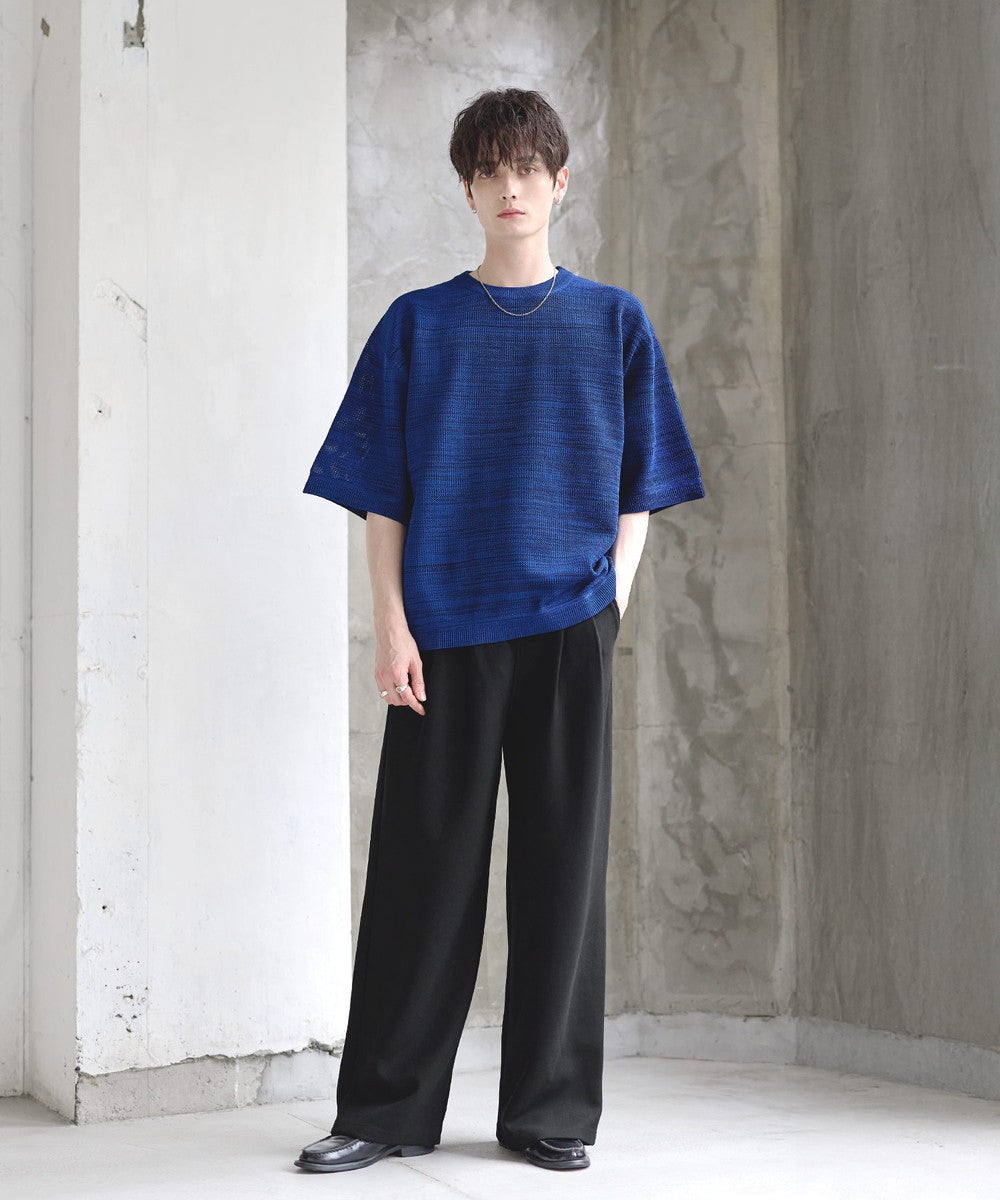 メッシュ編みで仕上げた、これからの季節にぴったりな半袖ニット。ざっくりとした編地で程よい透け感があり、夏らしい爽やかな印象を演出します。
