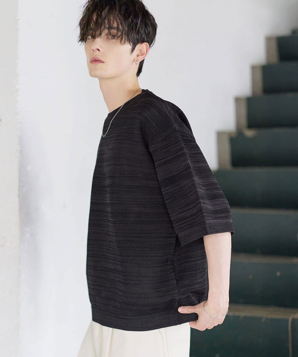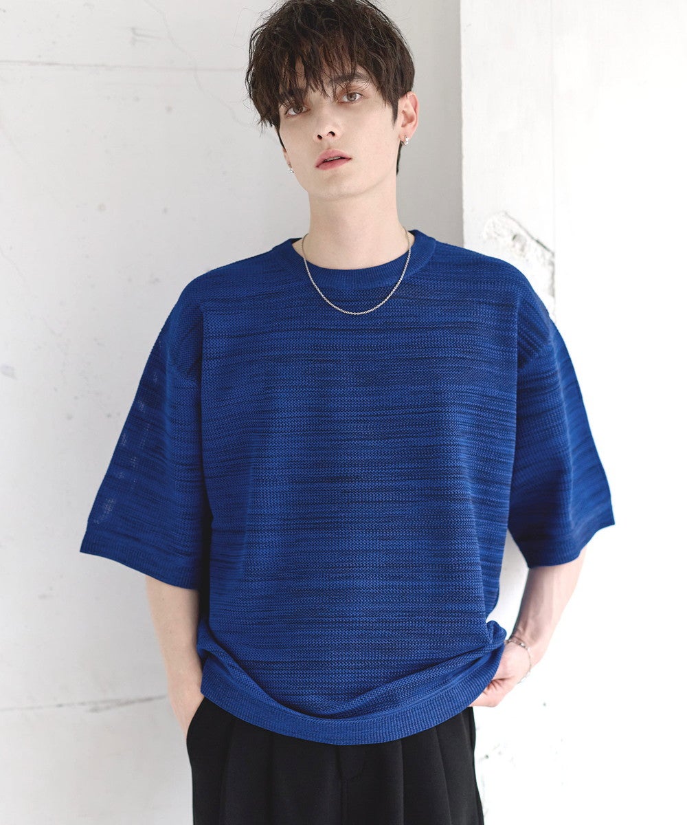 【速乾/イージーケア】スポンディッシュメッシュシアー半袖ニット
