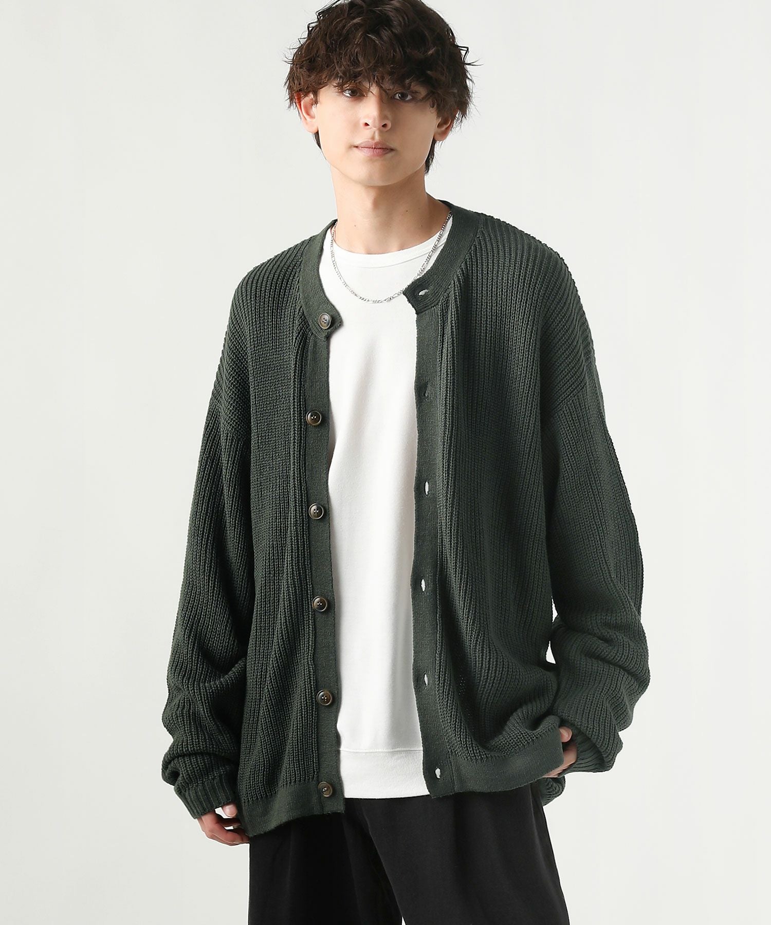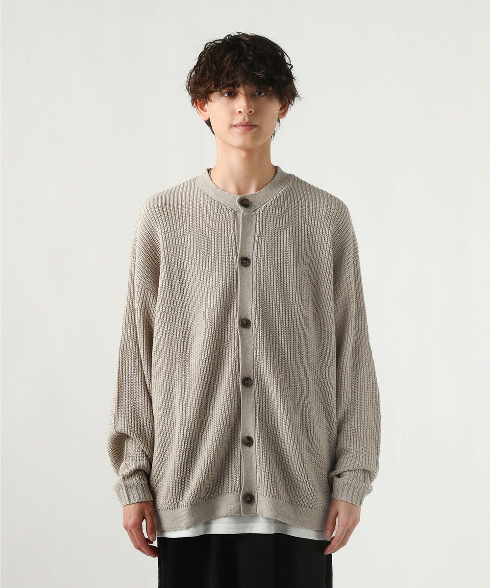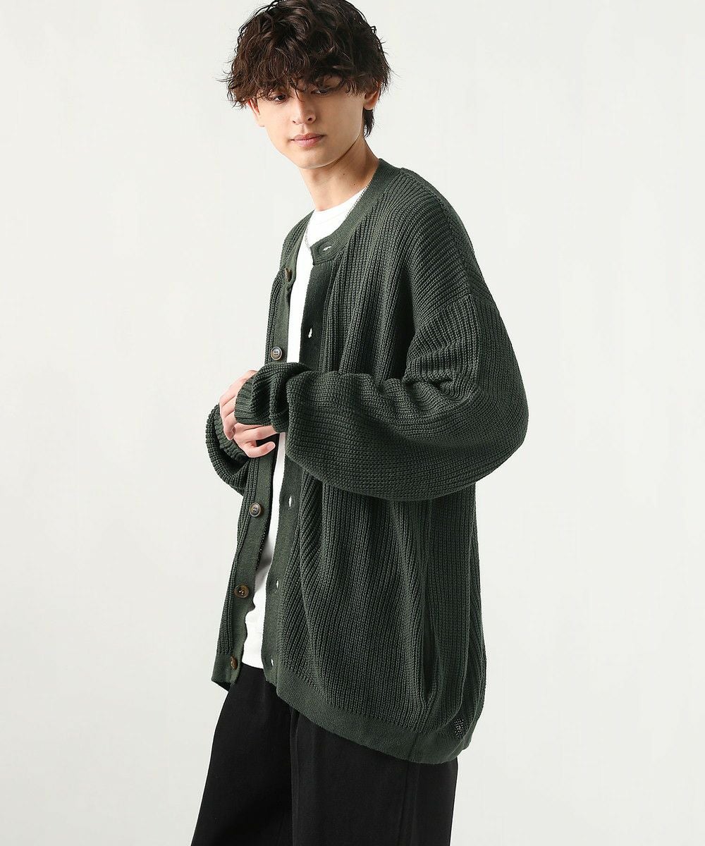 ローゲージで程よい凹凸のある片畦編みが特長のニットカーディガン。ゆったりとした身幅にドロップショルダーのデザイン、ヒップまでかかる長めの丈感など、リラックス感のあるシルエットがコーディネートに抜け感をプラスします。程よい厚みの生地なので、秋口や春先はライトアウター感覚で、真冬はコートの下にインナー使いとして、ロングシーズン活躍するアイテム。カラーはベーシックなブラック、ベージュ系に、落ち着いた色味のオリーブ、サックスブルーの4色展開です。