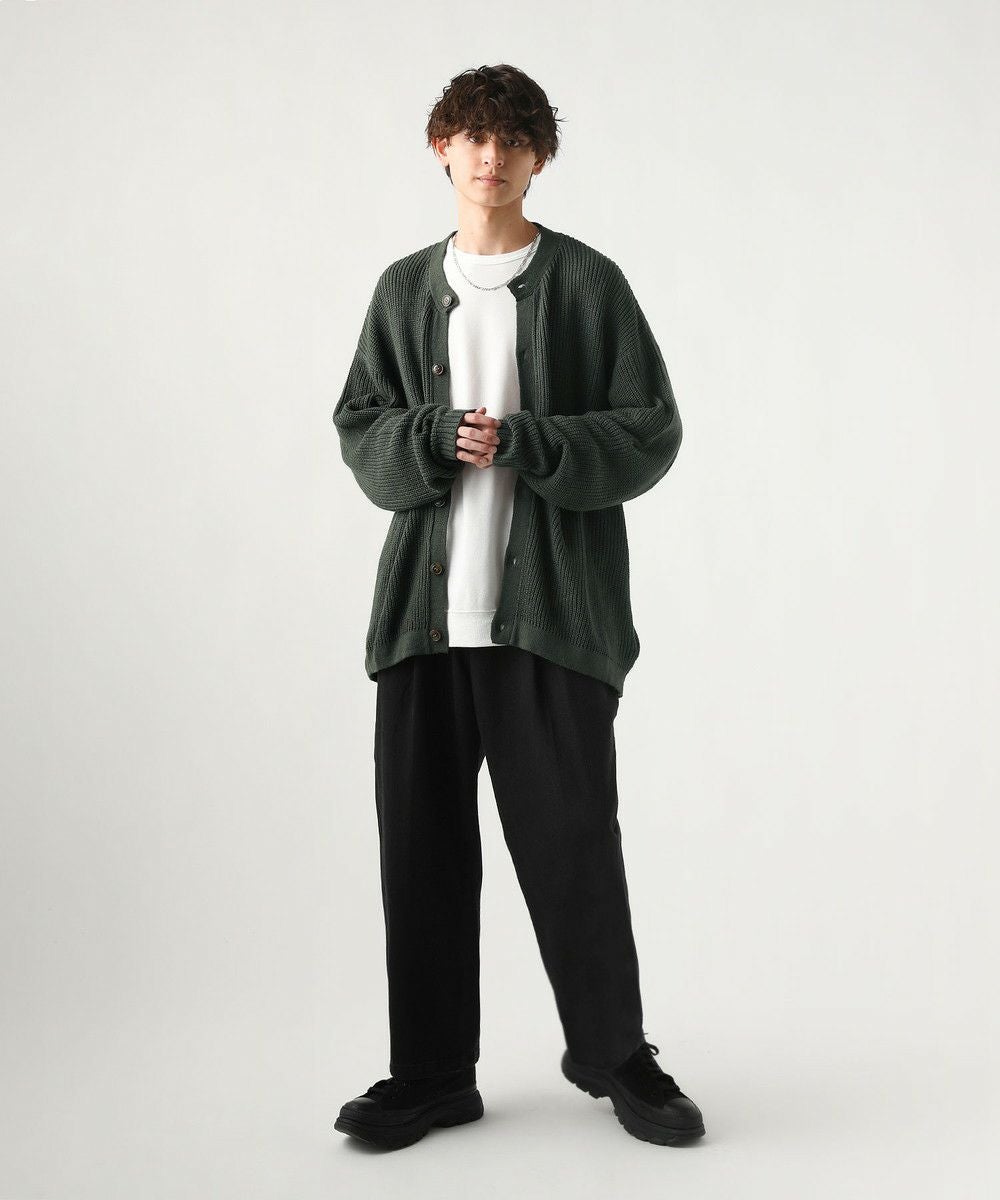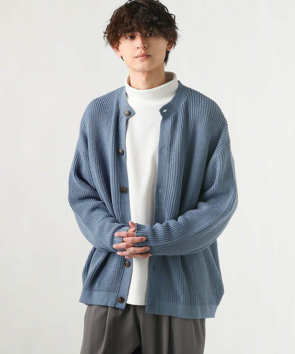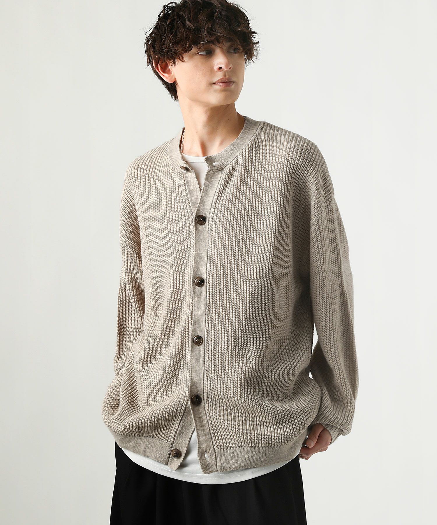 ローゲージで程よい凹凸のある片畦編みが特長のニットカーディガン。ゆったりとした身幅にドロップショルダーのデザイン、ヒップまでかかる長めの丈感など、リラックス感のあるシルエットがコーディネートに抜け感をプラスします。程よい厚みの生地なので、秋口や春先はライトアウター感覚で、真冬はコートの下にインナー使いとして、ロングシーズン活躍するアイテム。カラーはベーシックなブラック、ベージュ系に、落ち着いた色味のオリーブ、サックスブルーの4色展開です。