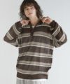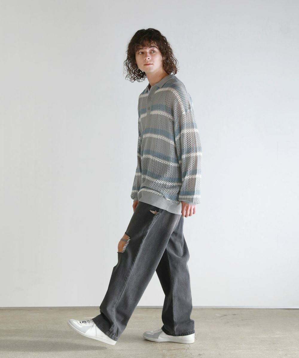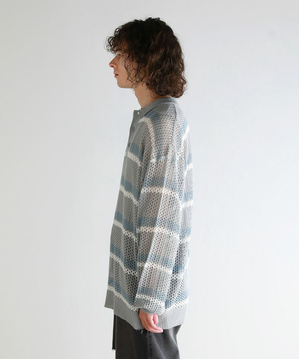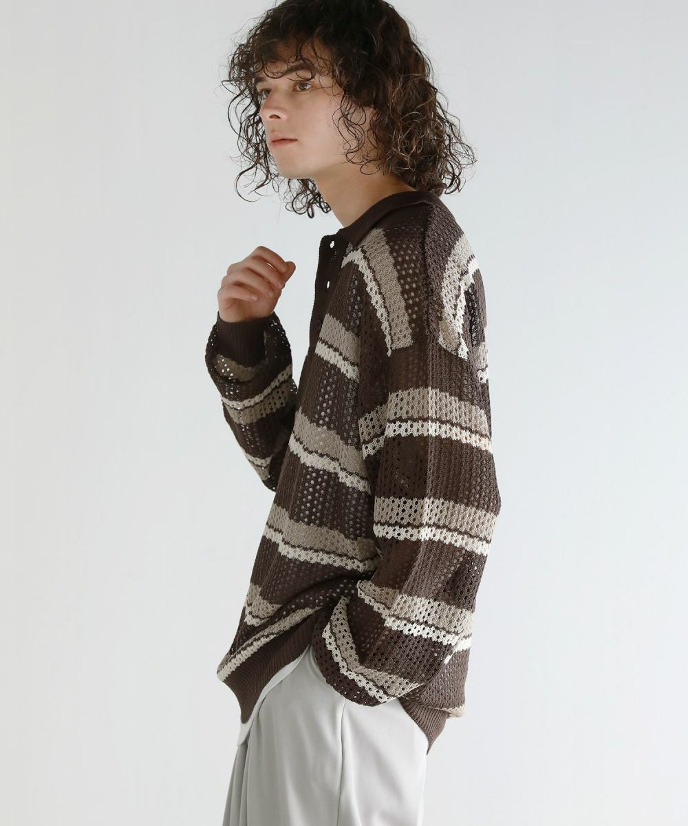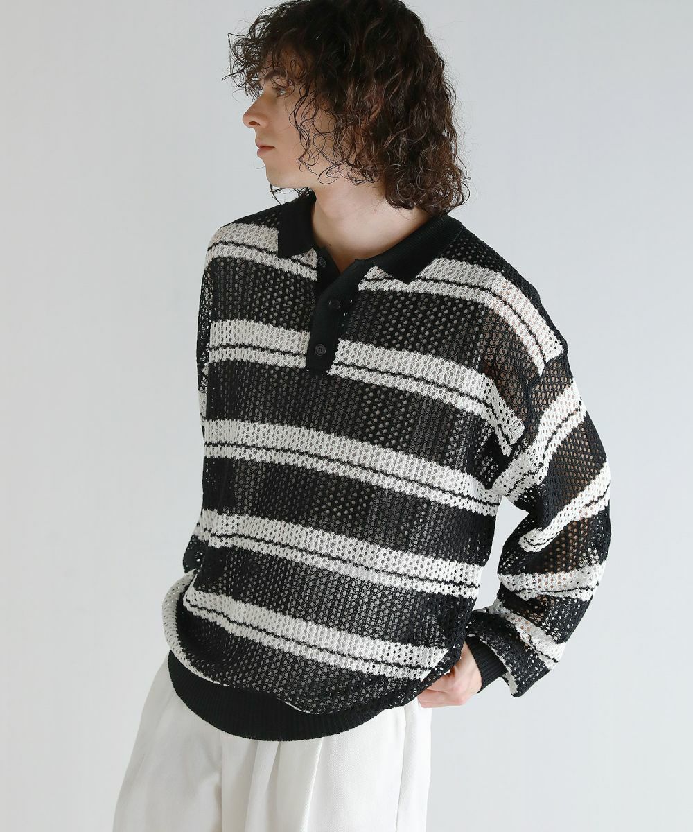 Buyer's Select/メッシュ配色ボーダーニット長袖ポロシャツ
