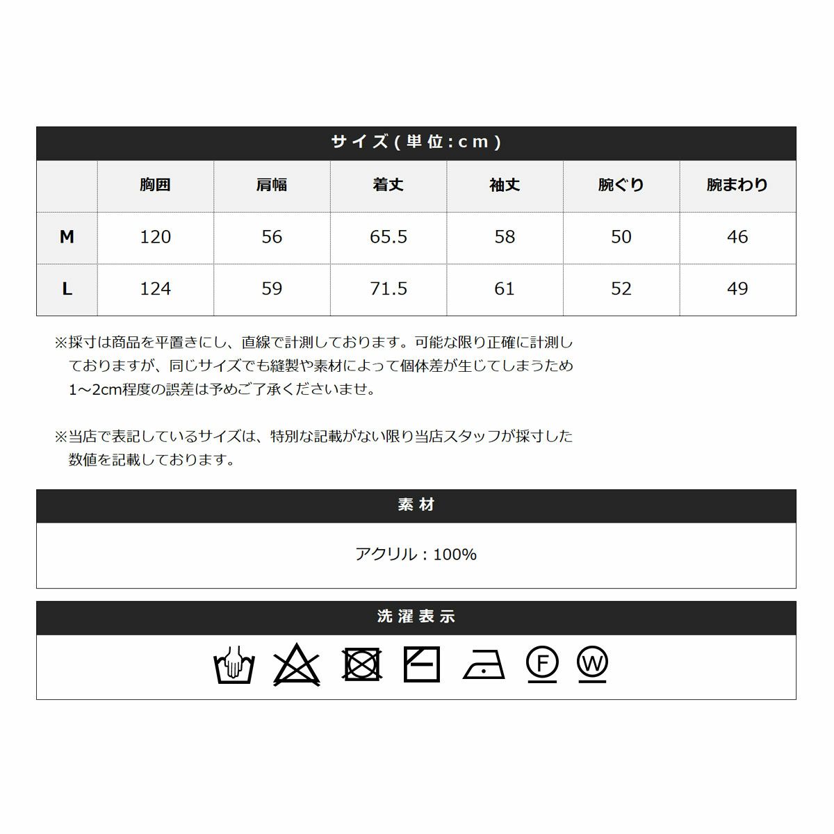 ※商品特性、縫製や素材により同サイズでも、若干の誤差が生じてしまうことを予めご了承ください。