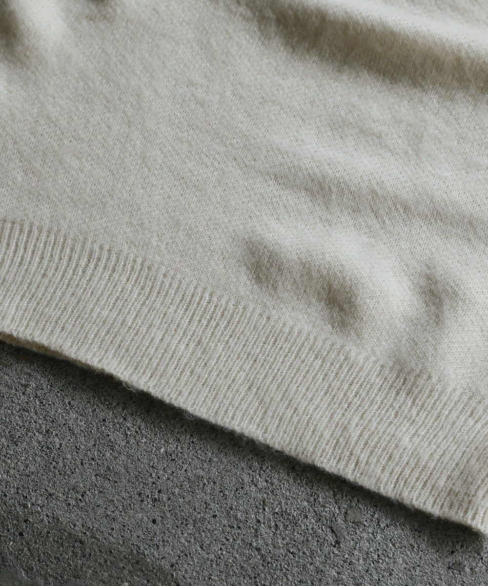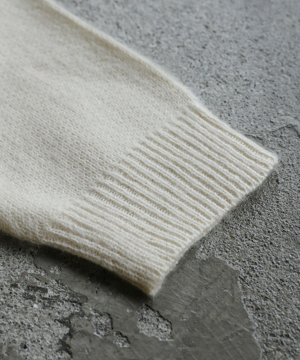 ふわっとしたタッチのモヘアニット素材を使用。アクリル素材なのでチクチクしにくい、優しい肌触りのアイテムです。
