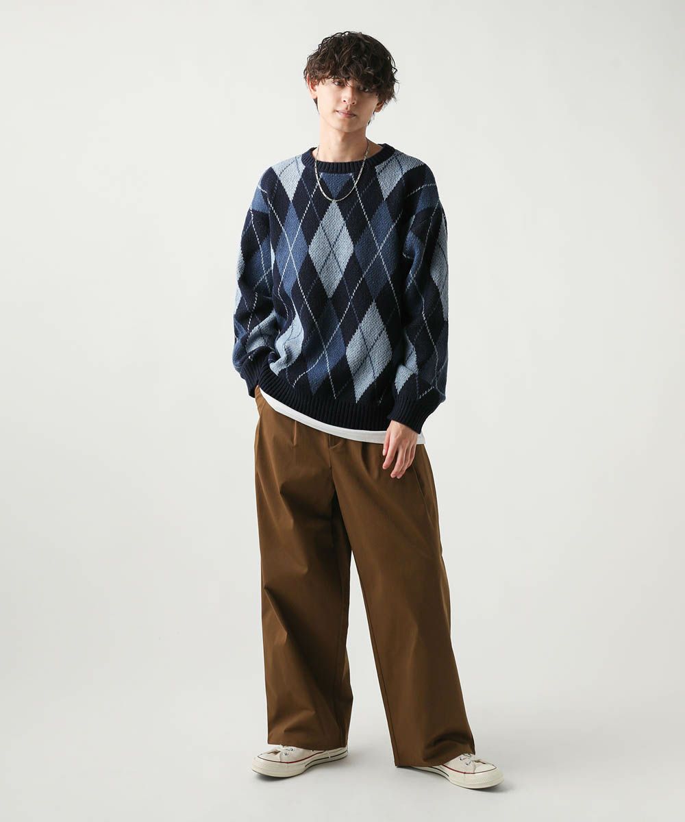クロスチェック柄オーバーサイズクルーネックニット長袖