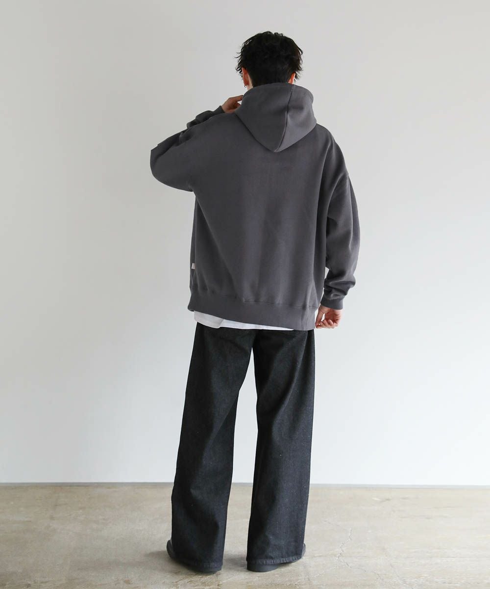 ふんわりとした裏起毛生地を用いたジップパーカーです。ゆとりのあるビッグシルエットと立体感のあるシルエットが魅力です。素材には、アメリカ産の上質なコットンを使用した、しっかりと厚みのあるヘビーウェイト生地を採用。程よくハリがあるのでフードの立ちが良く、着用時のシルエットを綺麗に保ってくれます。フロントのカンガルーポケットが実用性とコーディネートのアクセントに。ベーシックで着回しのきく万能なパーカーは、秋から春にかけて着回しに大活躍してくれます。