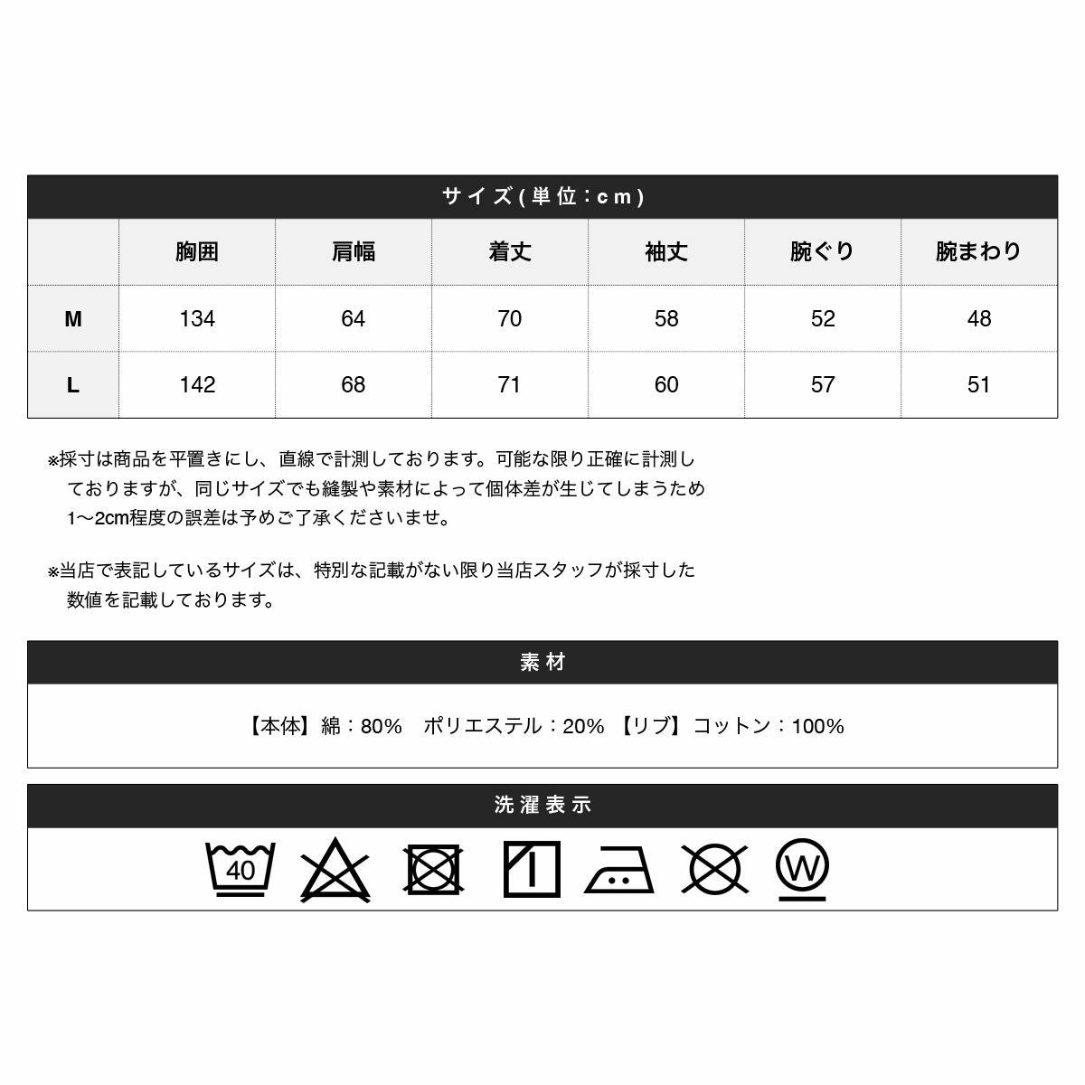 【本体】綿:80% ポリエステル:20% 【リブ】コットン:100%