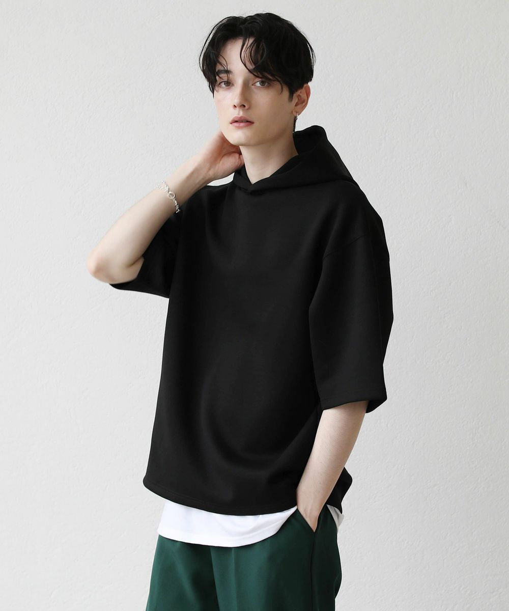 ■一枚で抜け感のあるスタイリングにまとまる半袖プルパーカー