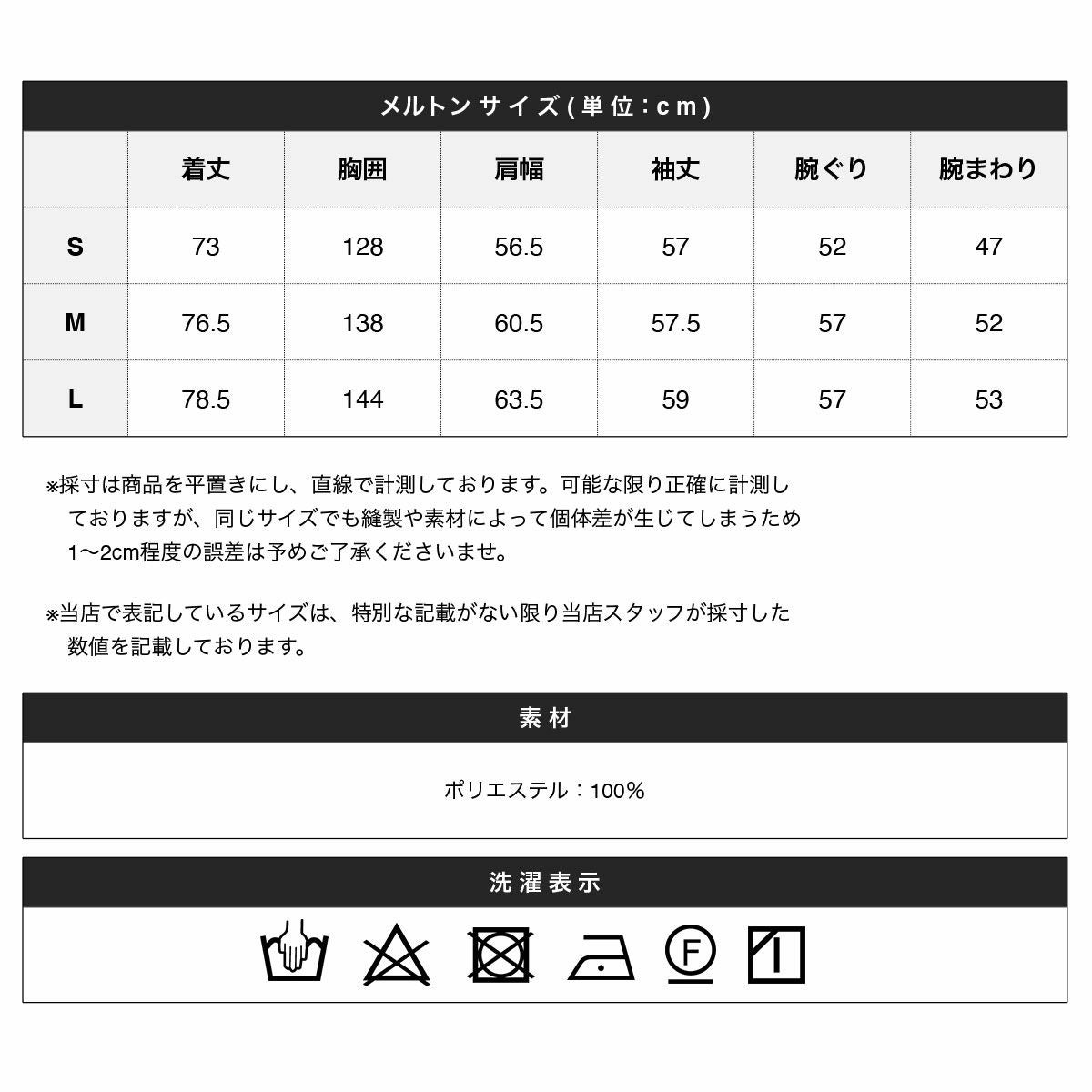 ※商品特性、縫製や素材により同サイズでも、若干の誤差が生じてしまうことを予めご了承ください。