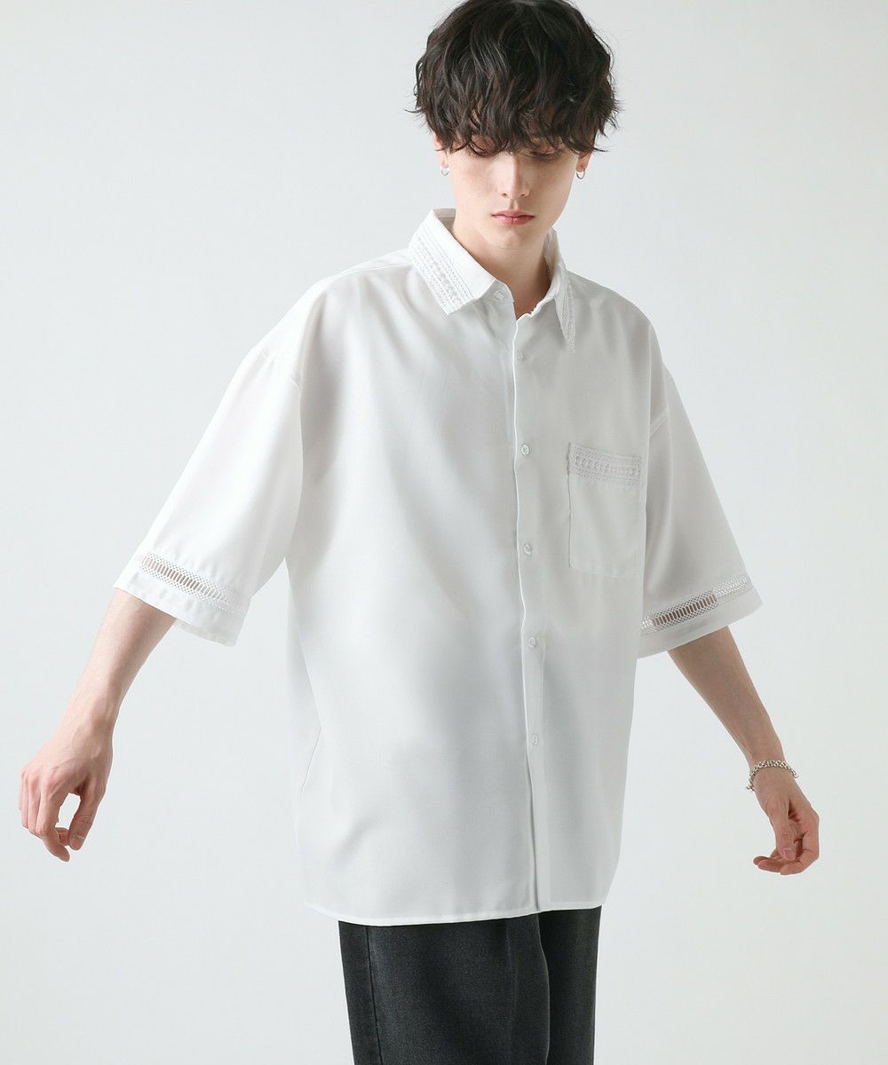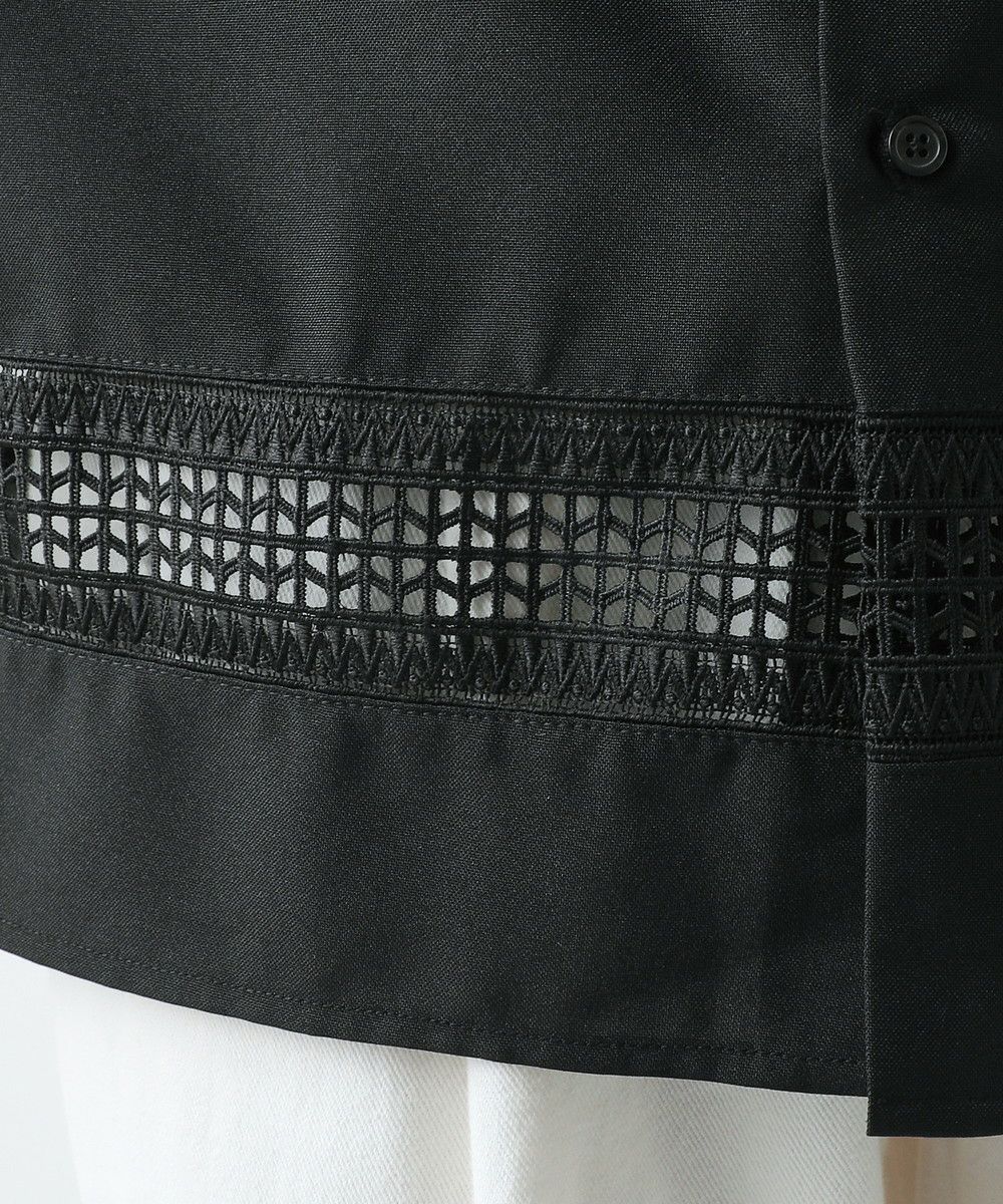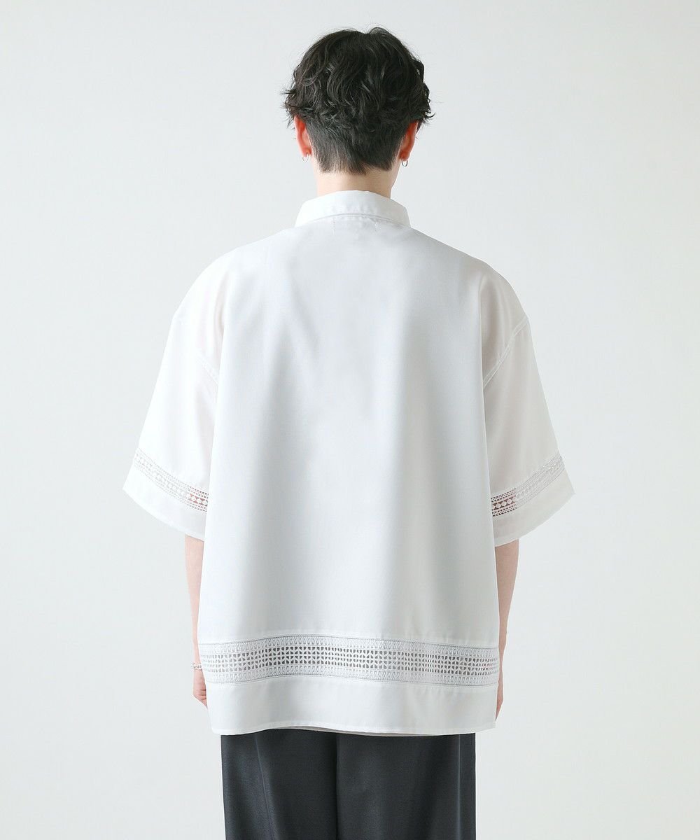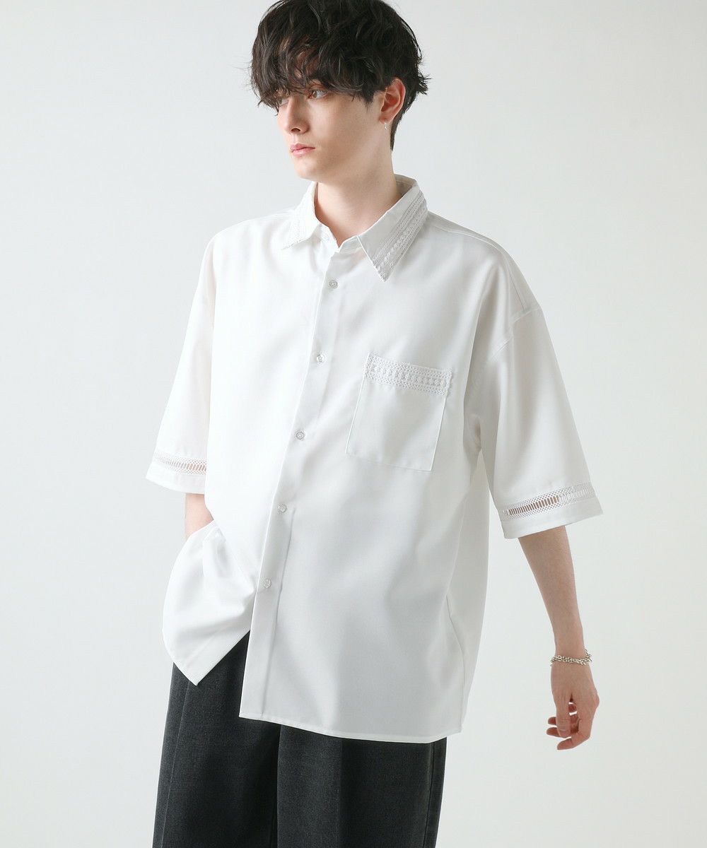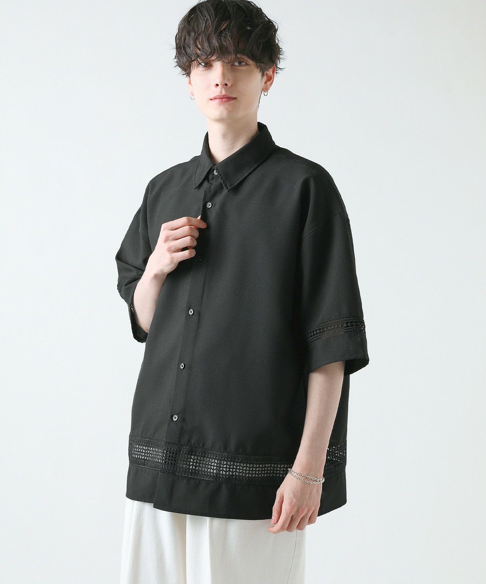 襟や裾、袖の切り替え部分にレースを施した華やかなシャツ。ワントーンに馴染みながらも、異素材のコントラストがメリハリと上品さをプラスします。袖や身幅をワイドに設定し、抜け感のある印象に仕上げました。レースのデザインと切り替え部分が異なるタイプA、Bの2種類展開。Aは襟、胸ポケット、袖口部分。Bは袖口、裾部分にレース切り替えが入っています。ホワイト、ブラックの2色展開で、お持ちのアイテムに取り入れやすくコーデを上品にまとめられます。