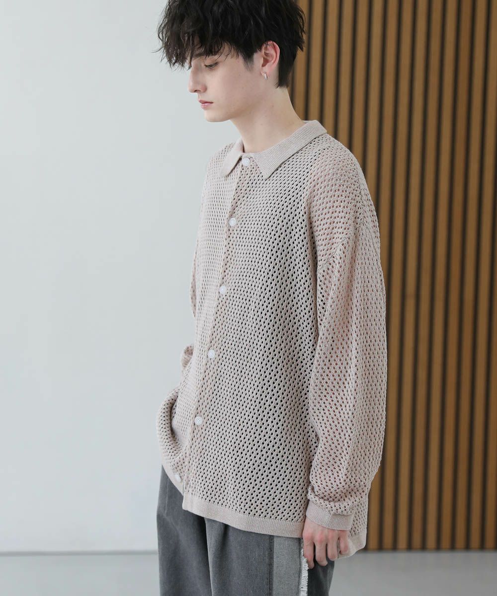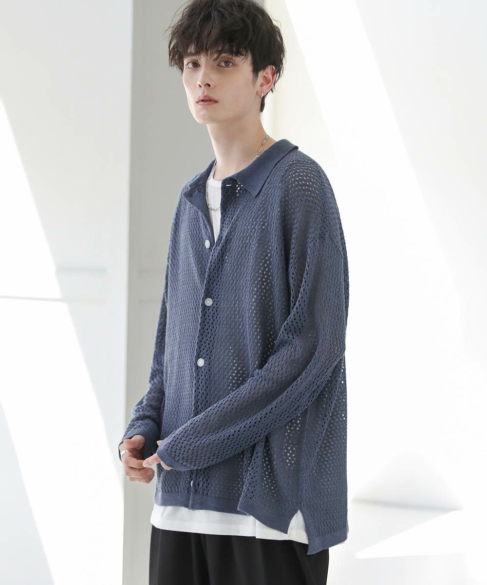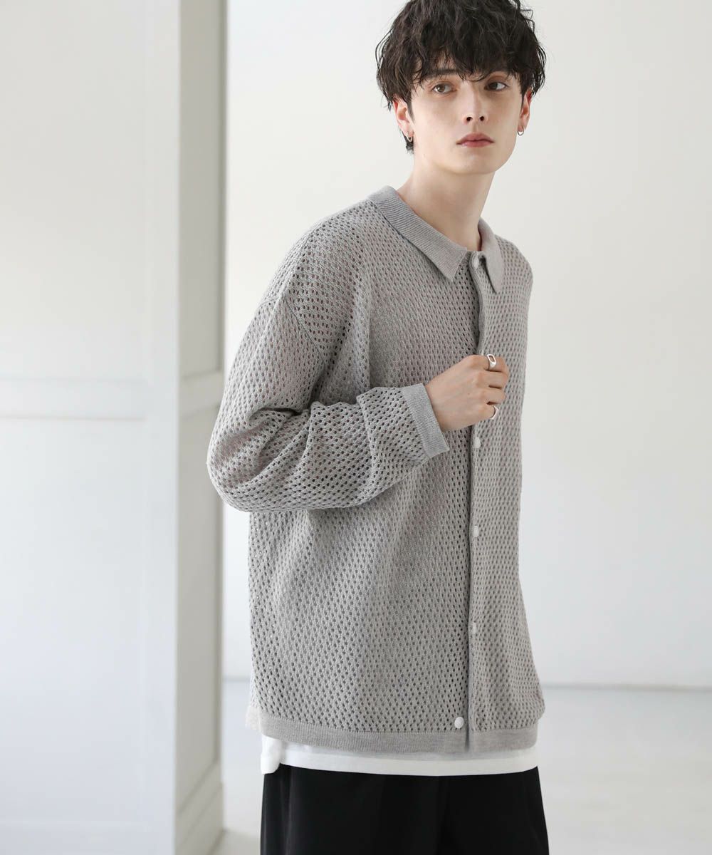 軽い着心地と透け感が魅力のメッシュ編みニットシャツ。透け感のあるメッシュ編みでタンクトップやカットソーなどインナーとのレイヤードを楽しめる1着。フロントを閉めてプルオーバー風に、前開けで羽織として、様々な着こなしを楽しめます。ざっくりとしたルーズシルエットとドロップショルダー、サイドスリットが今っぽい抜け感を演出。カーディガン感覚で取り入れるだけで旬の着こなしが作れるおすすめのアイテムです。