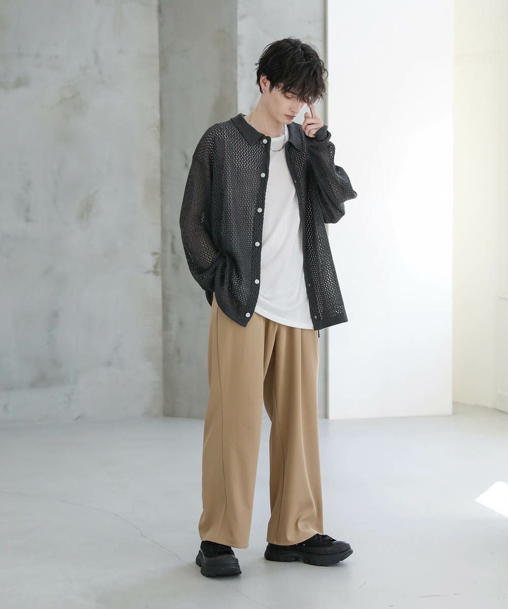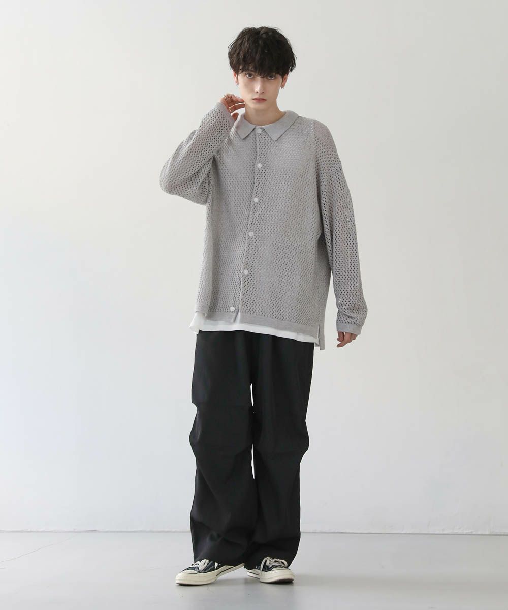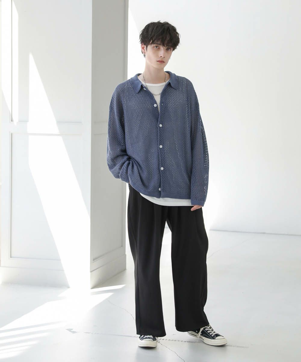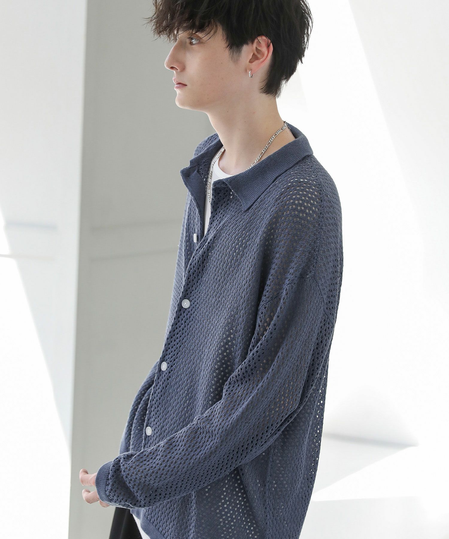 軽い着心地と透け感が魅力のメッシュ編みニットシャツ。透け感のあるメッシュ編みでタンクトップやカットソーなどインナーとのレイヤードを楽しめる1着。フロントを閉めてプルオーバー風に、前開けで羽織として、様々な着こなしを楽しめます。ざっくりとしたルーズシルエットとドロップショルダー、サイドスリットが今っぽい抜け感を演出。カーディガン感覚で取り入れるだけで旬の着こなしが作れるおすすめのアイテムです。