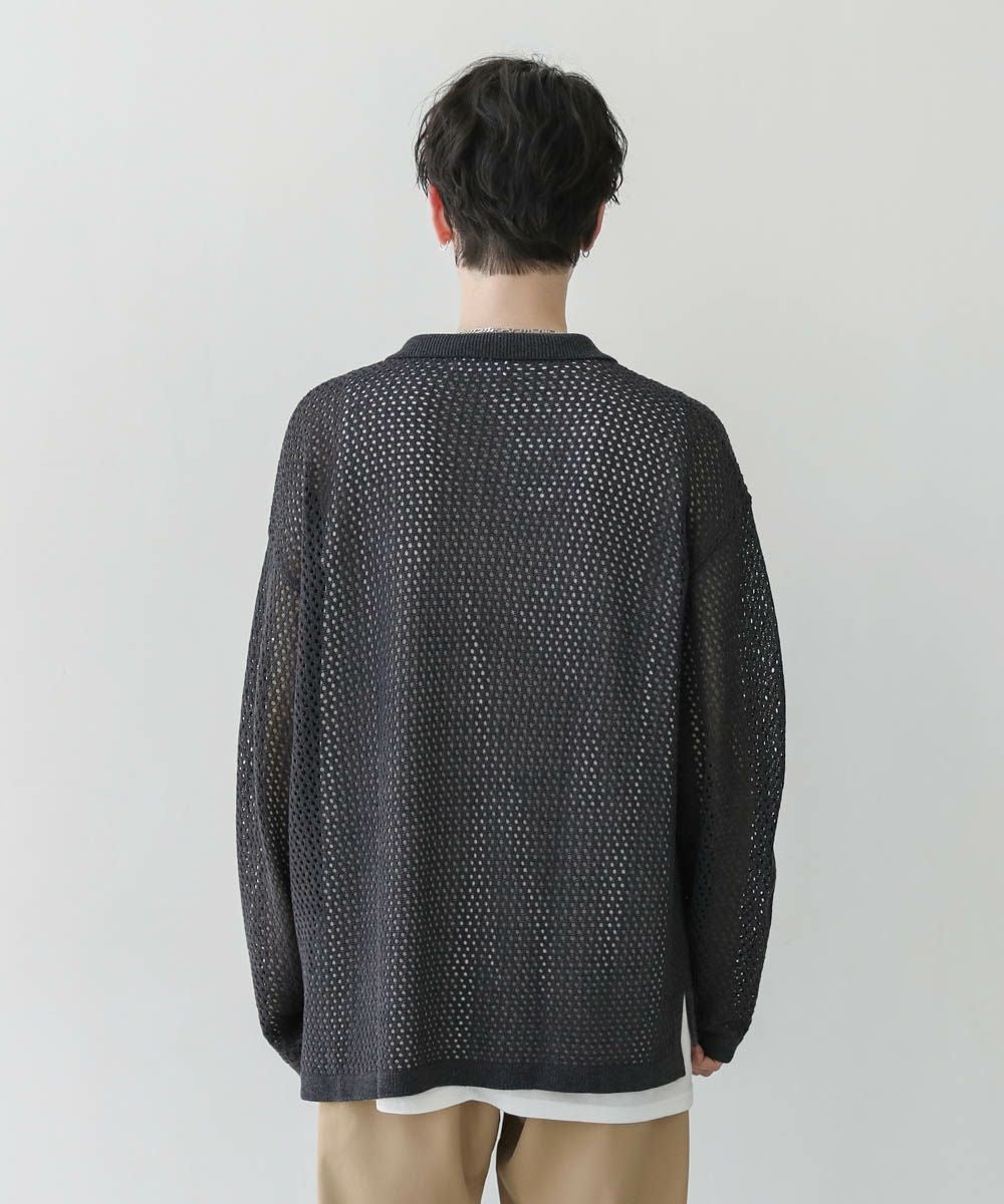 クロシェメッシュ編みシアー長袖ニットシャツ