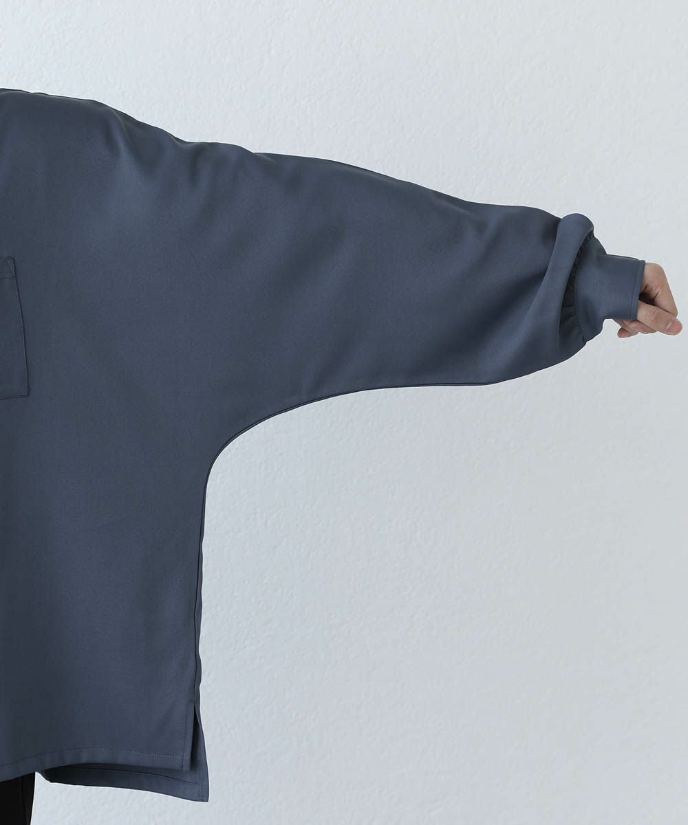 リラックス感のあるドルマンスリーブシャツ。ビッグシルエットでゆったりと着こなせ、1枚で抜け感のある着こなしに見せてくれるアイテム。ゆとりのあるバルーン袖とサイドスリット、大きめの胸ポケットがアクセントになり、シンプルながらデザイン性のある1枚です。程よく厚みのある生地感で綺麗なドレープがあり、上品な印象で着こなせます。定番のホワイト、ブラックを始め、ニュアンスのあるライトグレー、季節感のある落ち着いた色味のブラウン、ブルーの5色展開。